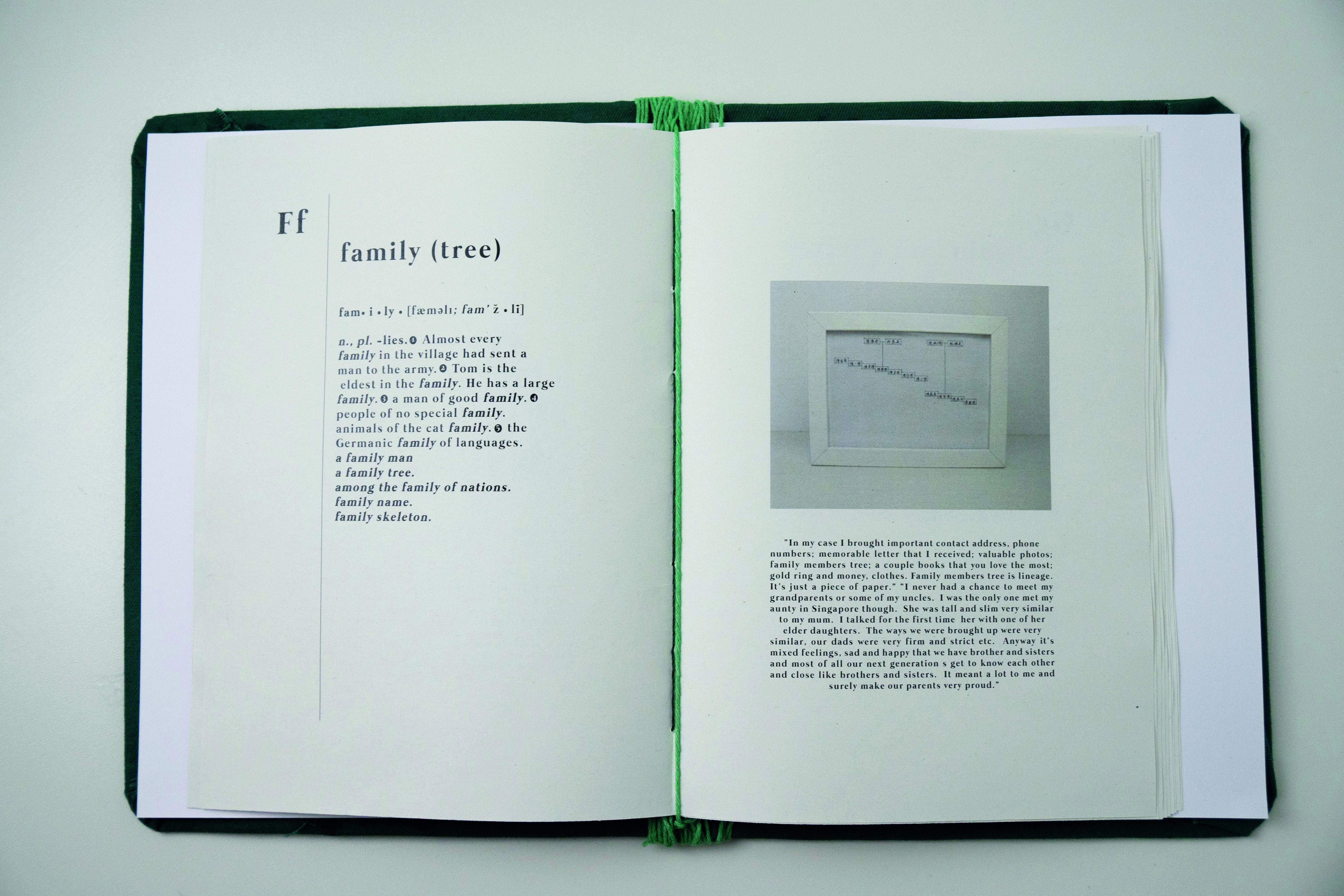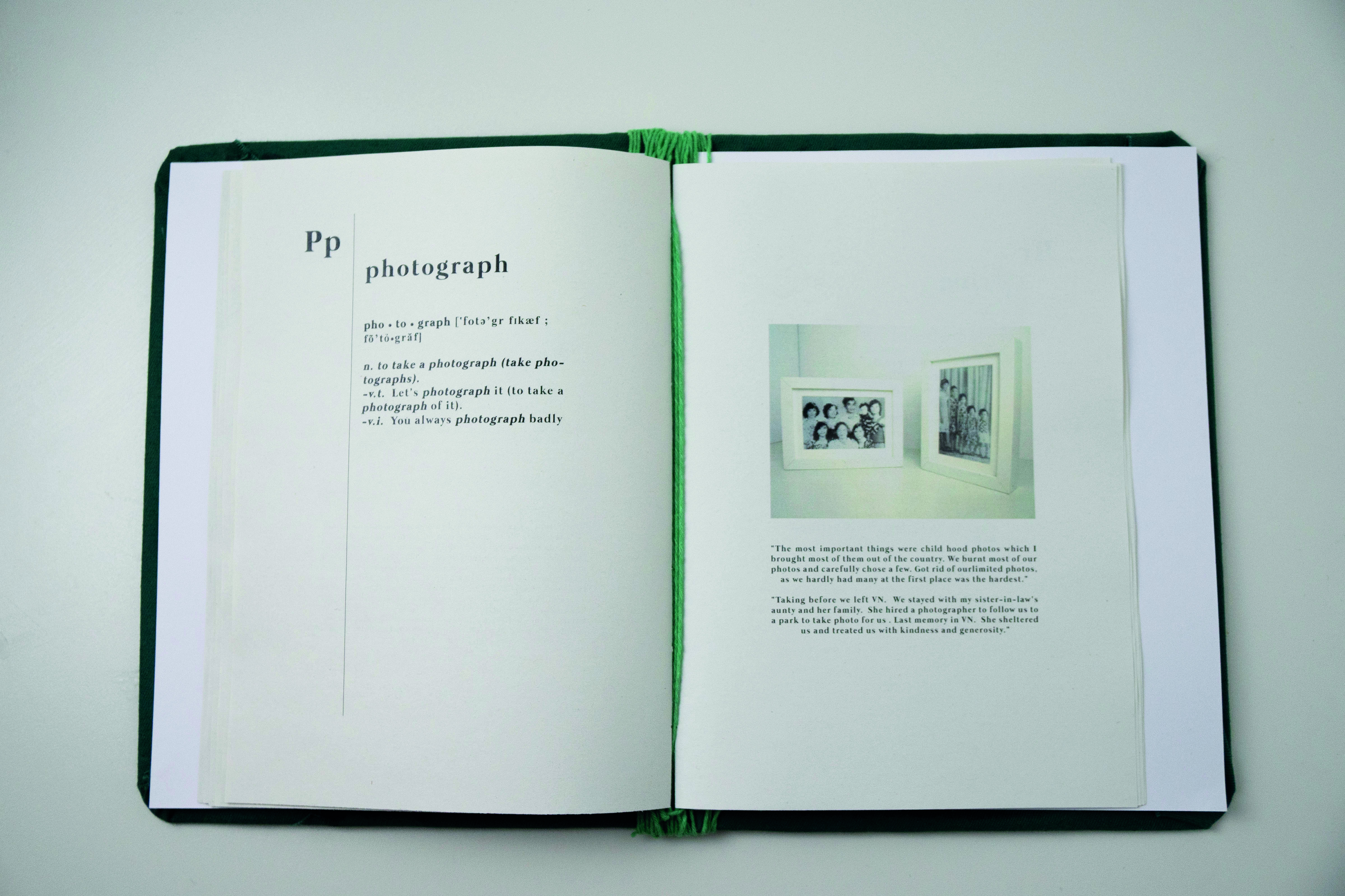 On the left hand side of each page I display the definitions taken directly from the Saigon dictionary. On the right is my fabricated version of the object based on details I have gathered from conversations with my family. Underneath each photo are transcripts of what they said. The testimonies contain their sentiment and memories, giving a narrative to every artefact. The comparison between the two pages juxtaposes the way the migrants talk about their objects to how they are interpreted in the dictionary. Without their descriptions the objects would not evoke the same emotion.