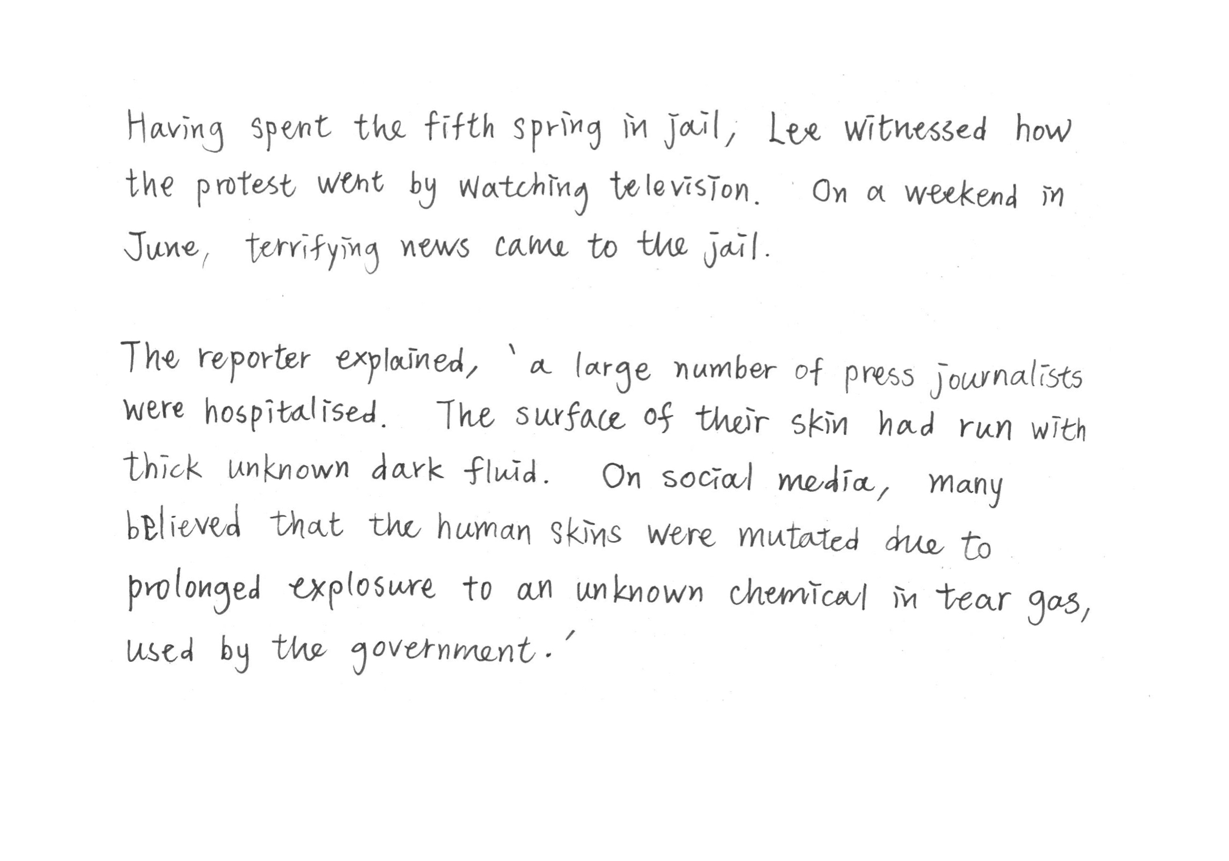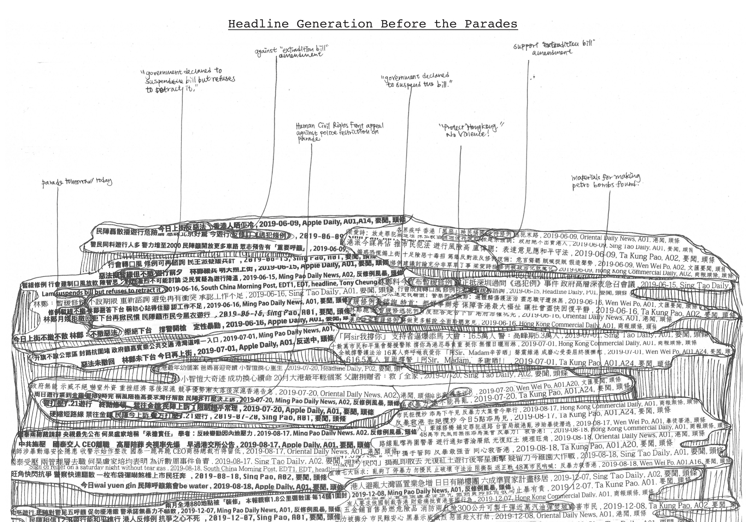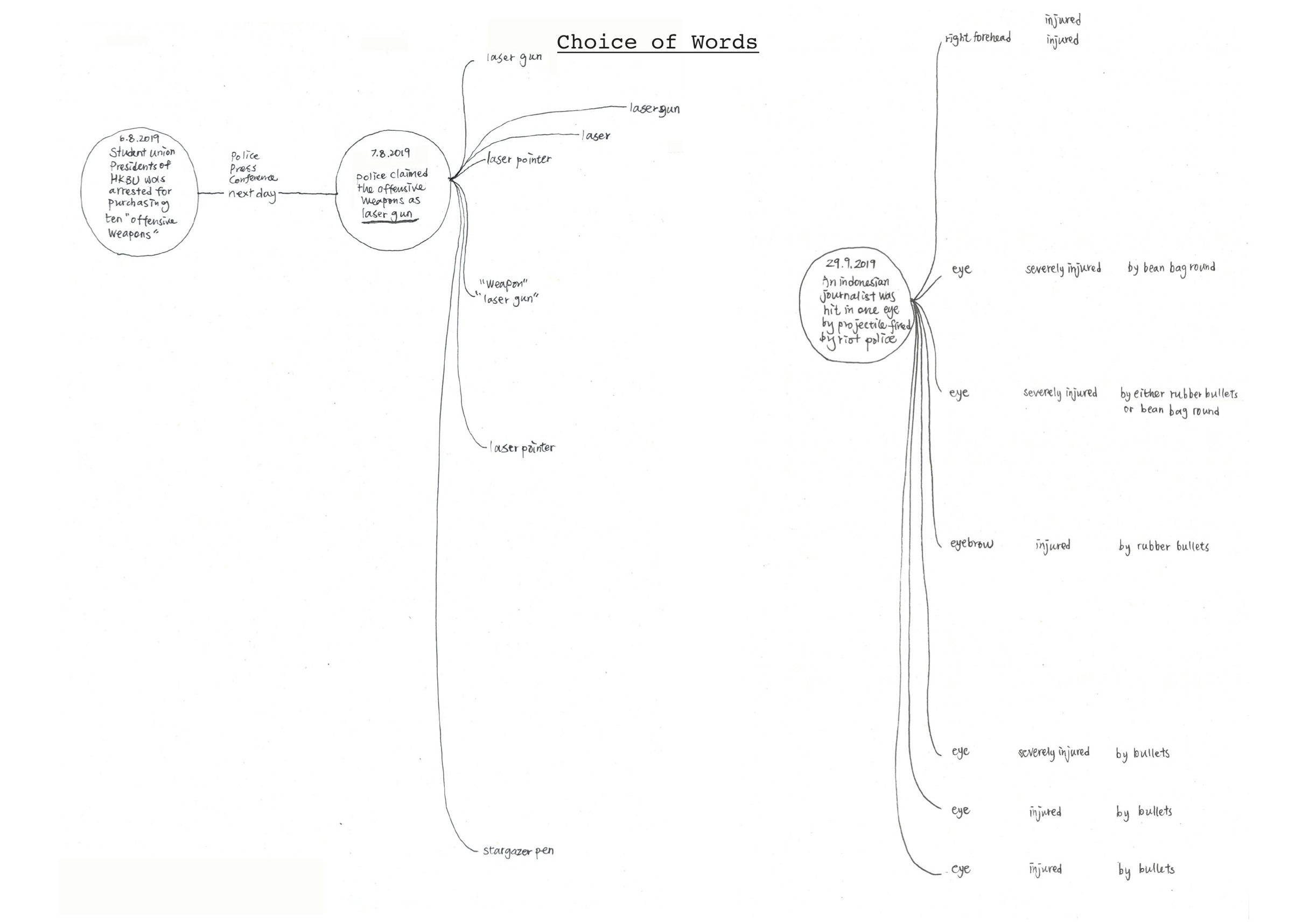 I would use the background of Hong Kong protests in 2019 as a starting point, to question and imagine what would have changed or happened if the journalists are replaced by A.I. The speculative scenario in my work would be about a protest in 2029. The ideas would be expressed in short fiction, together with a series of analytical drawings. The final product would be an illustrated book.