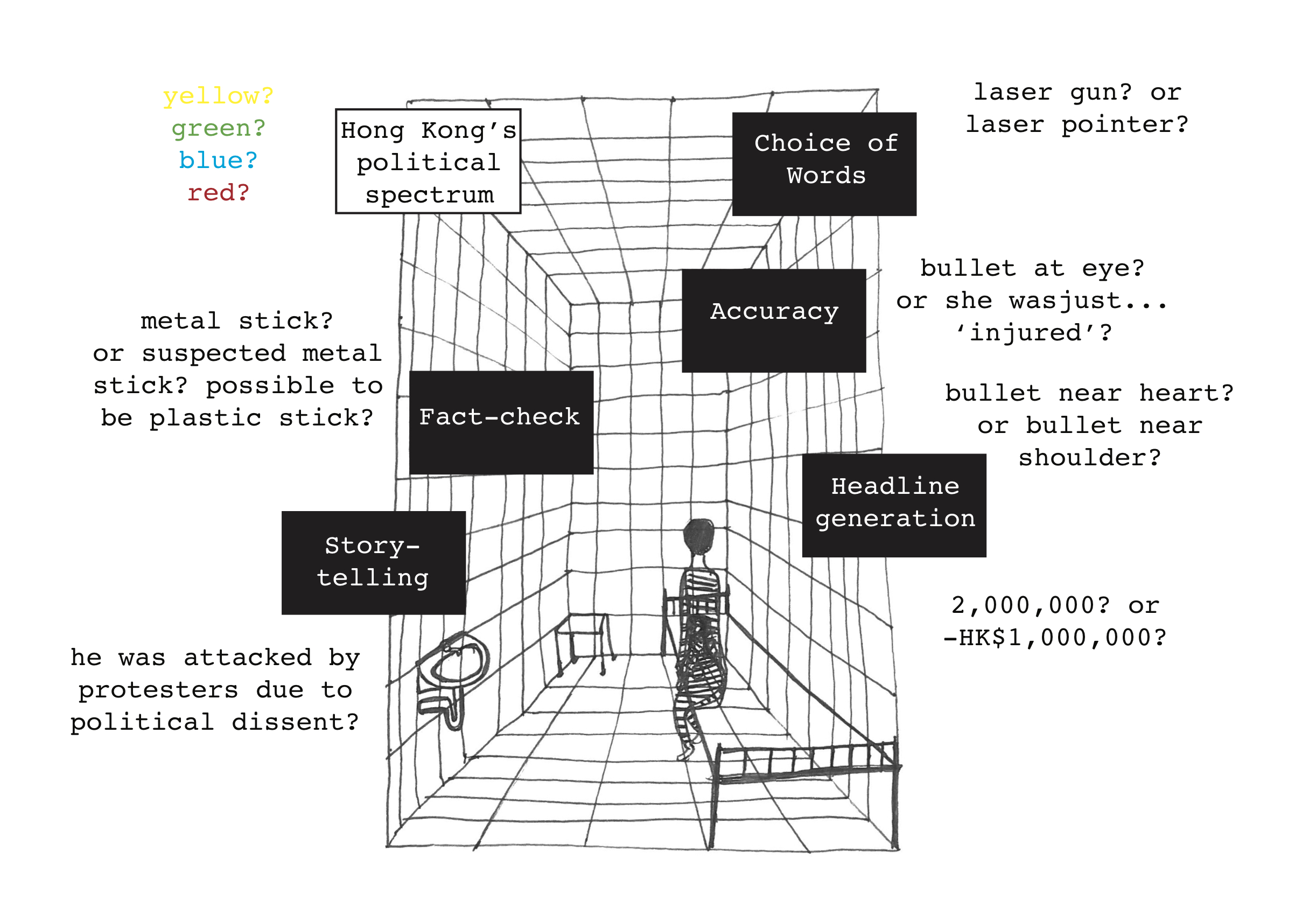 Throughout the protests against the amendment of the extradition bill and subsequent police brutality in Hong Kong from June to Dec 2019, I started to feel great respect for the journalists who have to encounter police brutality, risk their lives on the âbattlefieldâ, and raise sharp questions at chief executive/ police press conference. Journalists are crucial to direct-action protest movements, as they offer updates on demonstrations via television, internet or newspaper. On the other hand, many Hong Kong people tend to read media which they believe shares their political stand â whether they are pro-democracy, pro-government or pro-China. However, there are also a very few media with âin-betweenâ status in the political spectrum, with not so many people realising they are pro-government media because they are smart enough to avoid sensitive and controversial language. Last November, China introduced the worldâs first ever A.I. news anchor to its national TV. They claimed that the A.I. anchor could learn news broadcasting by âhimselfâ, work 24hr tirelessly and without emotional turbulence. This poses the threat of even more systematized censorship in the future.