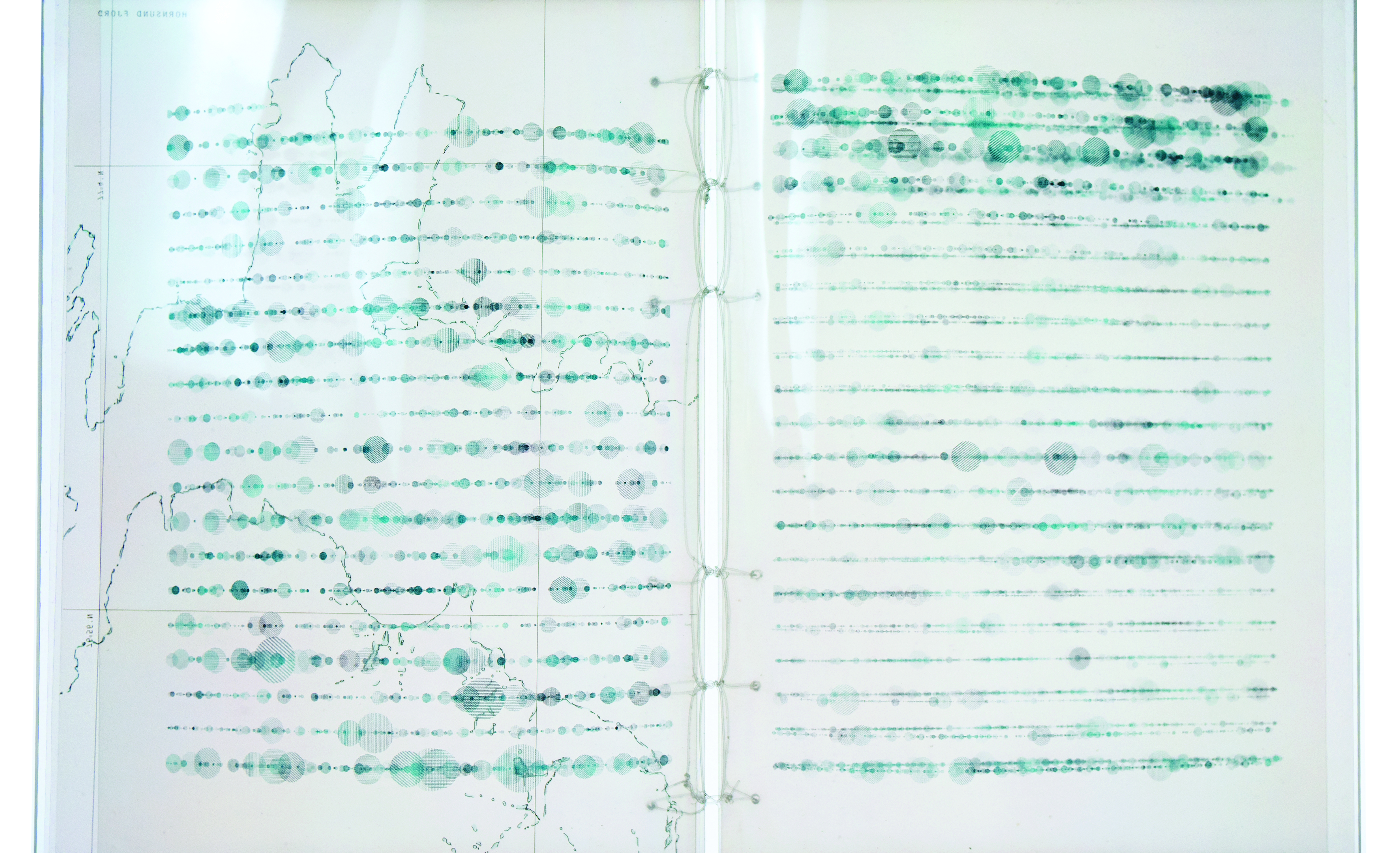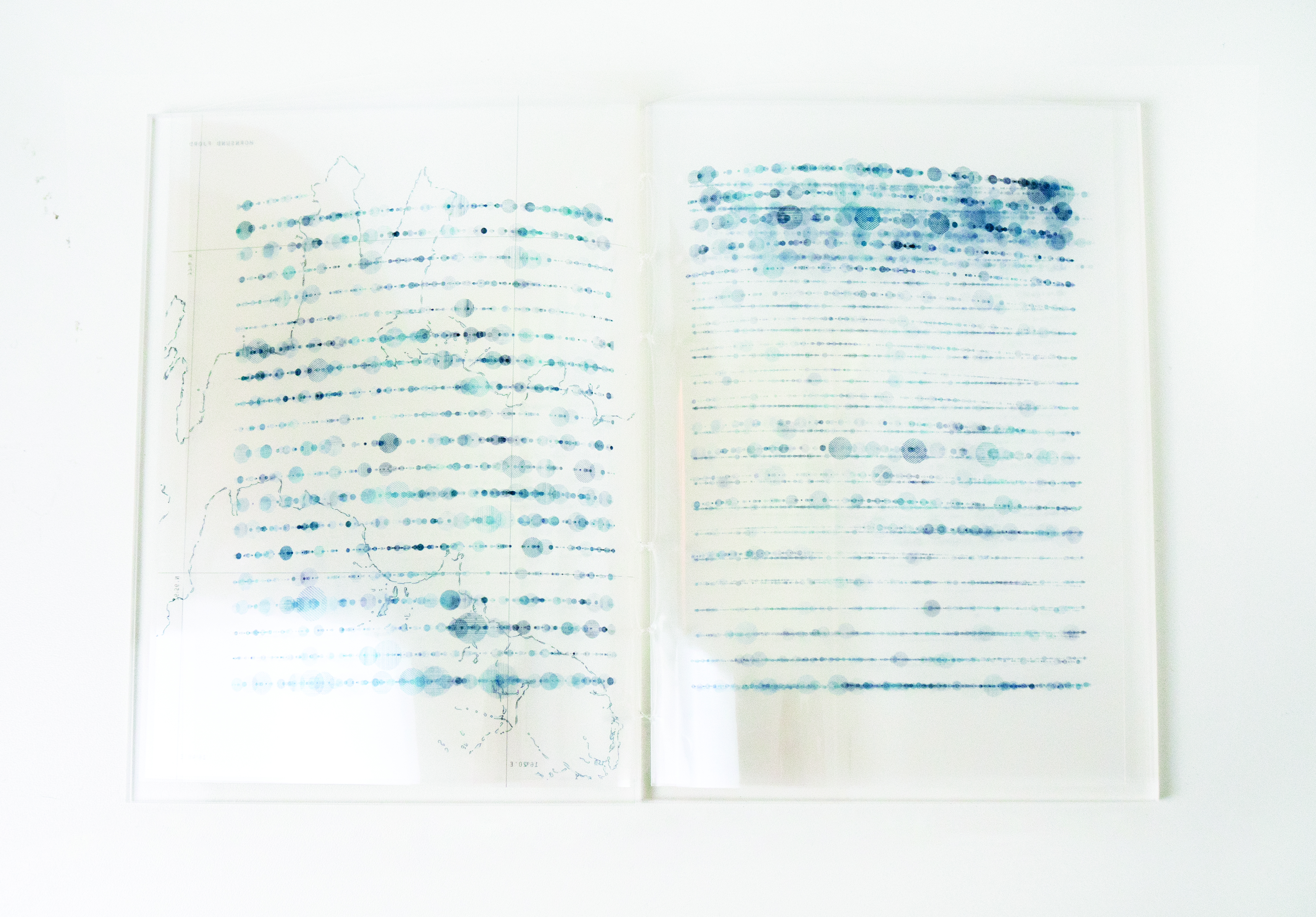 The concept is that it can be added to over Tim as more recordings are taken. As the book is read, the receding level of transparency and interplay of light characterises the thinning ice. Conversely, as sheets of ice disappear, the archive is amassed.