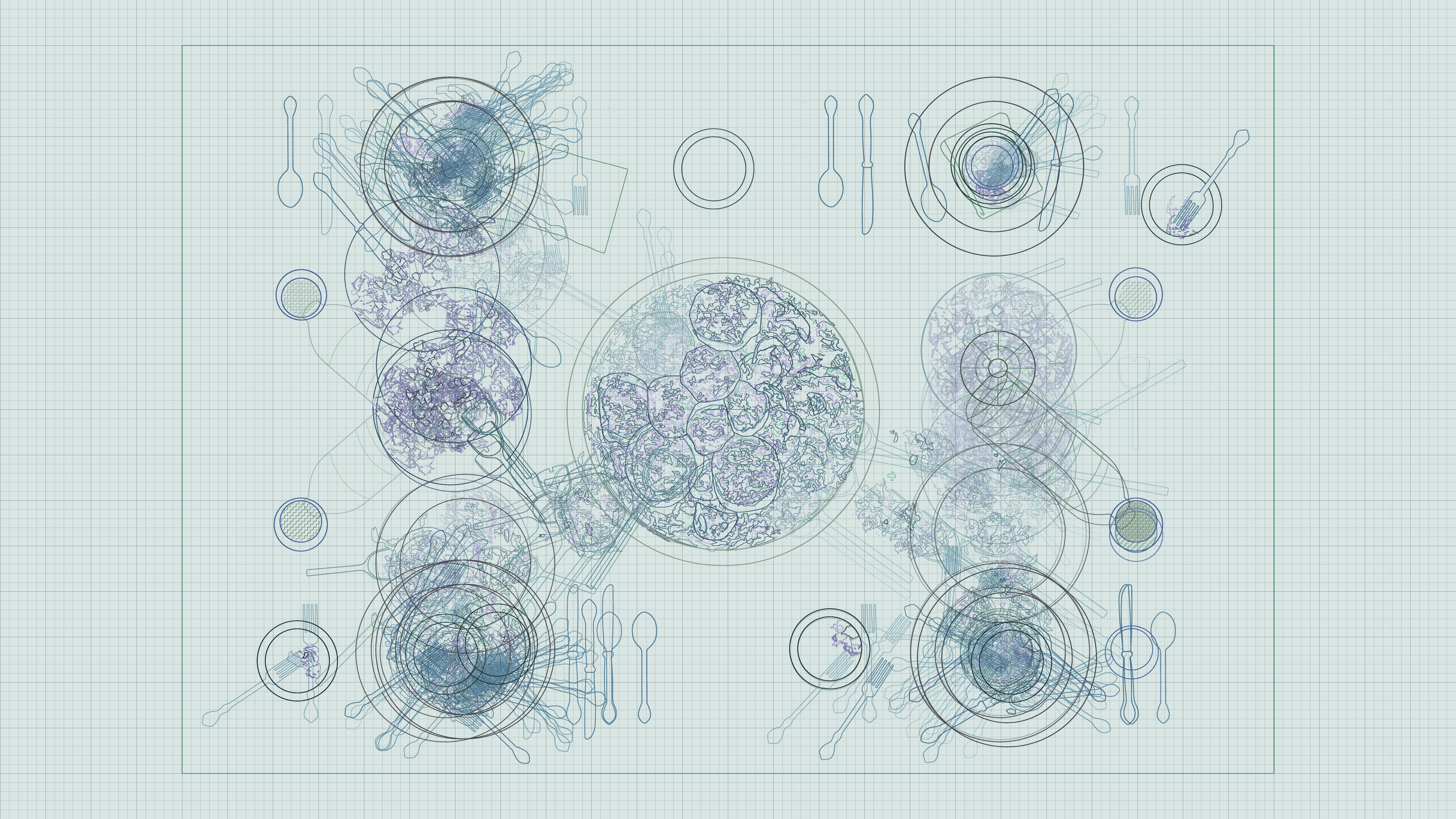 This project expresses the transformative potentialities of mediation by consolidating an extensive range of dissimilar choreographies: i.e. mechanical transitions, eating habits and speeds, food portions, personal tastes and preferences. Furthermore, an individuality in personal dining etiquette is represented in each of the four participants at the table, which yields an unforeseen asymmetry throughout the layered frames of the animation. This intervention was carried out intentionally to dispute the ‘human errors’ that are unaccounted for when assigning a dinner’s table dimensions. Instead, A Table [Mis]laid chooses to reintroduce the human dimension in a choreography that challenges the assumption that dining tables are static, uninhabited settings. The ordering principles of the AutoCAD software are then rendered obsolete in rectifying an otherwise chaotic situation.