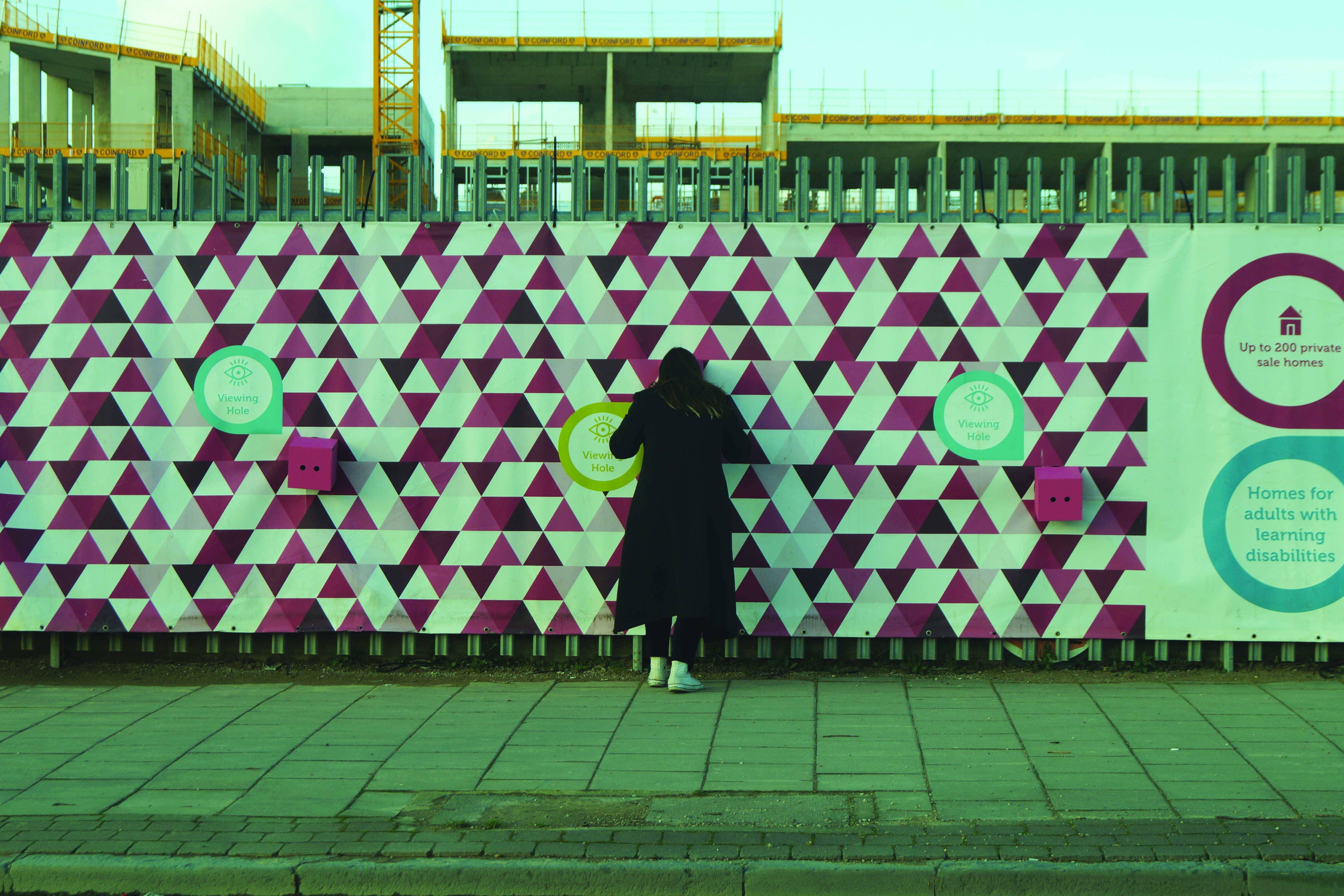 The subsequent project is an interactive installation in the form of peep show devices that are placed onto the hoarding wall within the housing estate. This therefore completes the triptych in the story of the mediation of Aylesbury Estate.Â