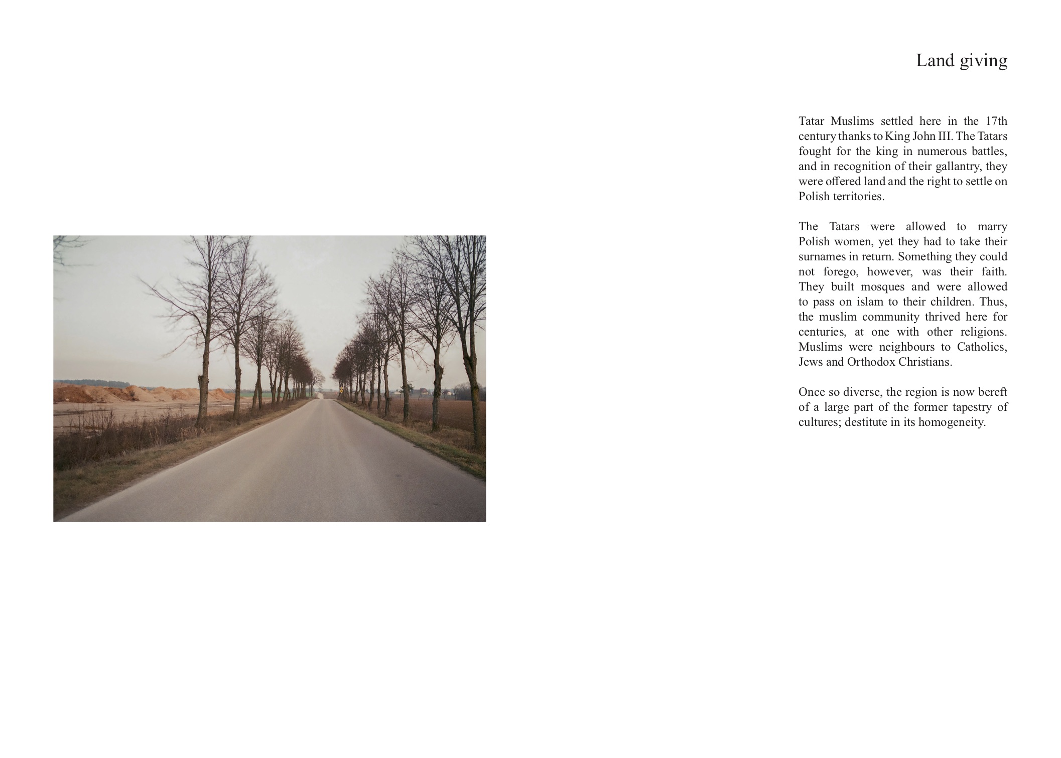 A gravel mine was opened in the vicinity of the village in 2008. The story is going to weave a narrative of a transformed landscape, a swathe of land becoming no more. The village is known to be one of just three remaining settlements of Tatar Muslims in Poland, who settled in the region in the 16th century and their communities thrived for several centuries. For a village as tiny as this one, it bears extraordinary significance, not just to the Tatar minority, but to the whole Polish nation; once so diverse, now so bereft of that tapestry of cultures, destitute in its homogeneity.