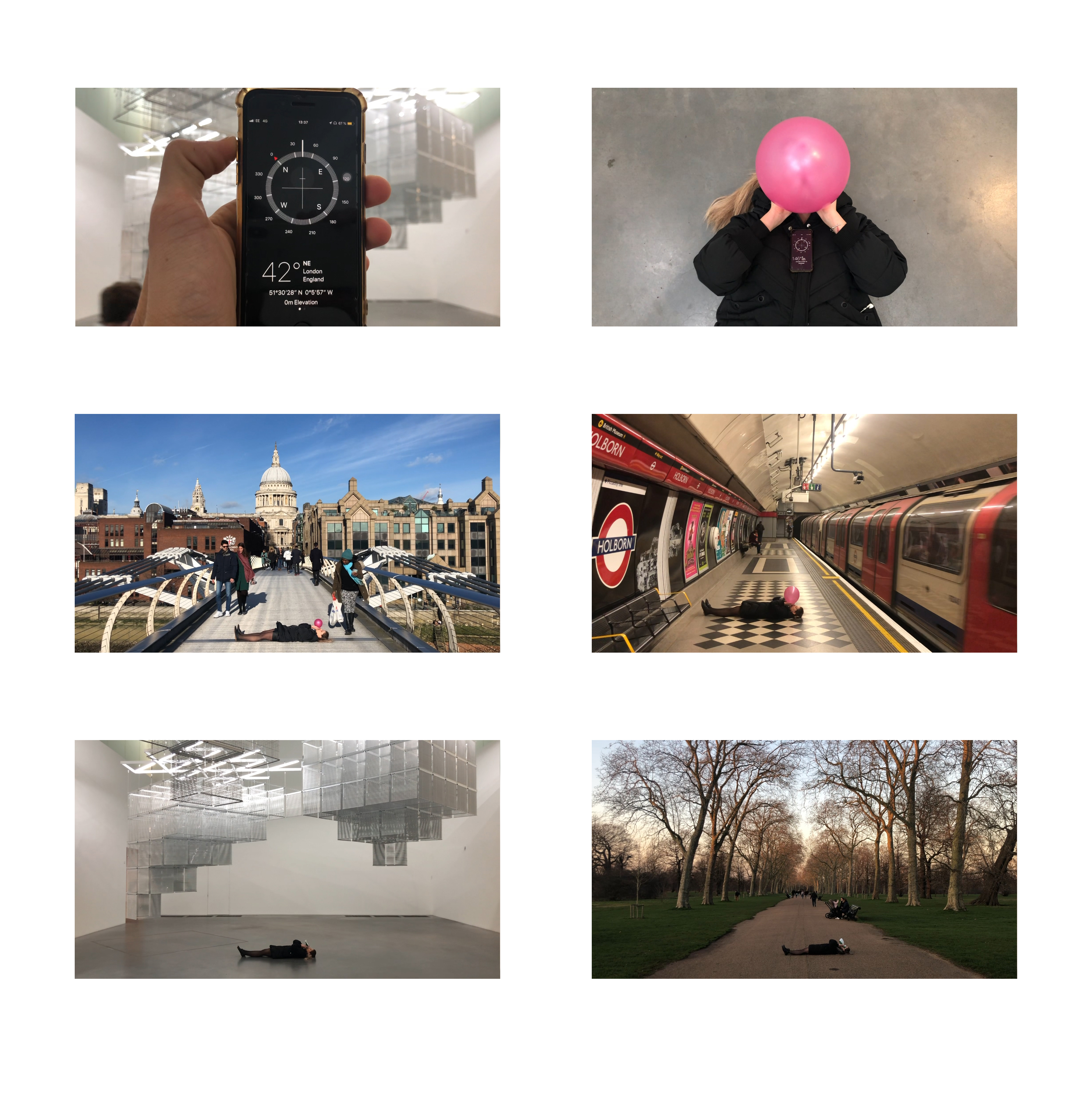 The process necessitates three main tools: balloon, paper bag and a mobile phone with the latitude app downloaded. The mobile phone, with the app open, is placed on the chest while lying on the floor. The app is used to show the chest movement as it goes up and down. With this set-up, the paper bags and air balloons are used to physically mediate the breathing, as the exhaled CO₂ shapes both the balloon and the paper bag.