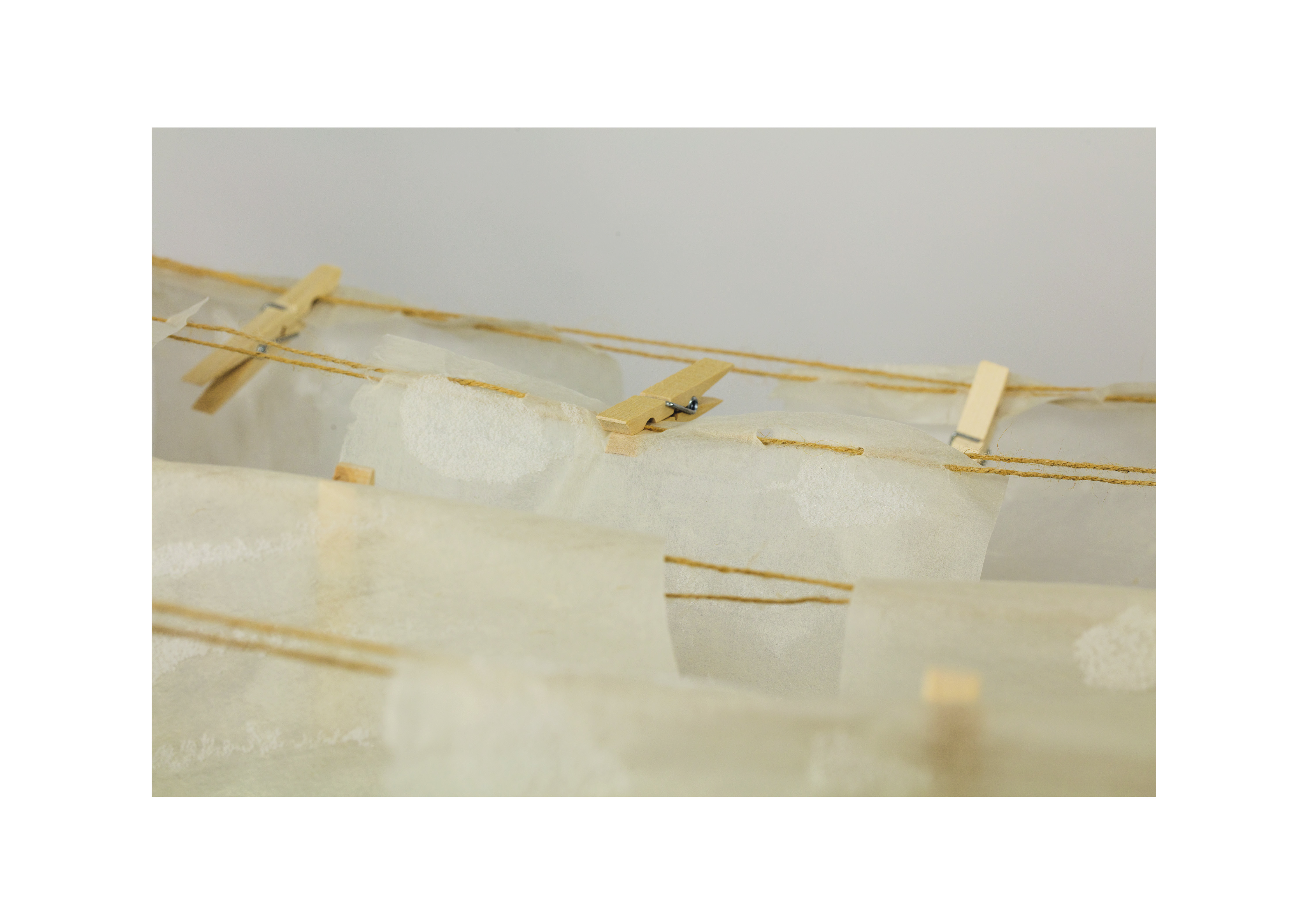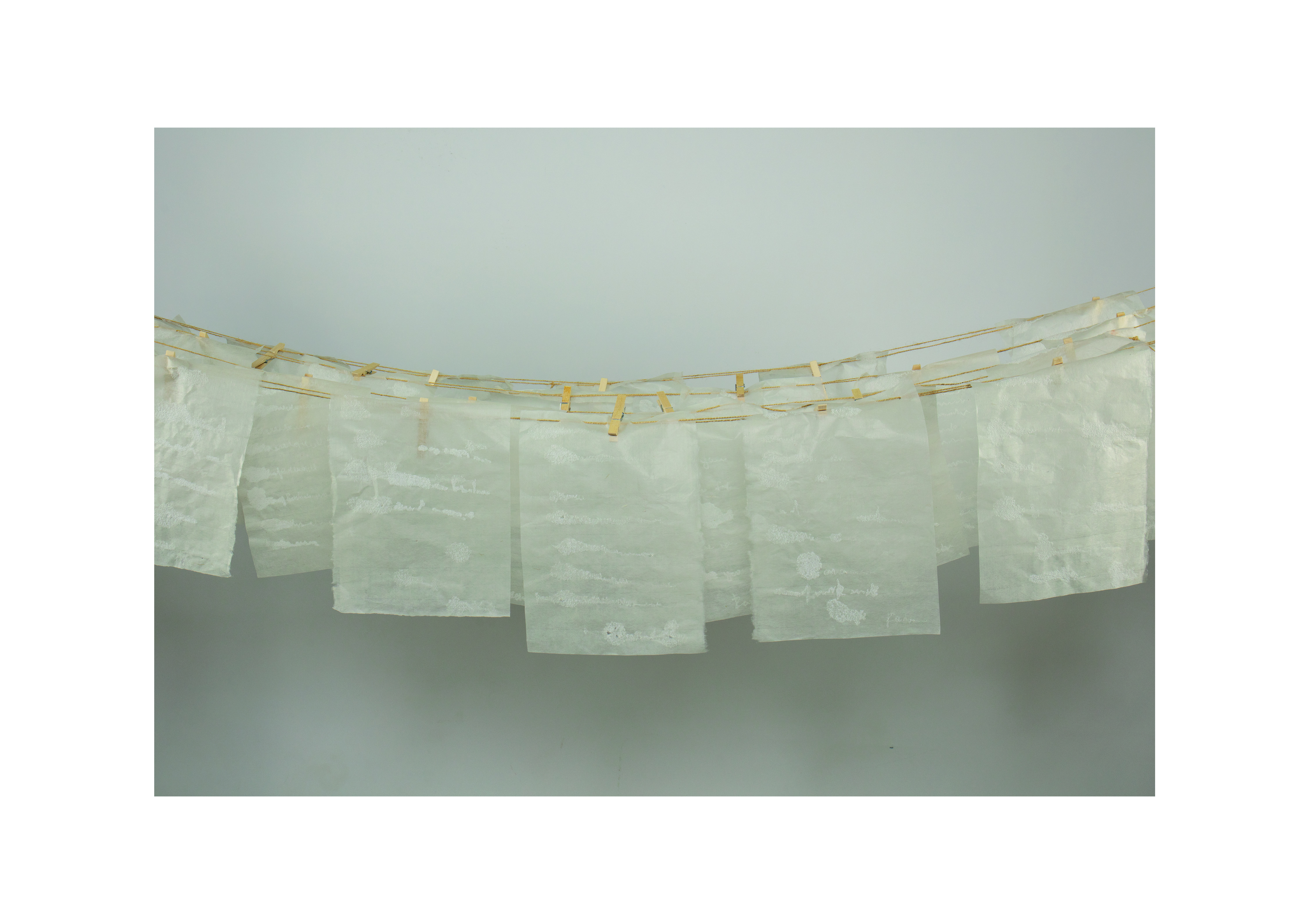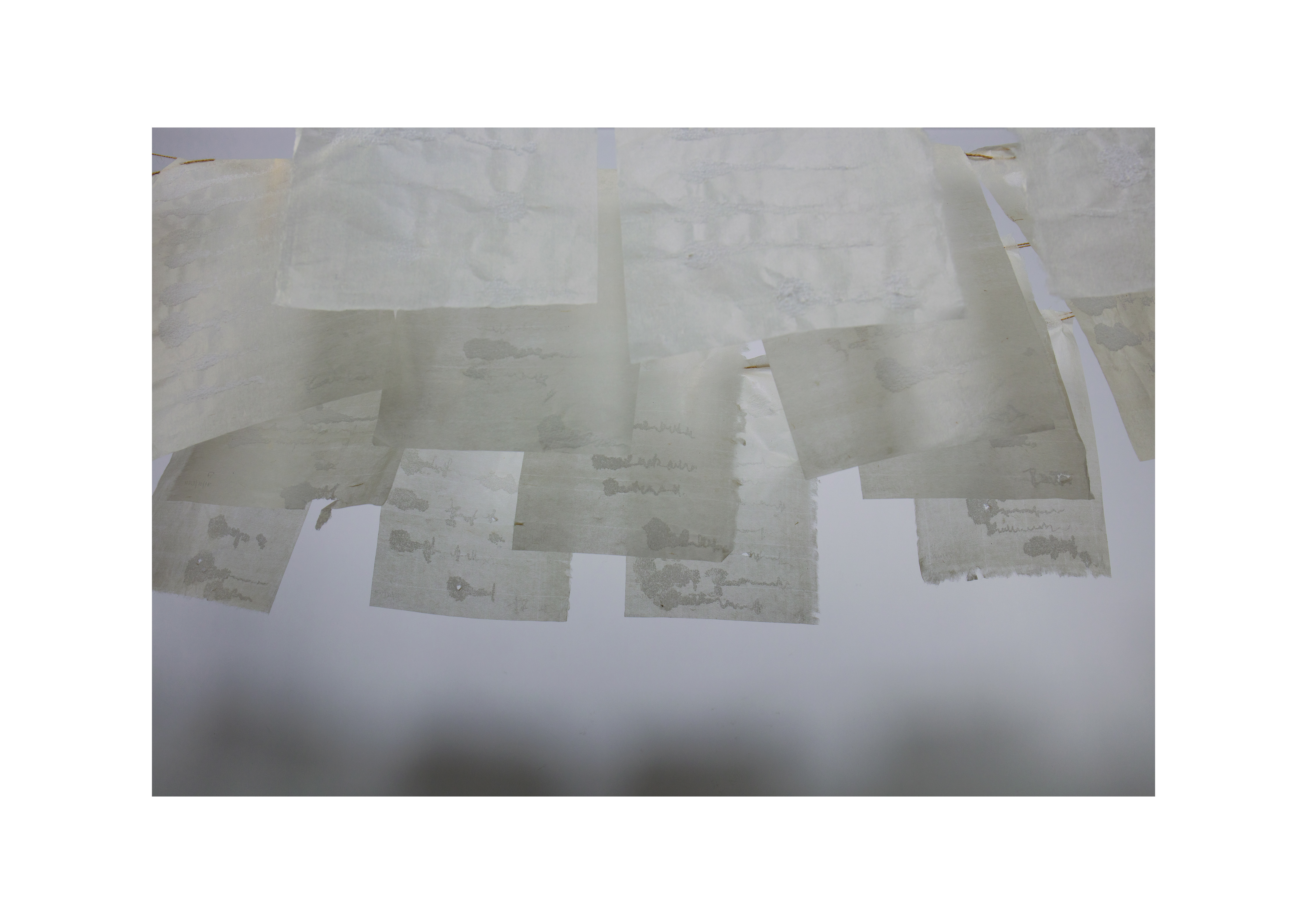 The object itself is the result of papers threaded together with Cabuya (Ecuadorian organic fiber) and displayed as a hanging clothesline. In this way, my project revisits memory transforming it into a tangible, yet abstract object.