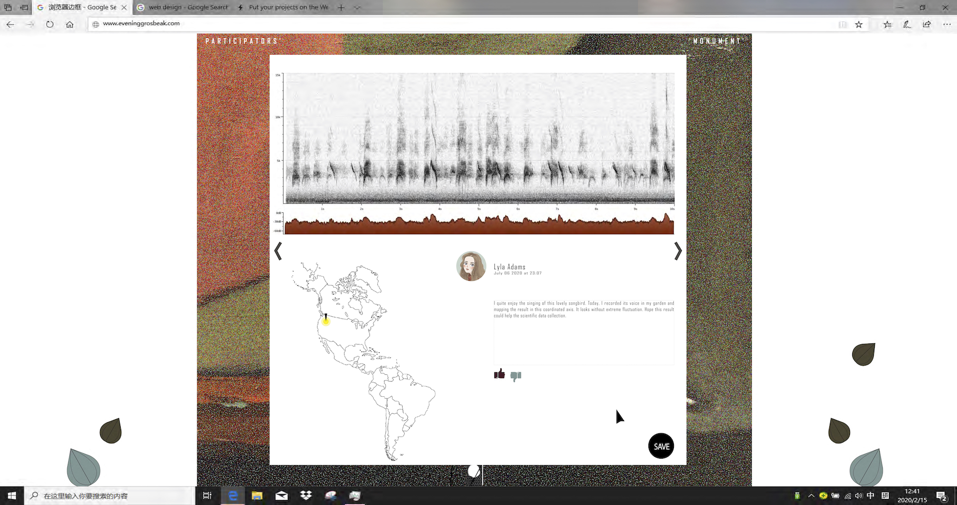 To respond to the current problem of the lack of visually appealing platforms that attract the public to learn more and participate more about species conservation, my project would design an interactive and collective website, to hand in knowledge as well as to promote participation. Correspondingly, the website's main body consists of two segments: knowledge and participation. Several ideas are used to achieve these two purposes:
