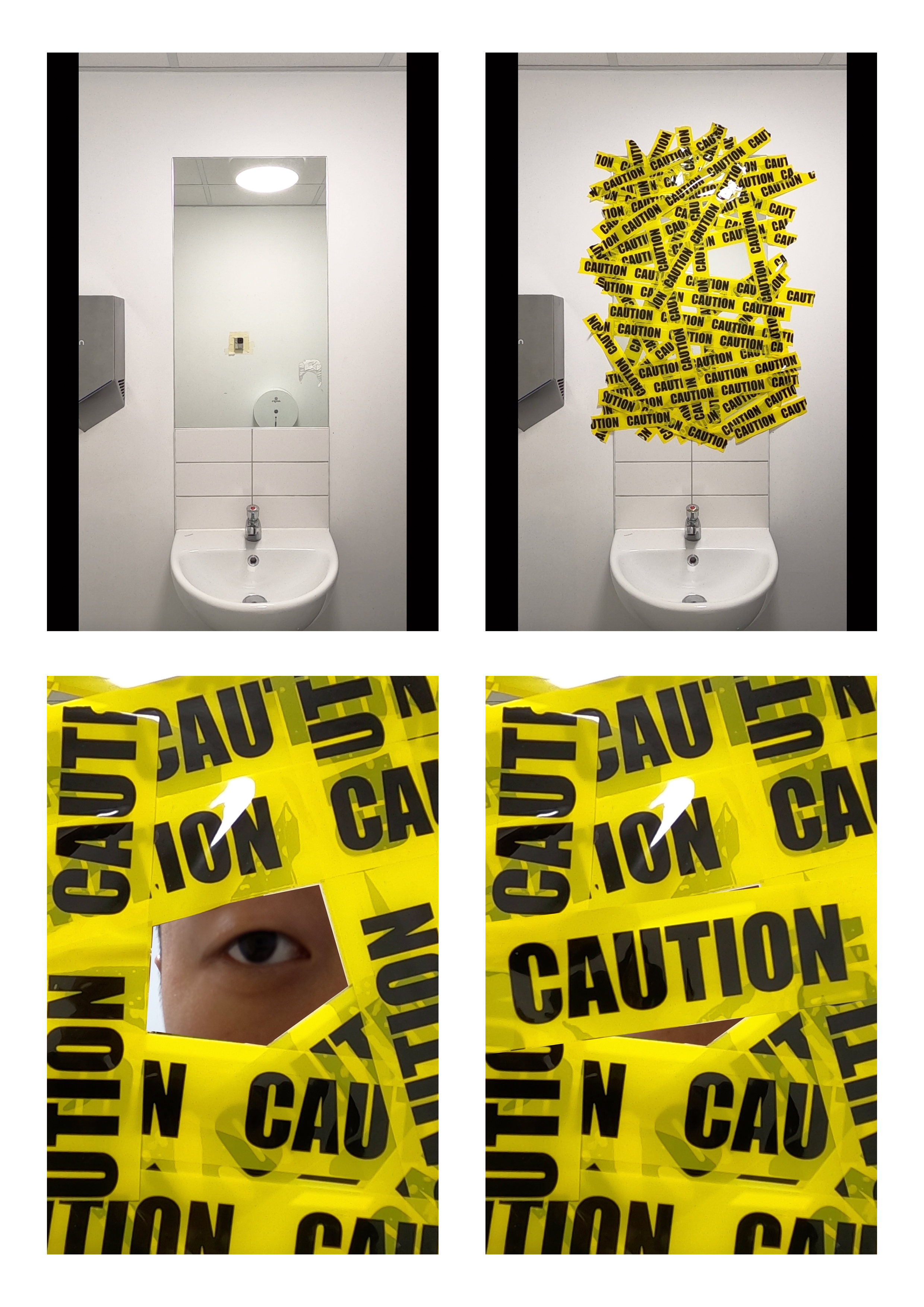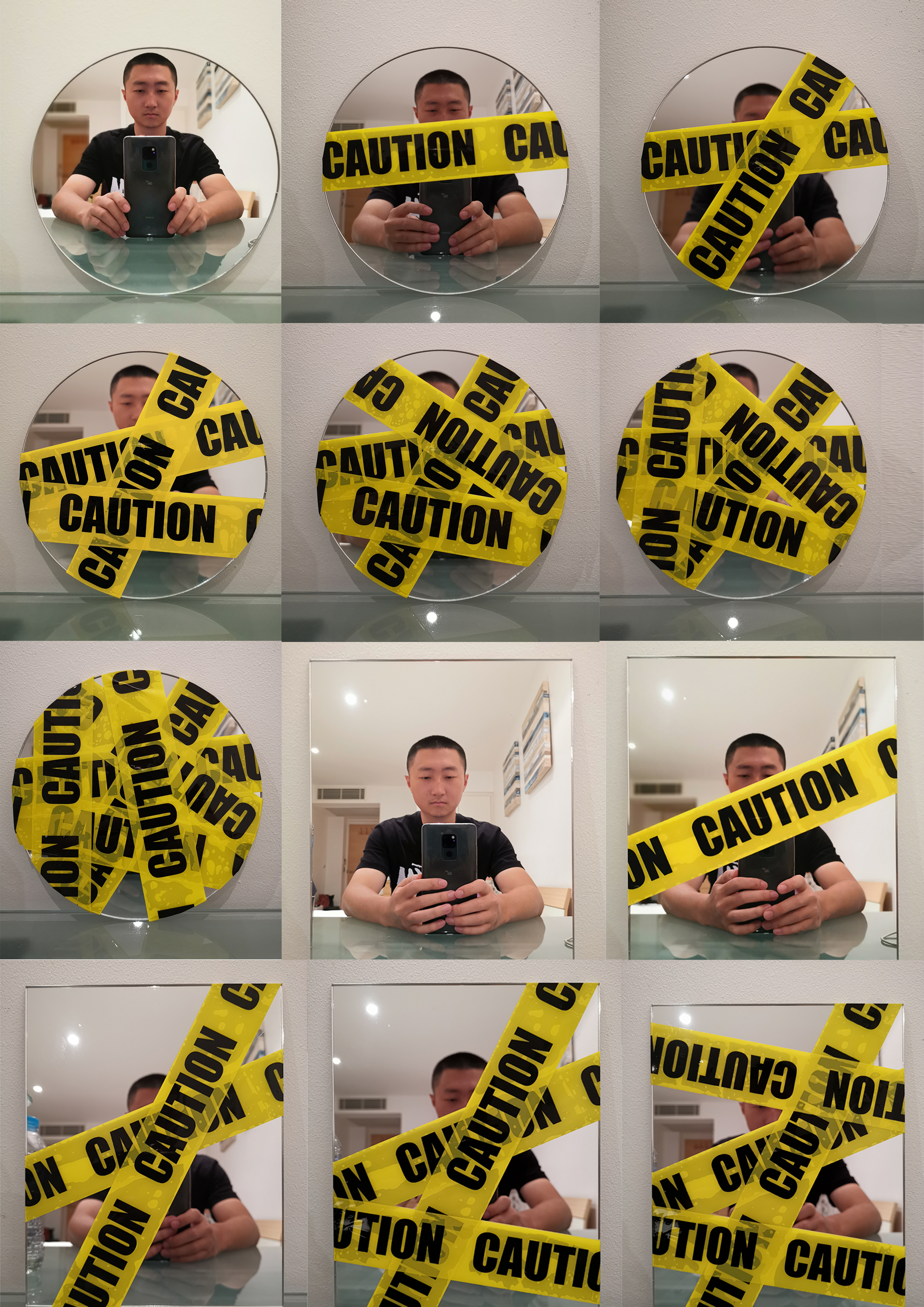 The mirror is an important medium to observe and know ourselves through someone else’s gaze. The process of taping the mirror is similar to an act of self-isolation and eventually it turns the mirror into a caution area which we fear to touch.