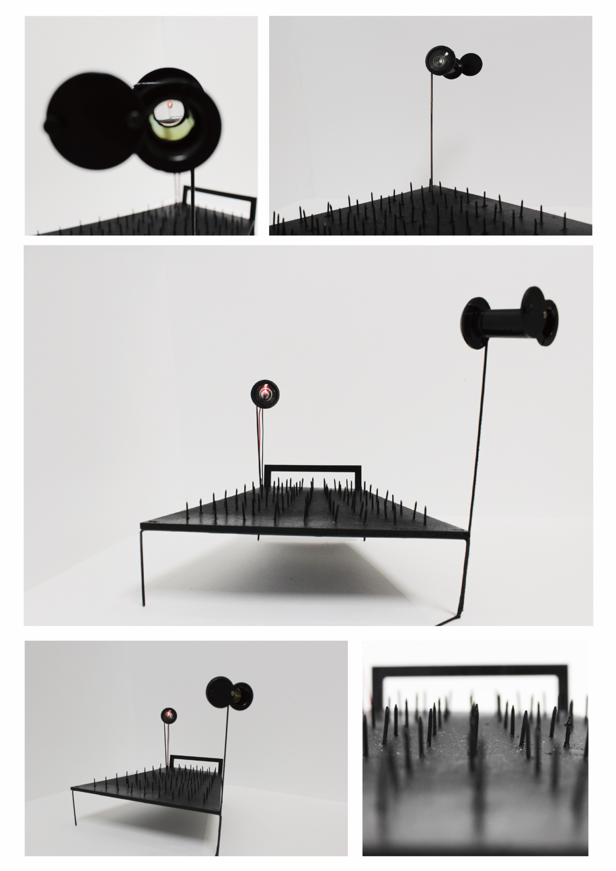 2.Observed nightmare: the sensation of fear highlighted by the sharp nails installed, the idea of being observed and watched is emphasised by installing the peepholes on the sides of the bed.