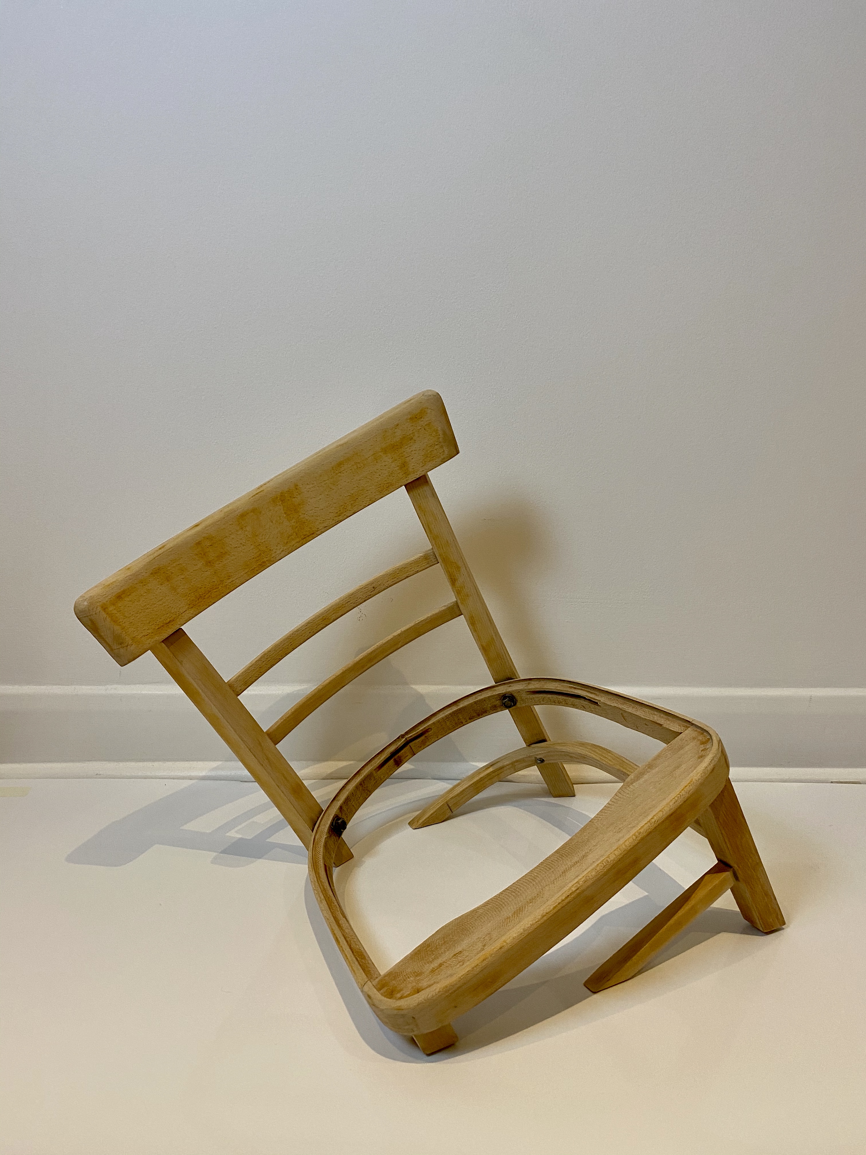 In such a scene, scattered and broken furniture and its impact on interior space caught my attention. Therefore, I have chosen to abstract use a home device to show the scene of the flood, to remind people of the harm of sea level rise on their lived experience. I chose a child's chair as the main body of the installation, which means that this chair represents our future, our next generation.