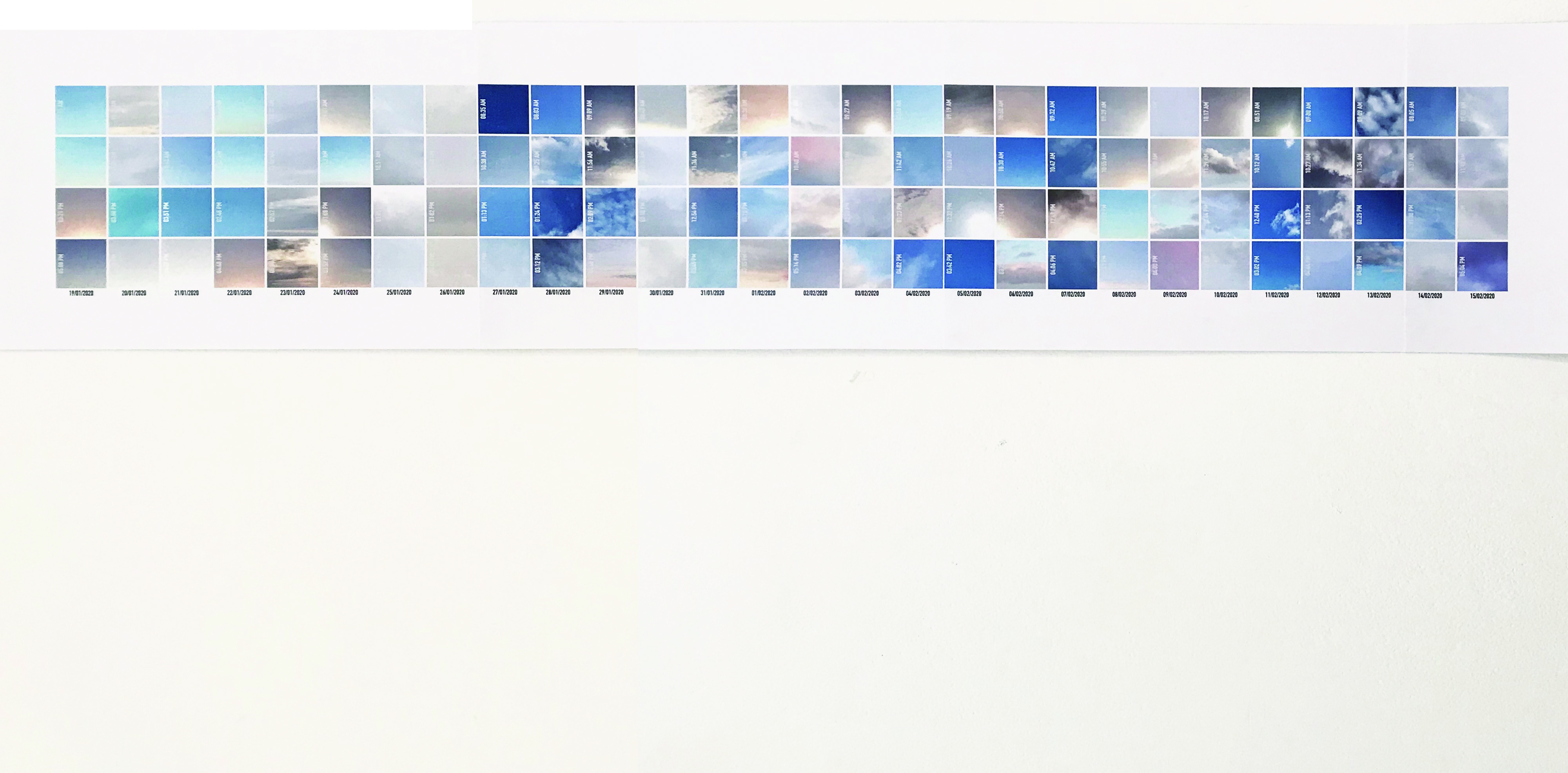 To do so, I concentrate on colour. I use four colours as a palette to represent a single moment of a day. The photos I took are simply private and personal, corresponding to the idea that I think the “sky experience” should be one of a kind. Finally the colours of a day develop an intricate rhythm; they form a particular image of me seeing the sky.