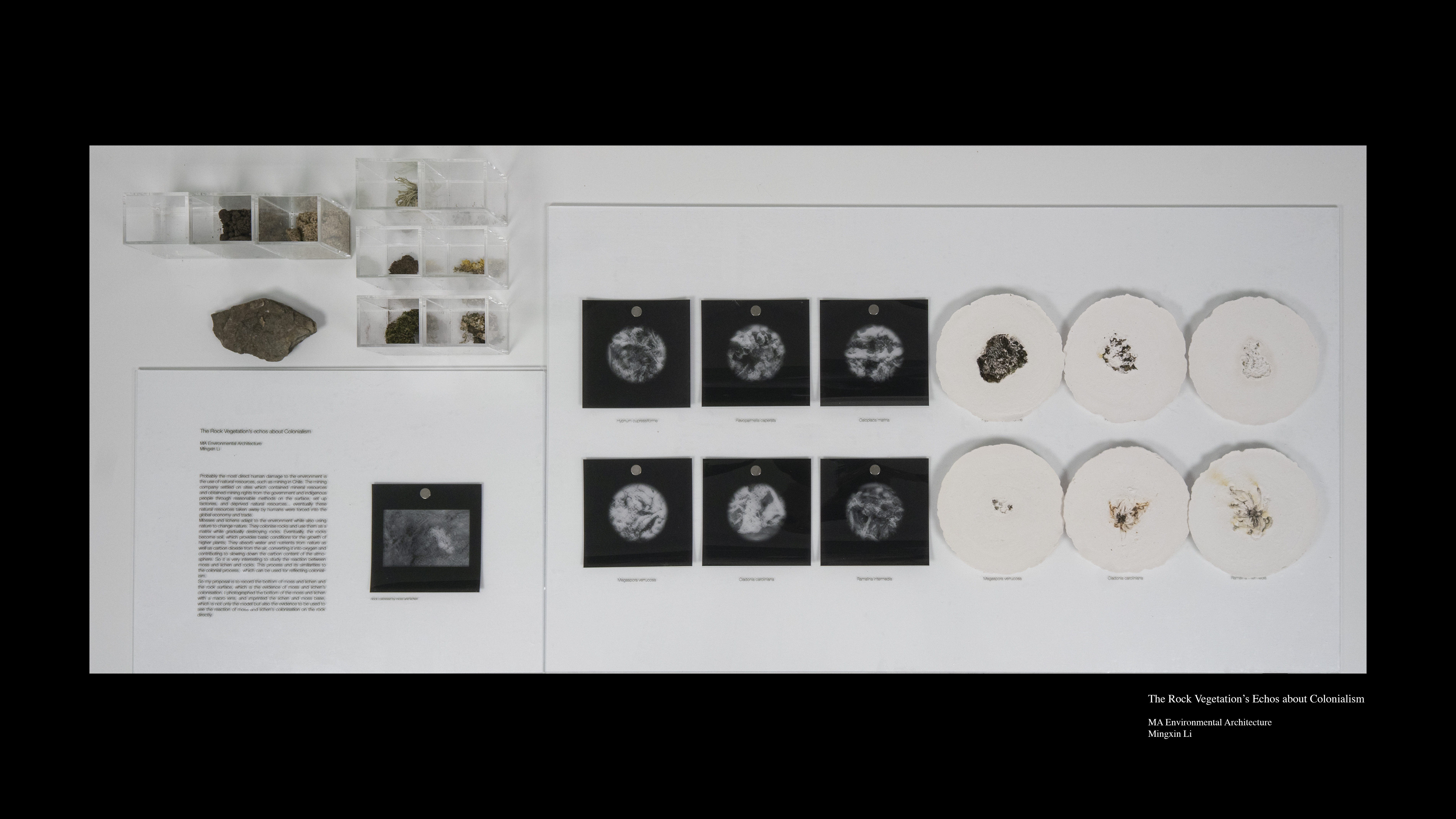 My project explores this complex relation between moss, lichen and rocks while searching in it for metaphoric and material echoes to processes of colonial driven violence and transformation.