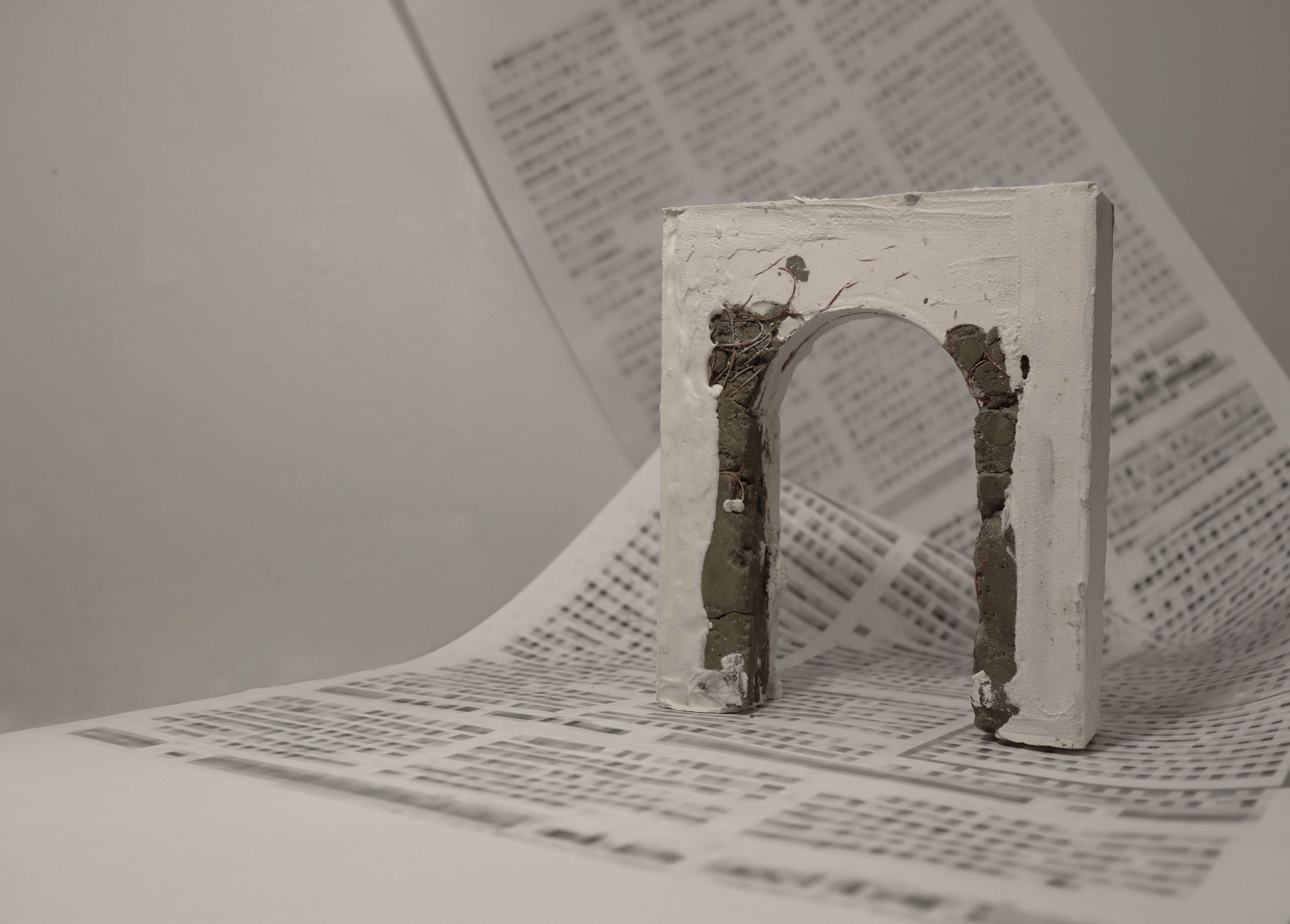 On December 8th, 1994, the small city of Karamay in China's northwest Xinjiang province was home to one of the worst fire disasters in the country's history. As a result more than 300 people who were at the "Friendship Theatre" (友谊馆) were killed -288 of whom were elementary to middle school students. It was the time when Chinese government implemented the new one-child family planning policy and as a result, media were eager to erase all the traces of this catastrophic event. My project aims to criticise the way that media were manipulated by the government. I create a physical model of the entrance of the demolished "Friendship Theatre". At the background, I put newspapers of this era in order to mediate the way that media have silenced the event.