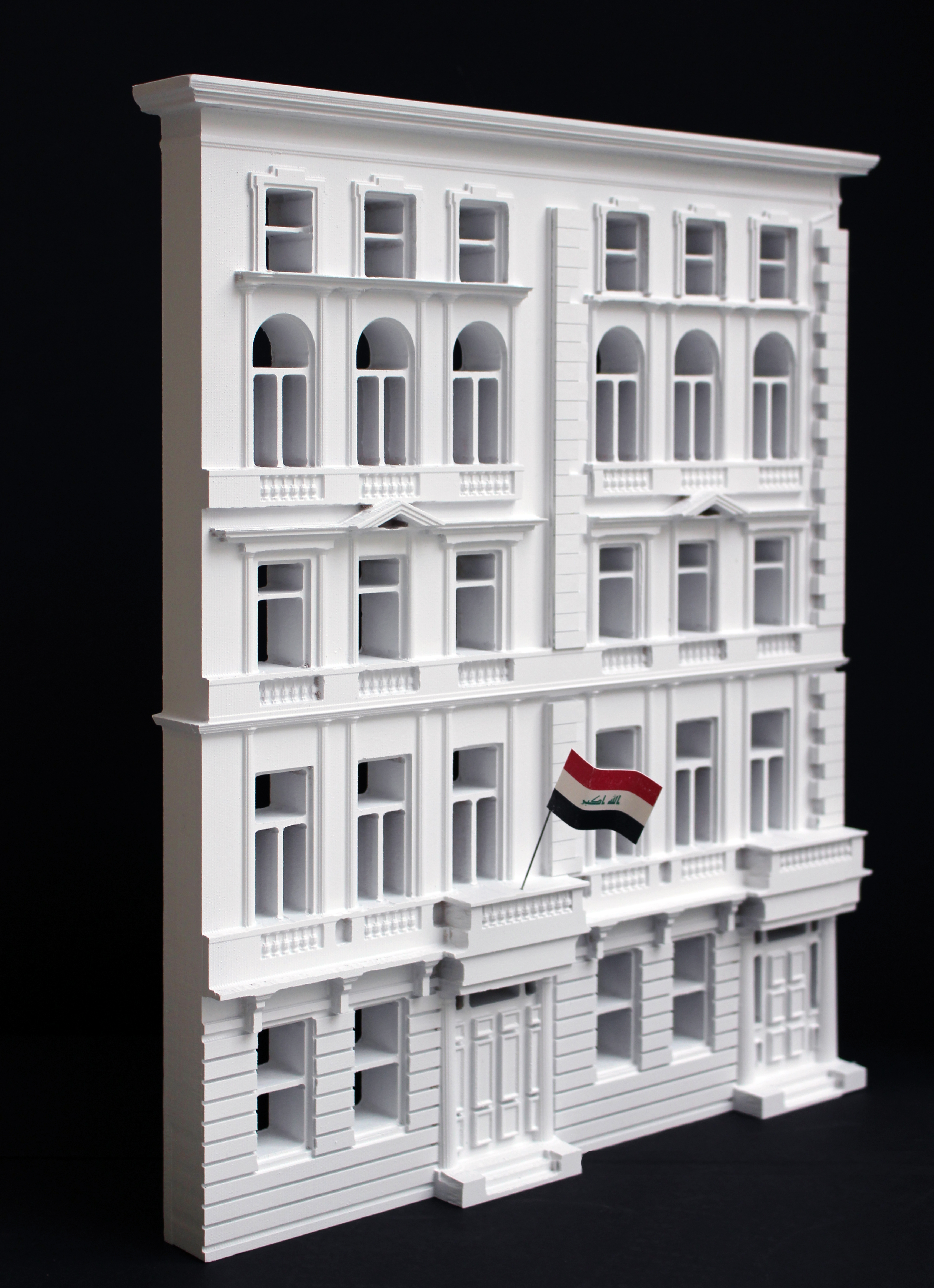 This project consists of a triptych of interviews (of two prominent Iraqi architects residing overseas - Maath Al Alousi1 and Kanan Makiya2), visuals of an Iraqi embassy, and audio from news coverage of the Iraqi war. This composition holds the stories with which my image of Iraq has been shaped.