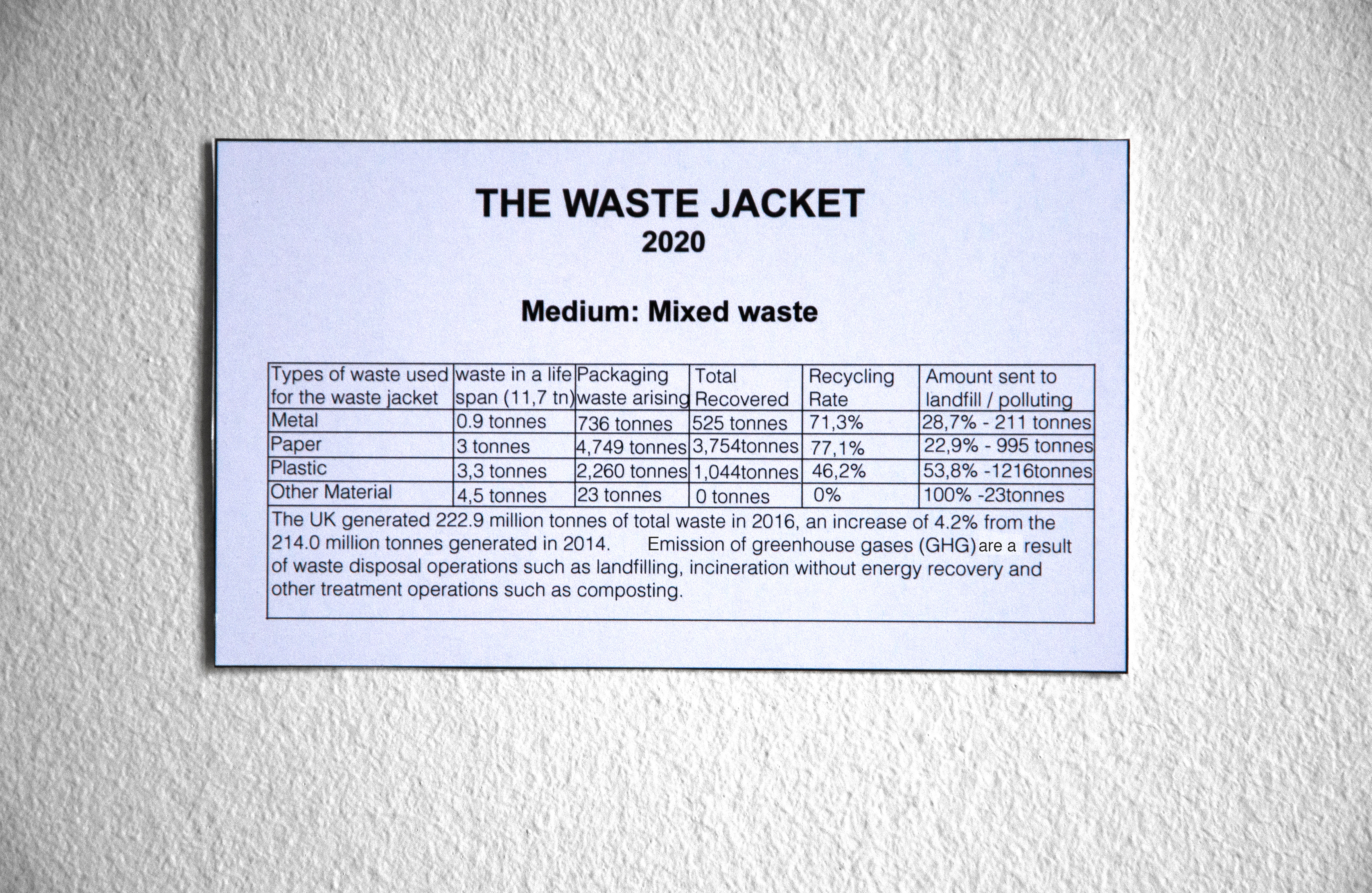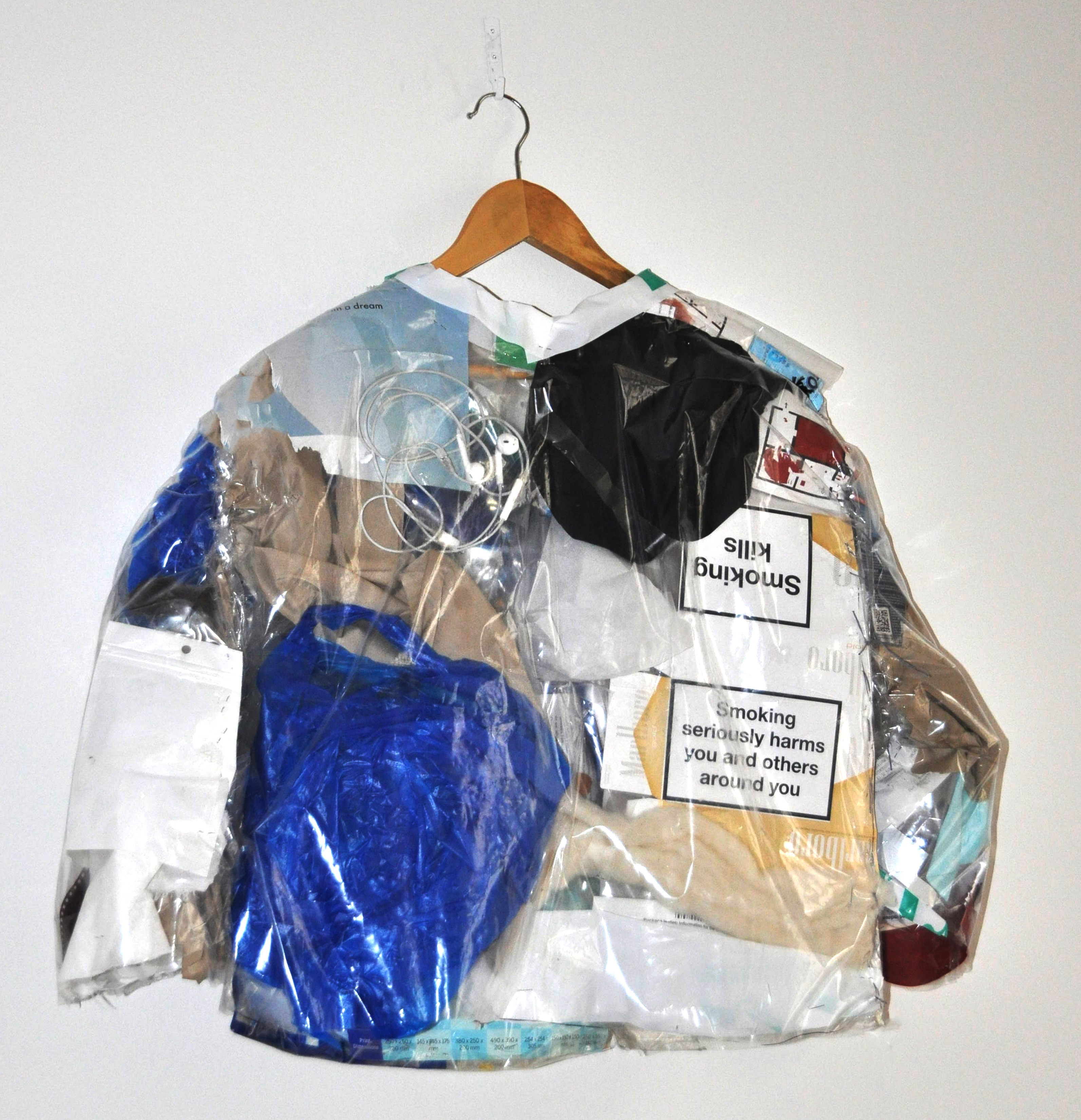 With The waste jacket, I don’t prompt to find simplistic solutions on ways to recycle materials. On the contrary, I aim to discuss ecological concerns around the extreme abundance of objects as well as consumption and production as environmental violence.