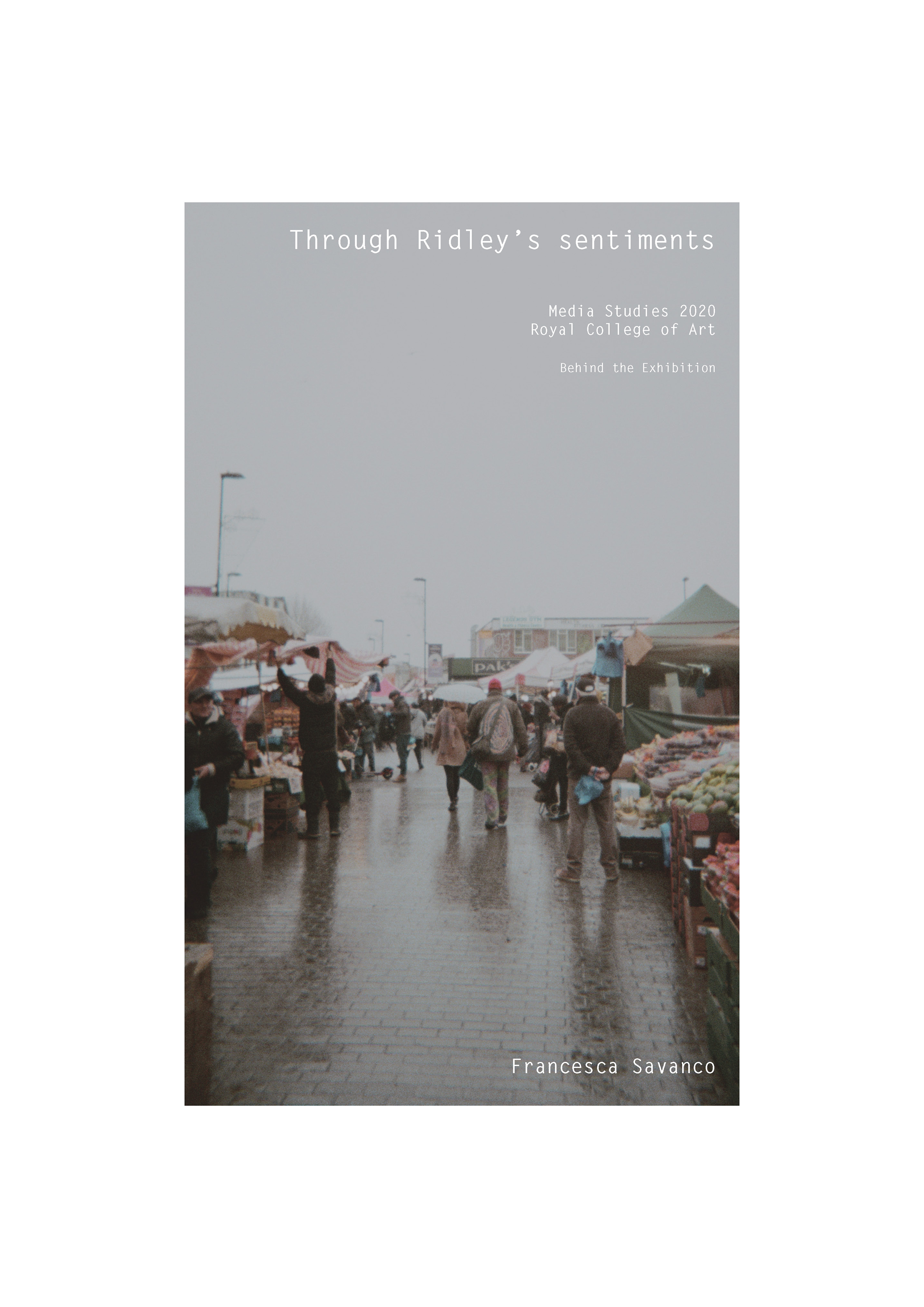 This project aims to interface with discussions and platforms that raise awareness and inform the general public about the threats which Dalston and more specifically the peculiar Ridley Road market is facing. I will document the entrance of the market and the main road through time and collate the different documentations in one item. The documentation of everyday life events will give an insight into how much the area is affected by the new-build plans and high- end residential planning applications.