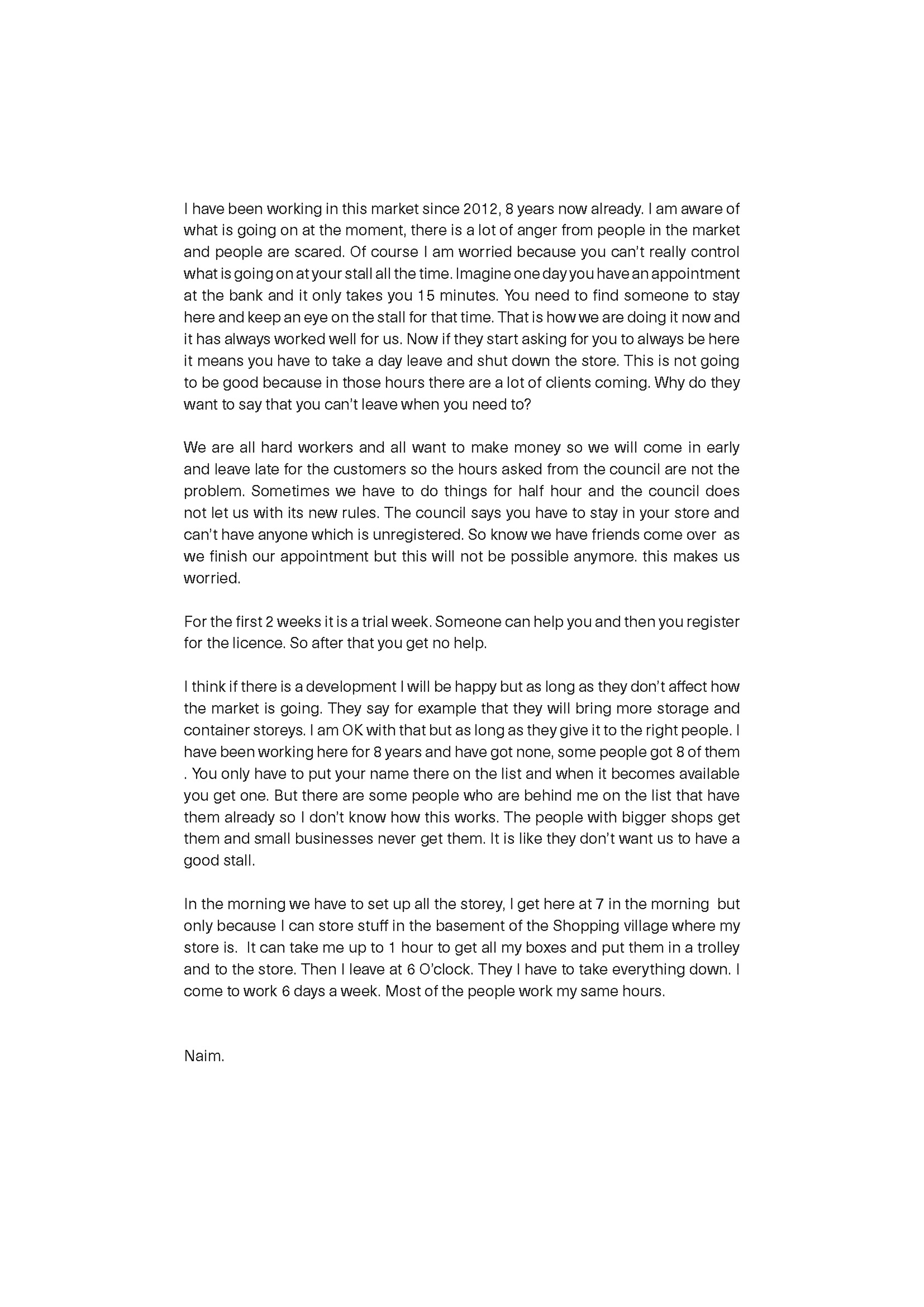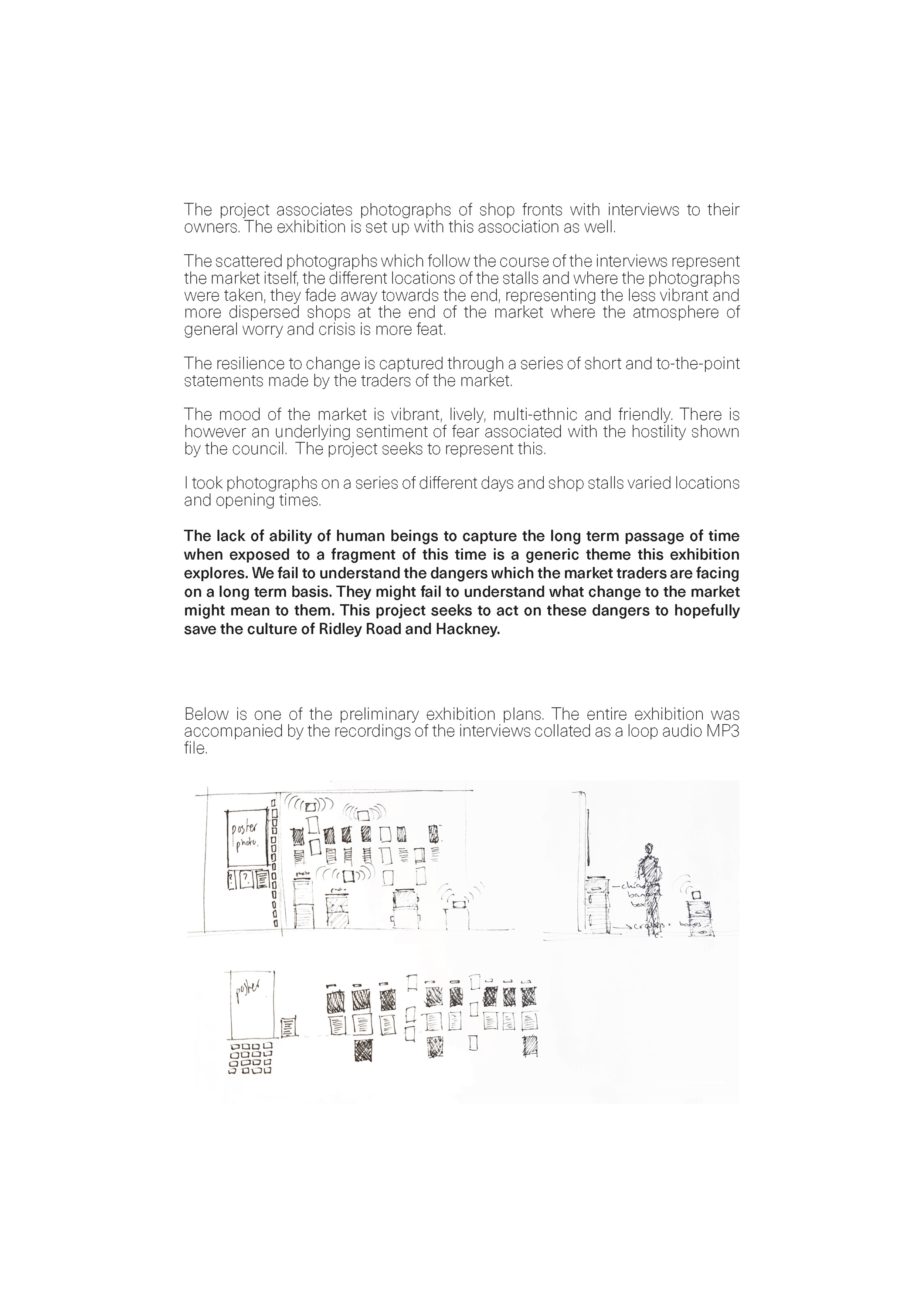 My project intention is to capture aspects of this change to the area through a medium of the photograph. I will experiment with mediums of the image which play on the duration of the single shot, to give an insight in the effect time will have on the culture of this market.