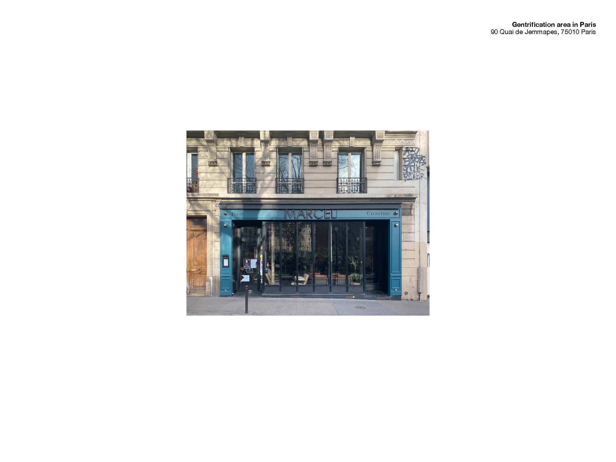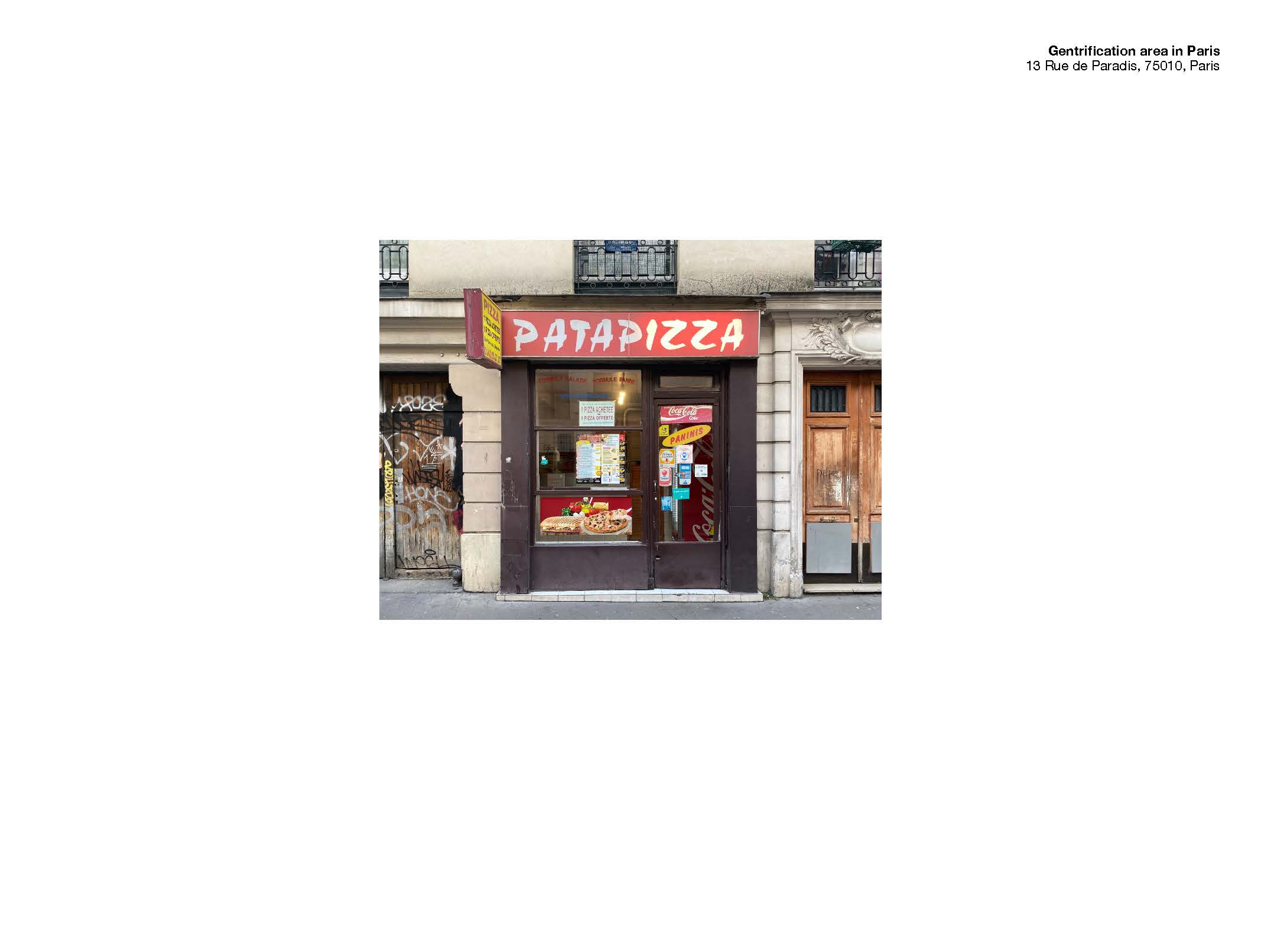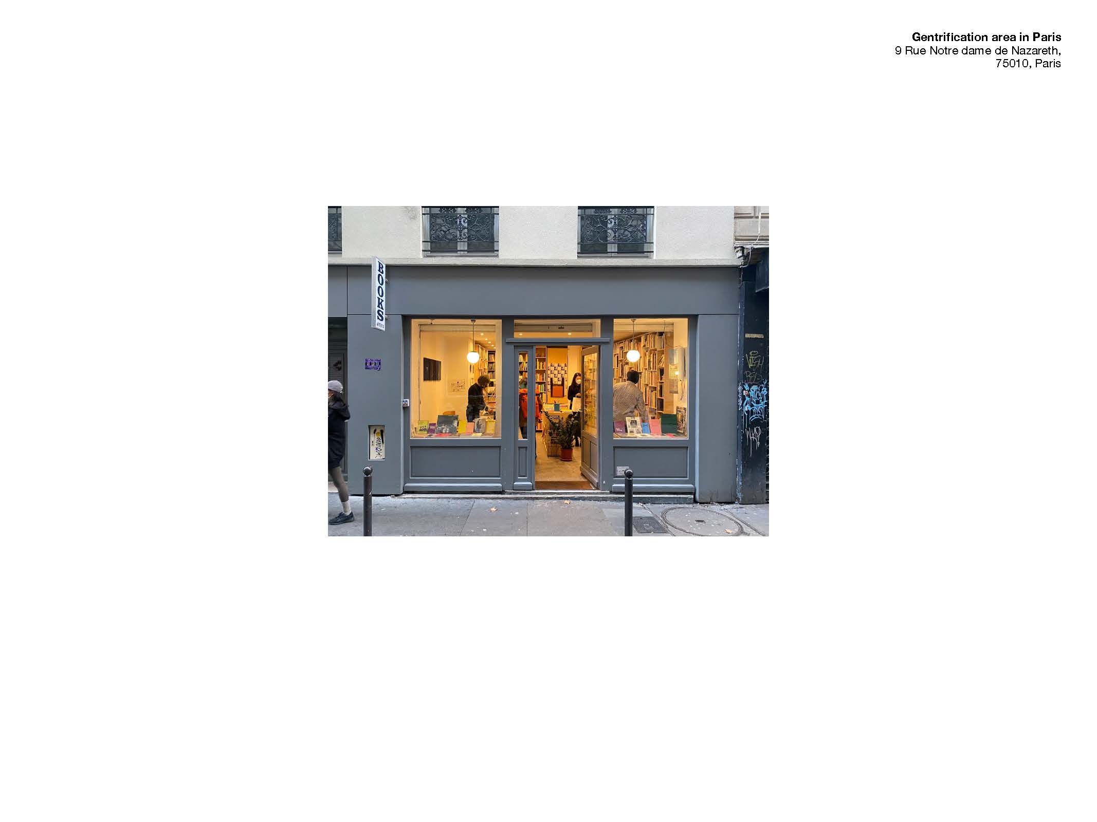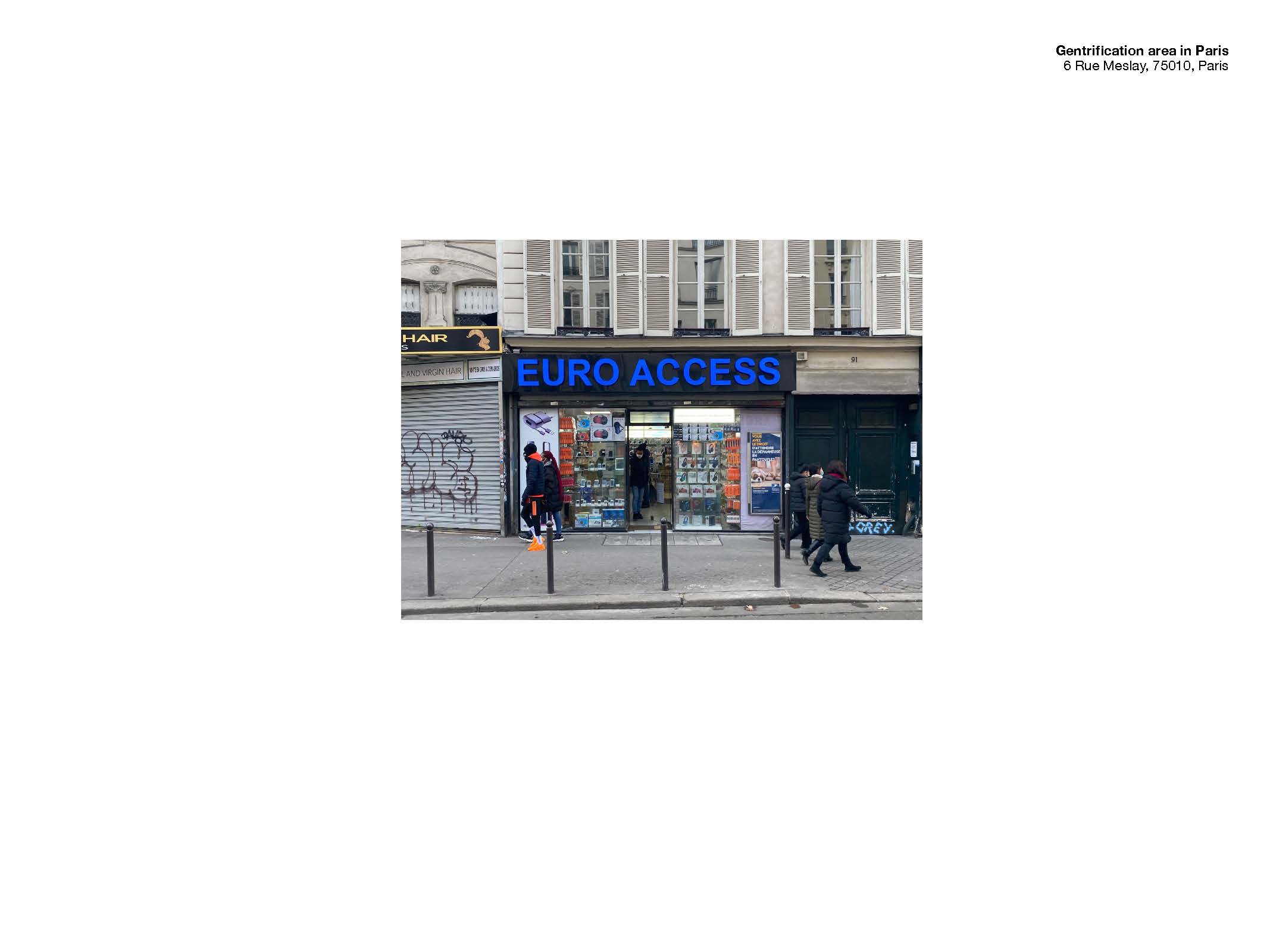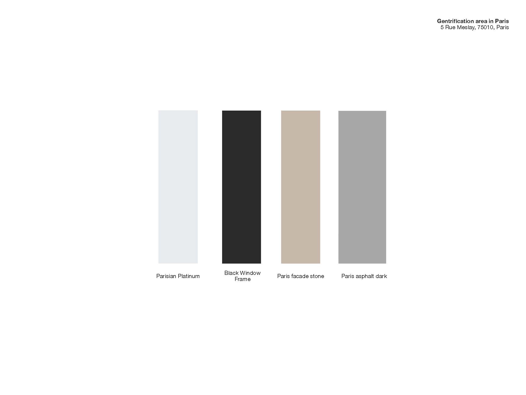 Paris is no exception to the phenomenon of gentrification observed in many capitals 2, which results in the arrival of executives in working-class neighborhoods, thus leading to a demographic change. In Paris as elsewhere, it is the increase in housing prices that is gradually excluding the poorest from central districts. First come the artists, then the cranes. As the kamikaze pilots of urban renewal, wherever the creatives go, developers will follow, rents will rise, the artists will move on, and the pre-existing community will be evicted. The project documents the transformation in Paris 3rd district that is caused by the process of gentrification. By using photography, I document the facades of all the store fronts through compiling their various colors. After classifying the stores, colors are extracted and named in relation to their context of origin. These stores range from shoe stores, accessories, and electronics that are threatened by a new wave of art galleries, art bookstores, artist studios and coffee shops. The final photographic project compiles through extraction the range of colors of gentrification as an urban coded collection.
