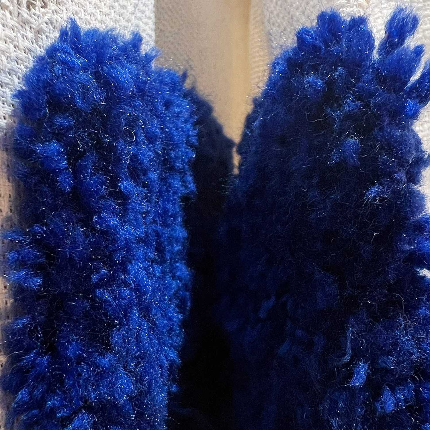Through a process traditionally used to make velvet, the work is presented mid-severance; one piece remaining on the double sided loom. The strands and fibres of each newly born surface unravel to create the delicate yet devouring texture of velvet.