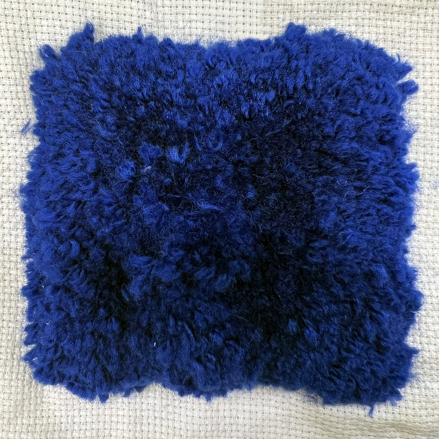 Acrylic yarn pile and acrylic weave mounted on oak frame