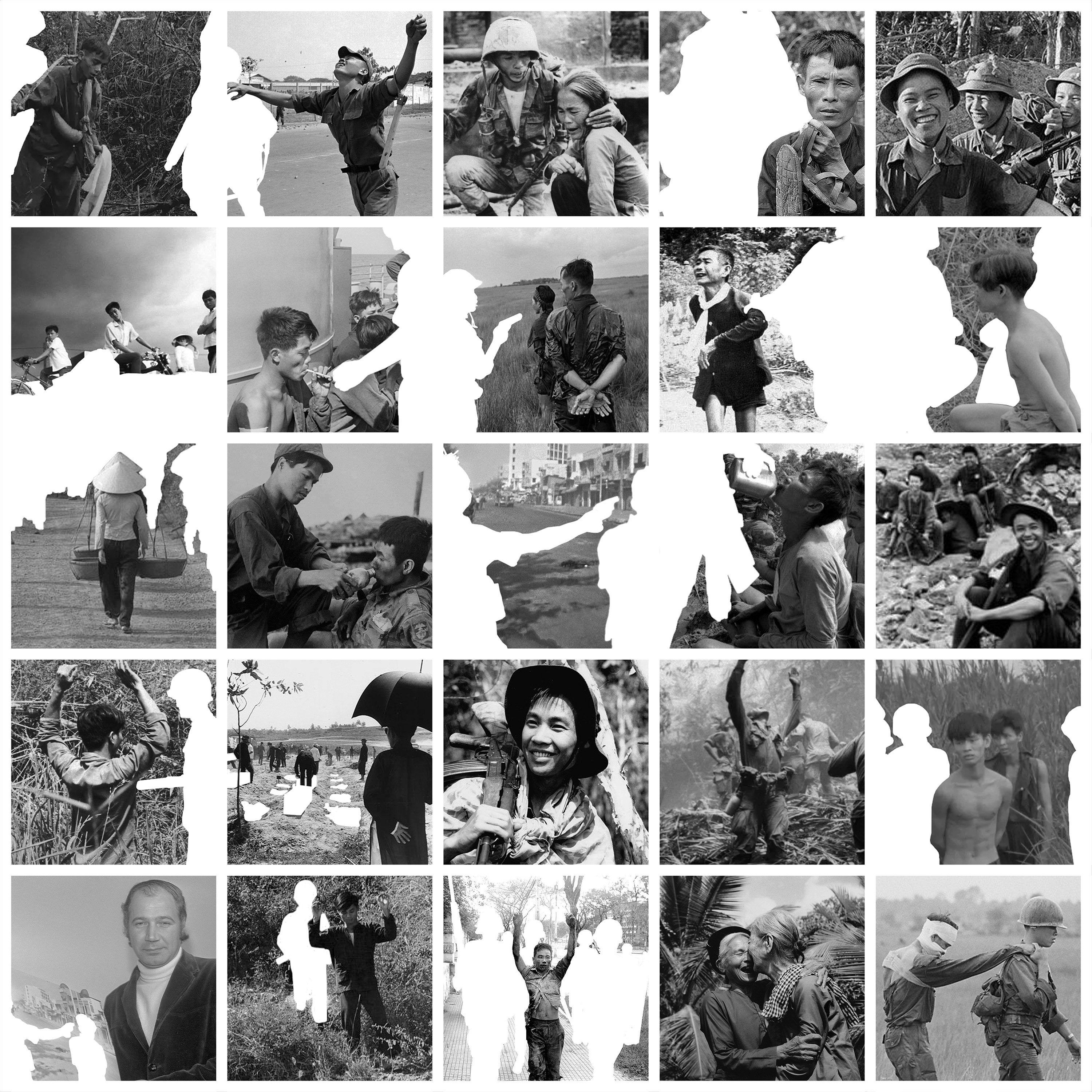 This project displays a series of edited archival stills from the Vietnam War within a large grid. Whiteouts are painted over certain areas, obscuring experiences of suffering, and simultaneously, bringing new subjective interpretations to light. The project looks to extend beyond dealing with suffering. It questions the potential of exploring pleasure within these edited stills. By intentionally removing sections and painting over certain areas, the absence of suffering within these censored portions directs viewers to uncover moments of joy and shared humanity.