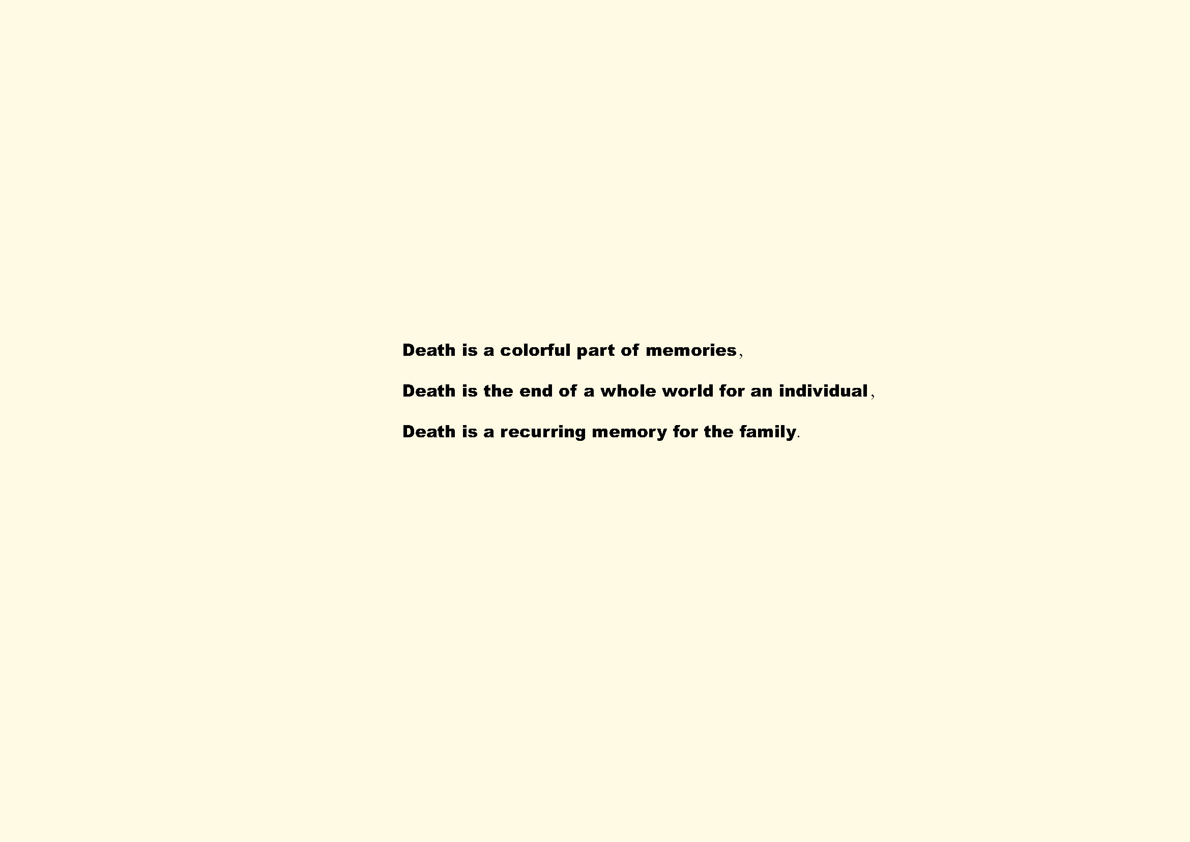 The picture book is intended for a wide range of readers, including teens and adults. It is suitable for those who are grappling with loss, seeking solace, or contemplating the complexities of death and memory. Which aims to provide comfort and understanding for those facing loss. Through narrative and visual storytelling, readers are reminded that while death may bring sadness, memory will live on as a precious remnant of love and wisdom.