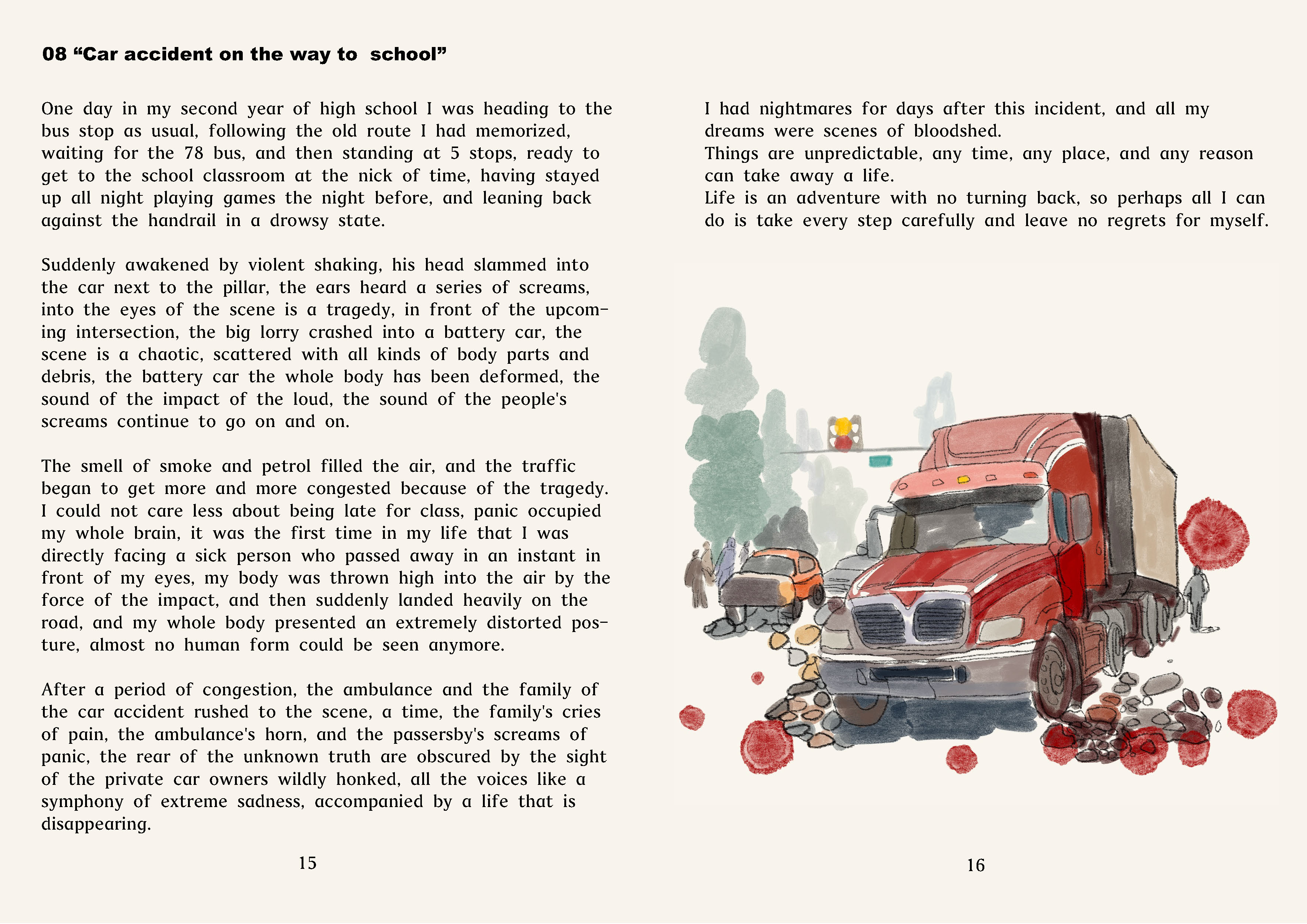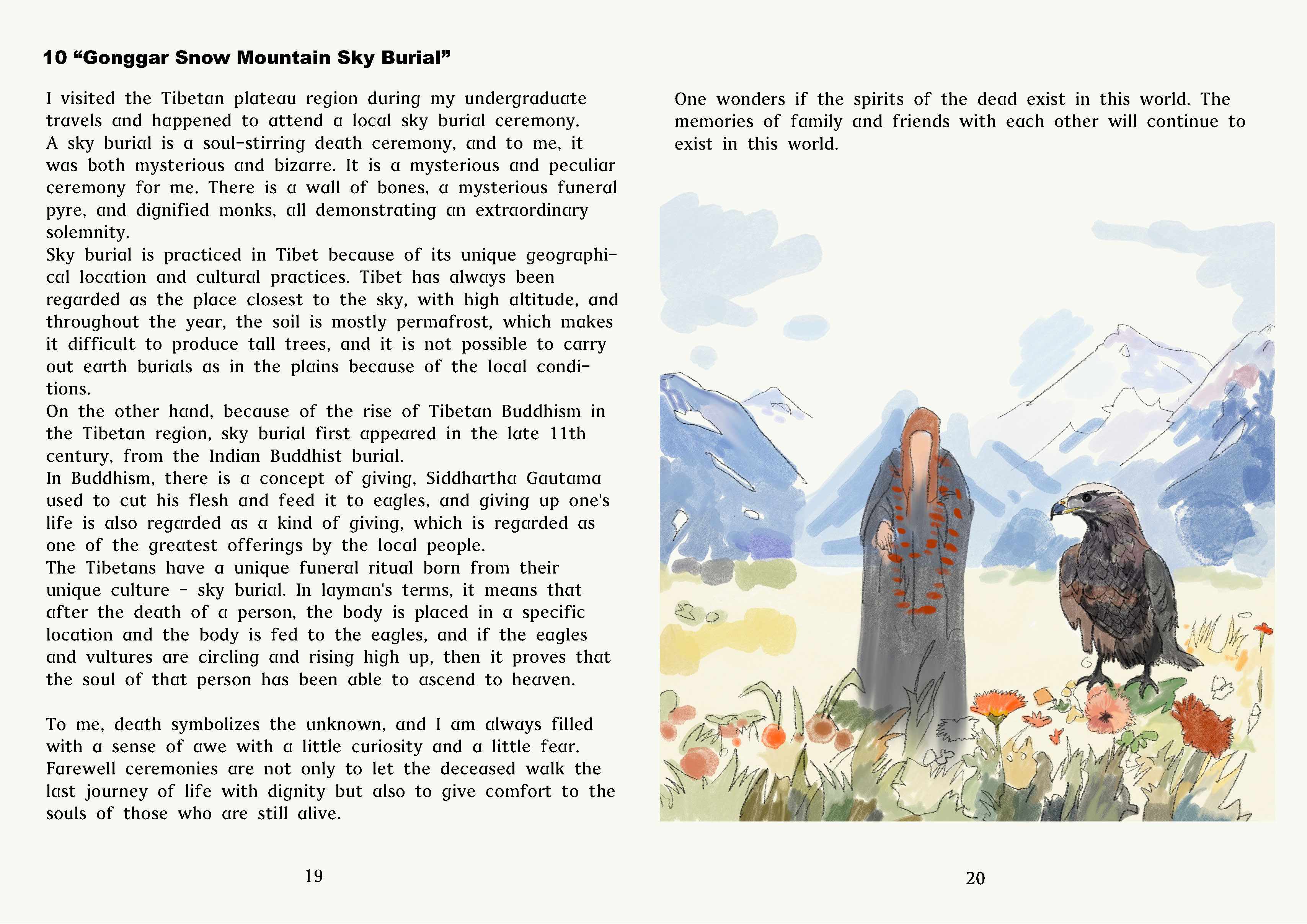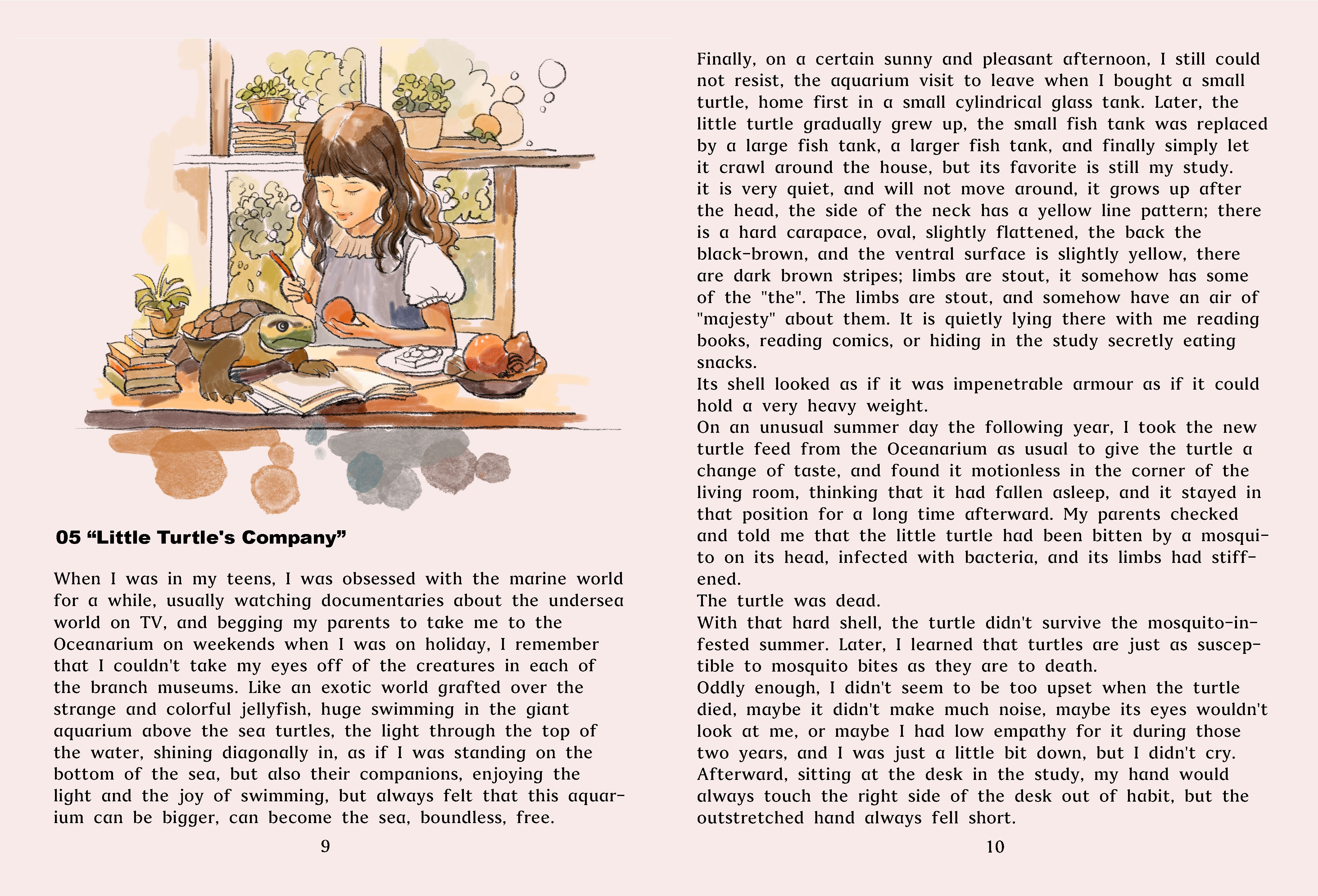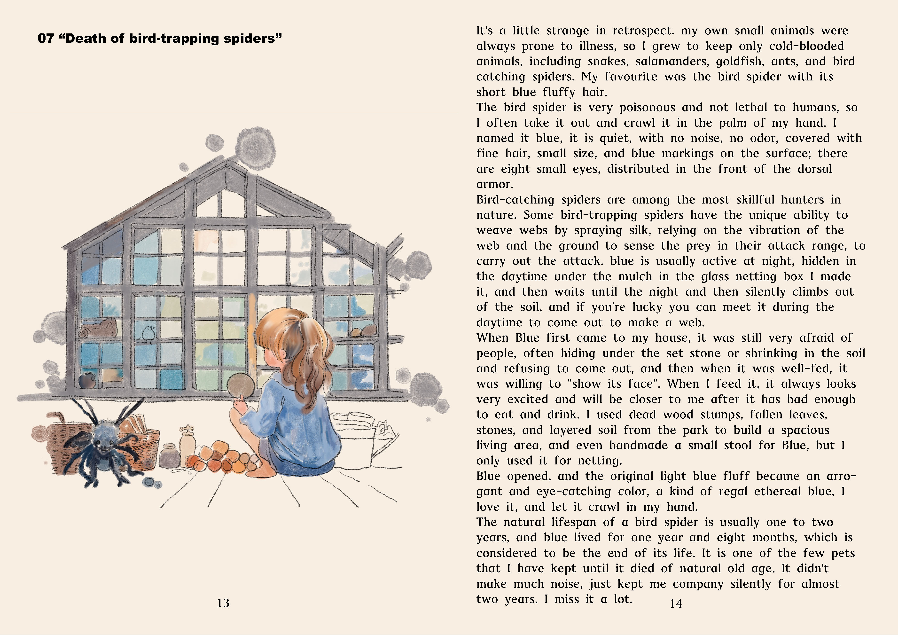 Using my hand-drawn illustrations to complement the emotional depth of the text, capturing the sadness and beauty of memories. Using subdued colours in poignant moments to symbolise the strength and guidance memories bring in vibrant tones.