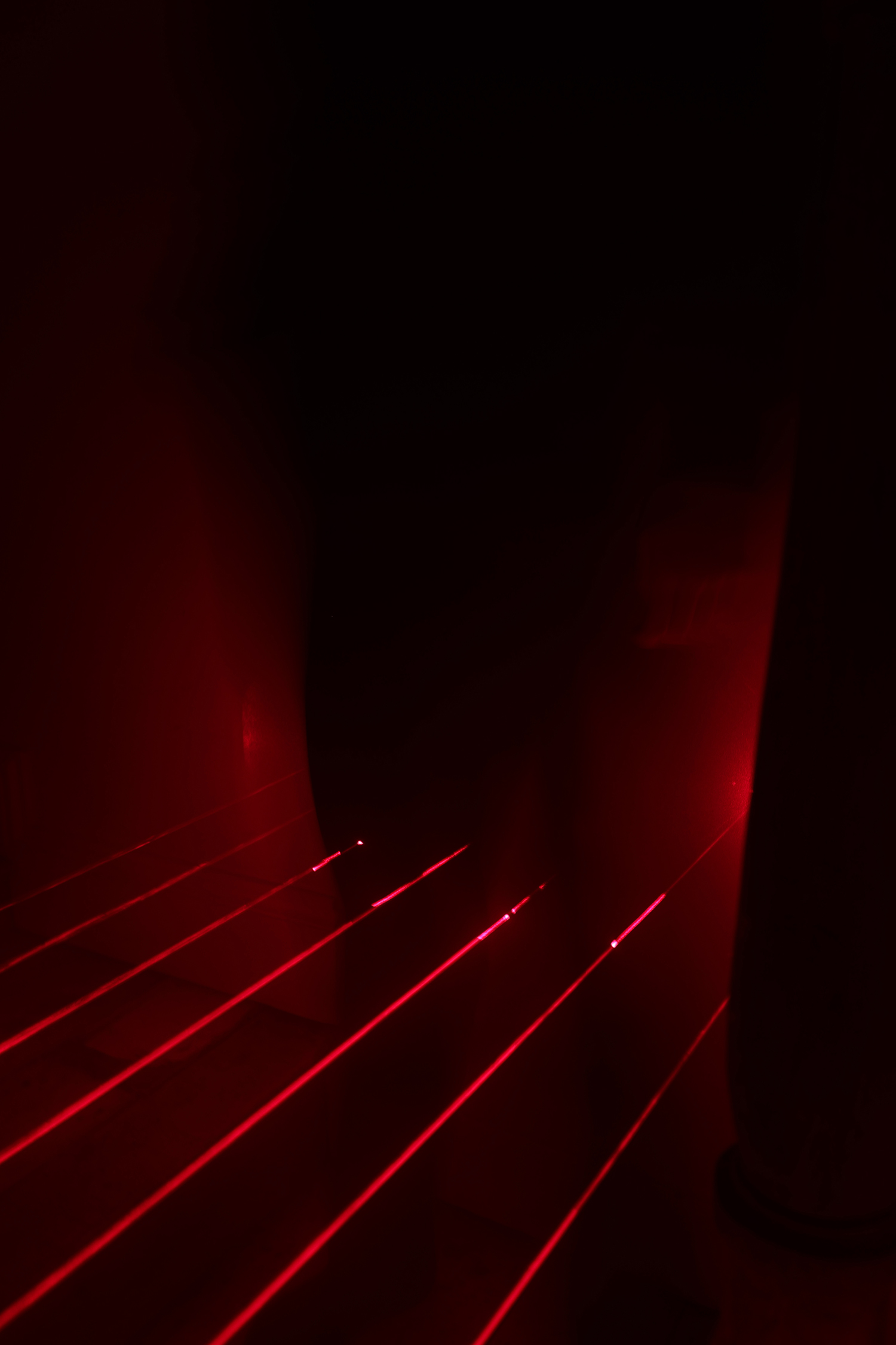 EU Embassy is a series of 27 photographs, referring to the number of EU member states. With the use of a laser bar, the aim is to study the relationship between the Union and its citizen – “a European”. In contrast to the rigid and unilateral Cathedral of Light, EU Embassy, is a dynamic scale of experiences – a constant discussion between the institution and its citizen. At times hostile and imposing, other times obliging and liberating, this project wishes to rethink Speer’s strict seriality and reflect more truthfully the contradictions inherent to the European project.