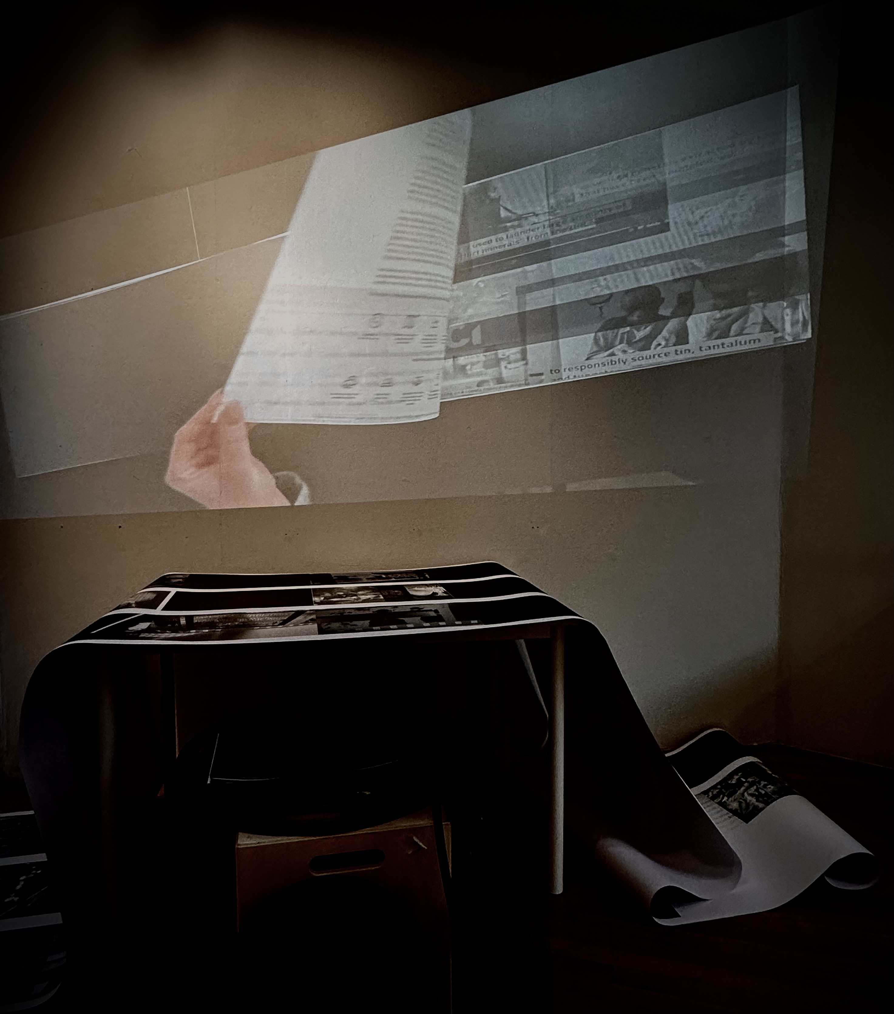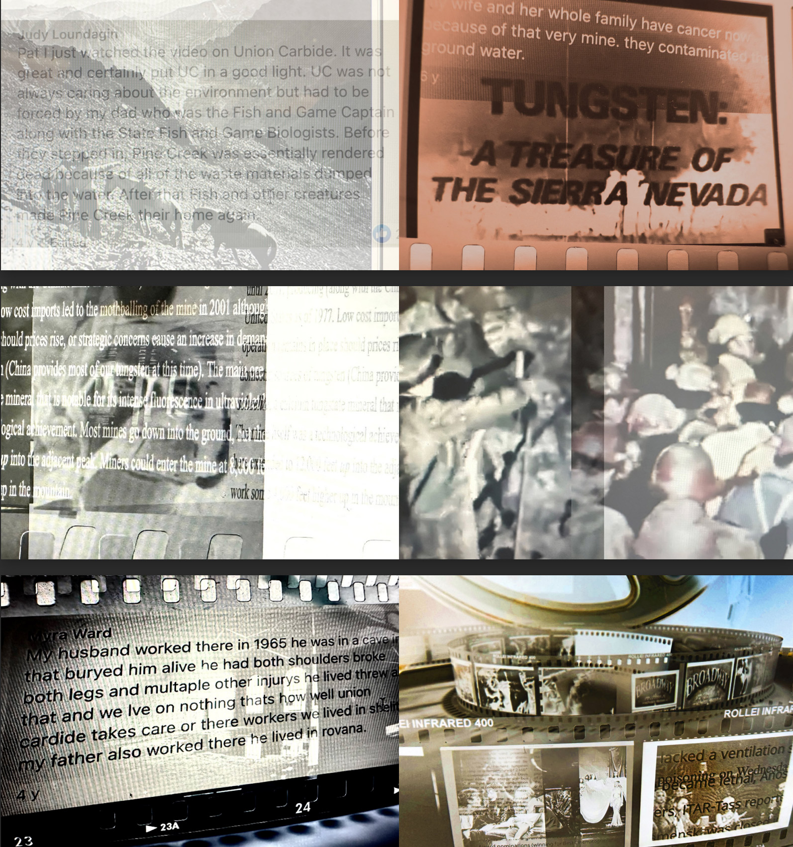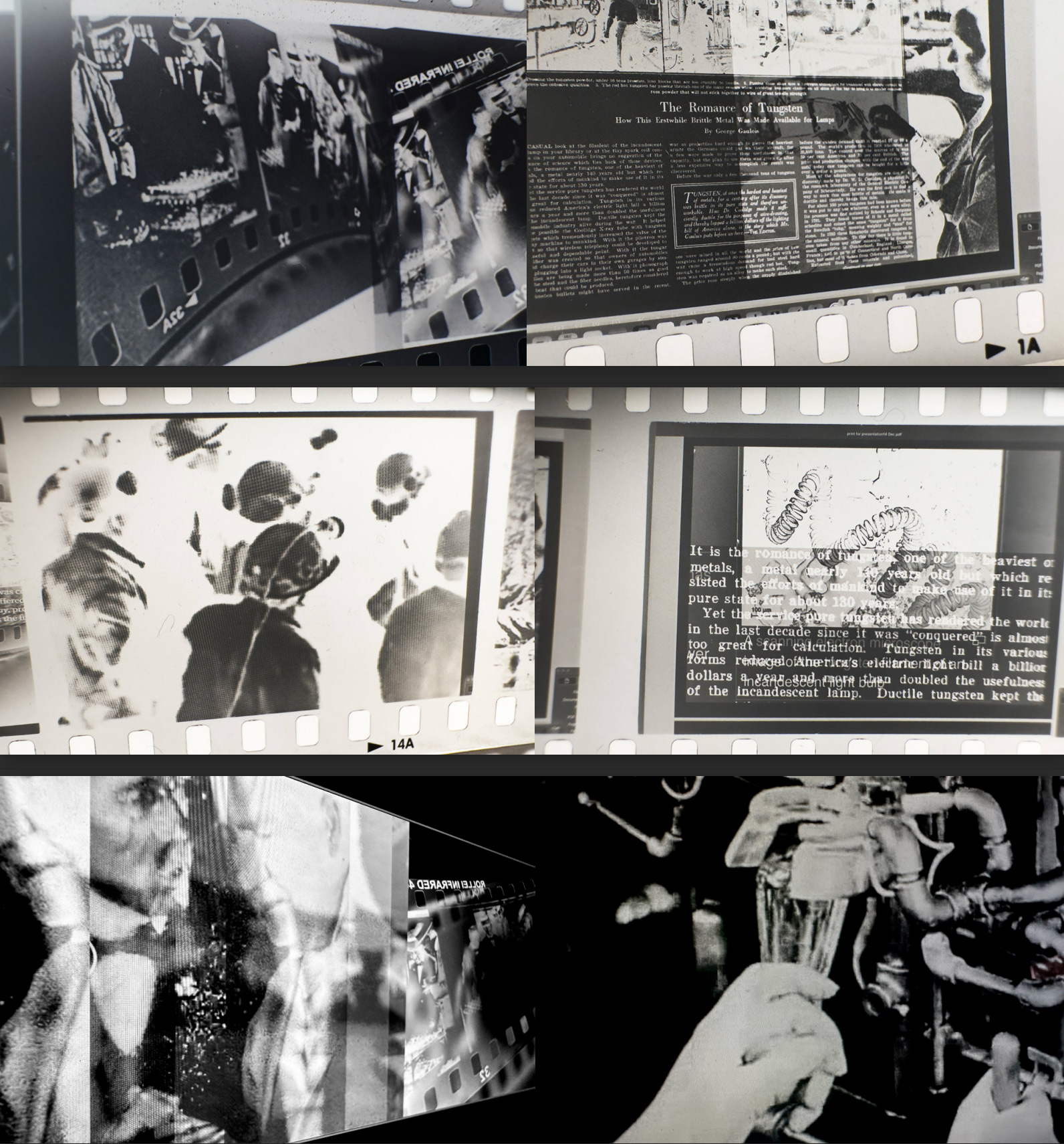 Employing diverse photographic manipulation techniques exposed the inherent nature of media itself, essentially media exposing media. Utilising researched archival material from the 1900s to the present day, I extracted the unexposed dark realities of mining in contrast with the glamorous facades in cinematic history. The combination of analogue and digital photographic methodologies (tungsten being a component in iPhone and MacBook) was employed to create an artist concertina book, scaled from a format of 35mm film. The act of repetition in photographing, editing, collaging, and reframing of imagery derived from the complex history linked to the origins of lighting, cinema and tungsten mining, mirroring the editing of film footage, splicing together discarded fragments from the cutting room floor.