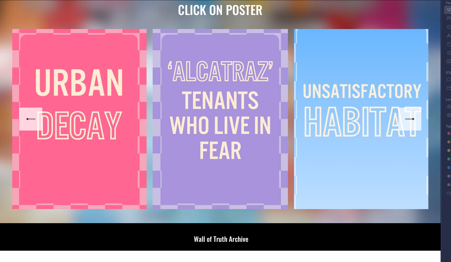 This project aims to complement and preserve the wall as a powerful community tool. The medium of the poster adds to the Wall of Truth those relevant archival materials that are not fully available to the public. Parallelly, the digital space aims to create a replica of the wall in the form of a web archive hyperlinking resources, archival items, interviews, and other relevant materials without the constraints of the physical site.
