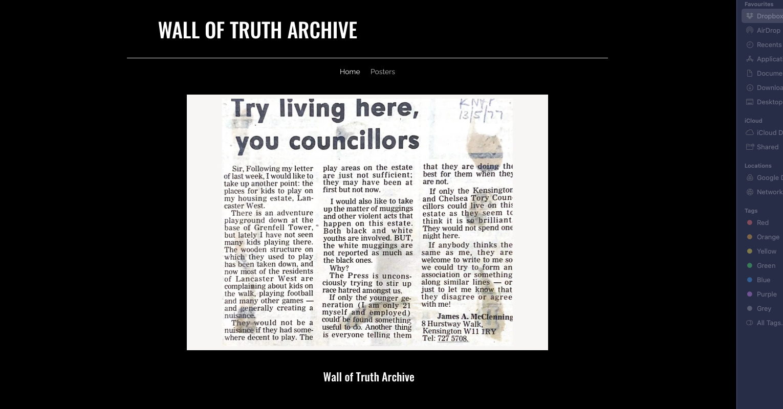 "Grenfell Tower - Wall of Truth Archive"