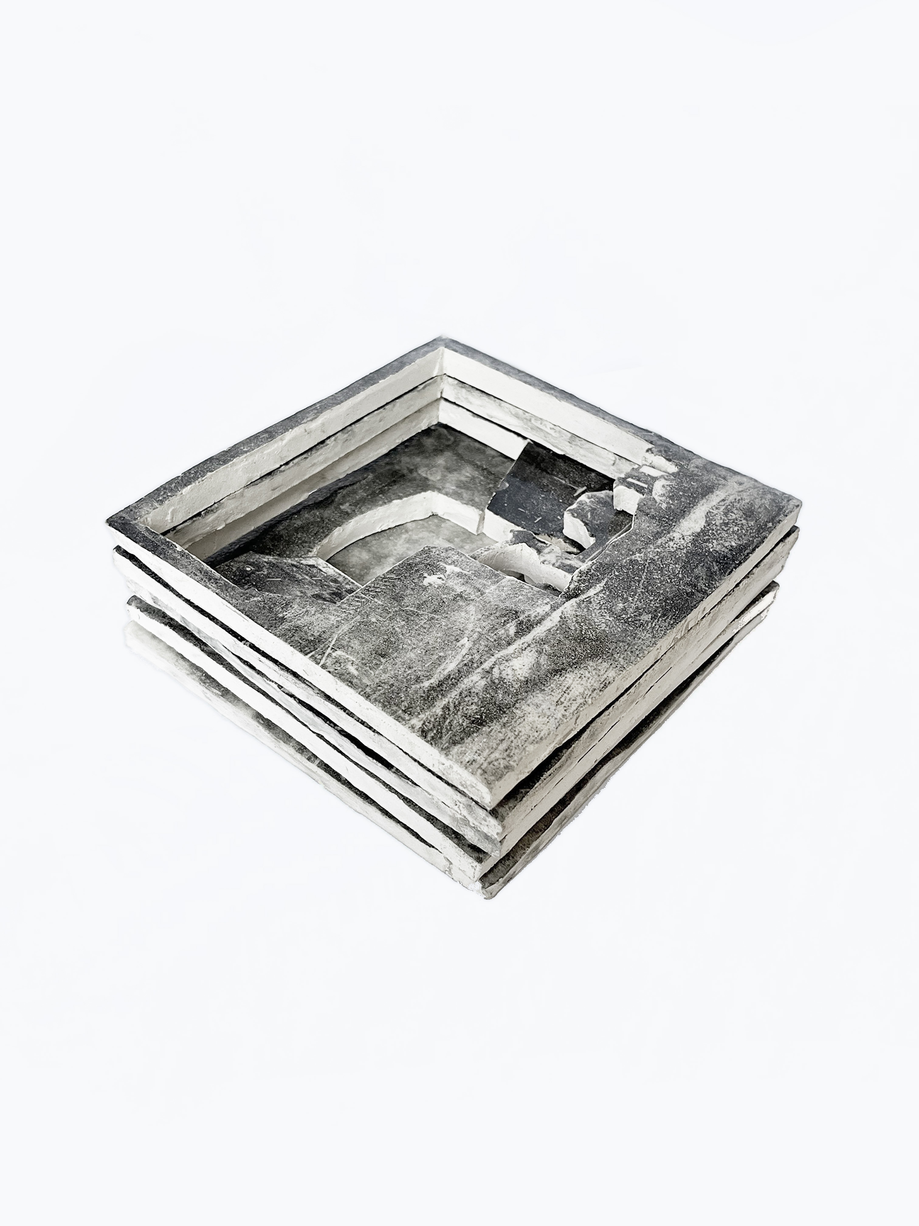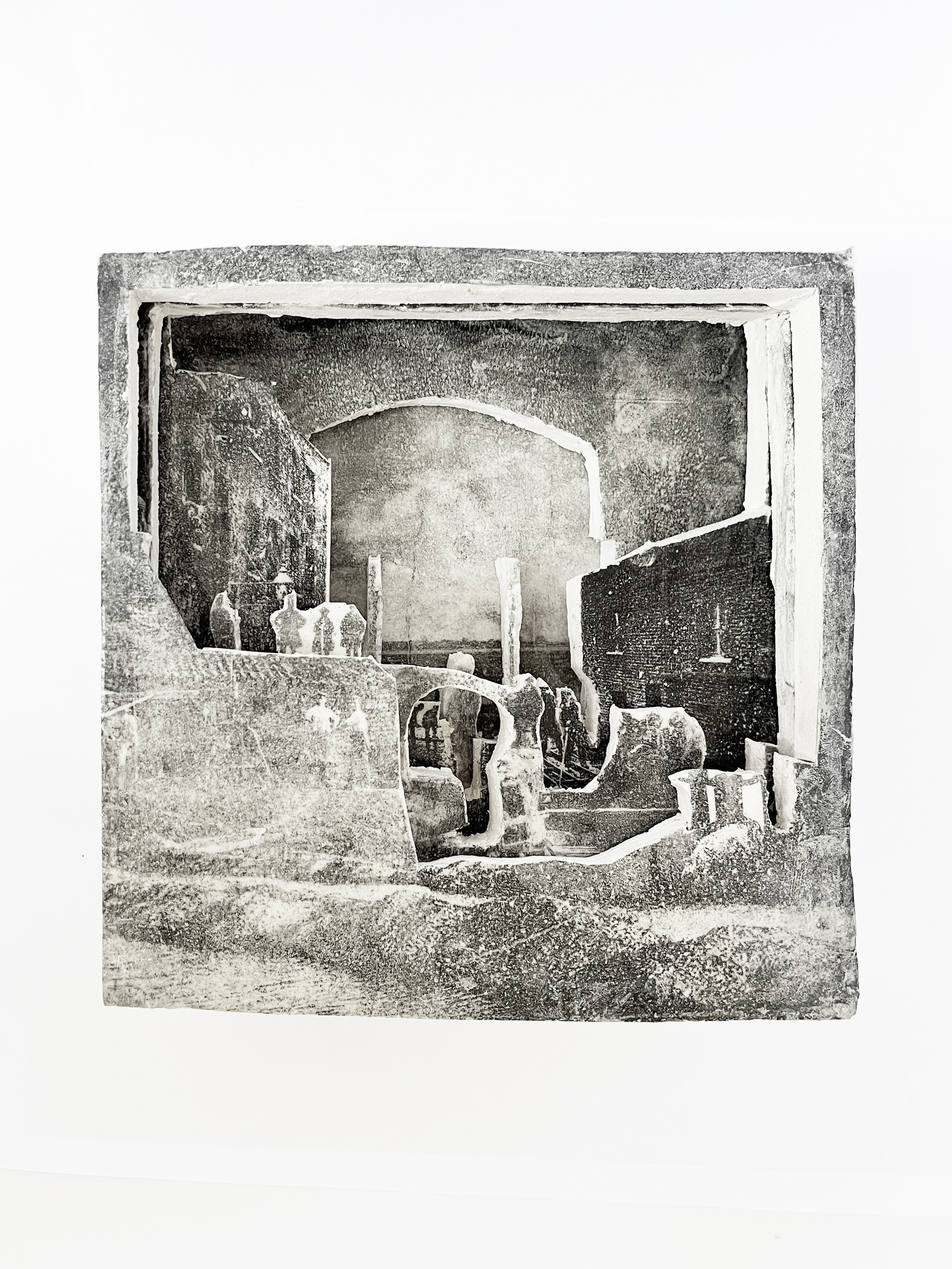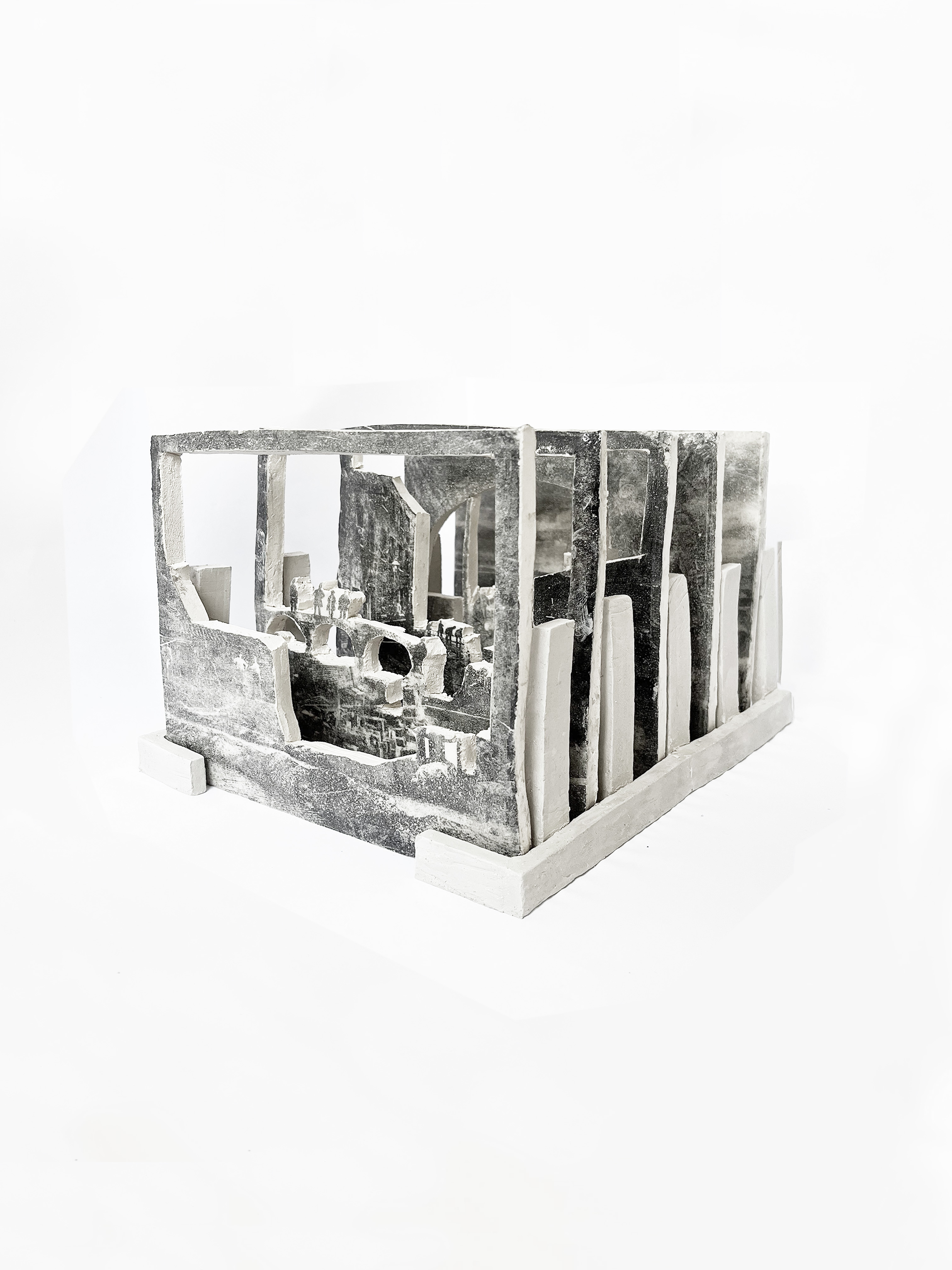 This tunnel book is sculpted not from the traditional medium of paper but hewn from the very bedrock that underlies London’s existence- Clay. The series of meticulously crafted slabs unfolds a little-known narrative, chronicling the city’s history of clay activities and delving into the interconnected tales of tunnelling, sewer systems, poverty, and catastrophic floods. Beginning with the Potteries and Piggeries slum in Notting Hill, the first slab exposes the unsanitary repercussions of clay extraction. Snaking through Joseph Bazalgette’s sewer systems and the 1928 Thames flood, it confronts the human toil and subsequent flood control measures, culminating in the present-day Super Sewer project led by the very same Bazalgette Limited.