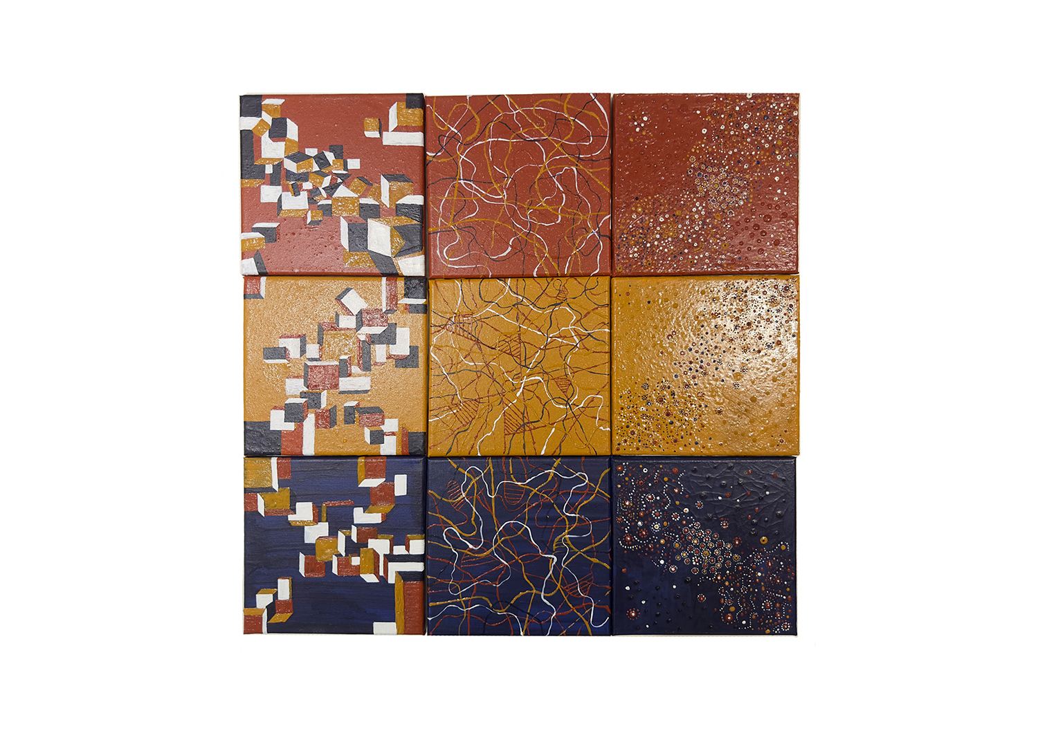 A series of boundary themed pictures are drawn and painted with soil environmentally friendly materials, using the three elements of dots, lines and surfaces as a theme and the primary colours of red, yellow, and blue as the main colour palette. This series of paintings has been conceived in response to the current condition of neglect as well as displacement of people in Western Sahara.