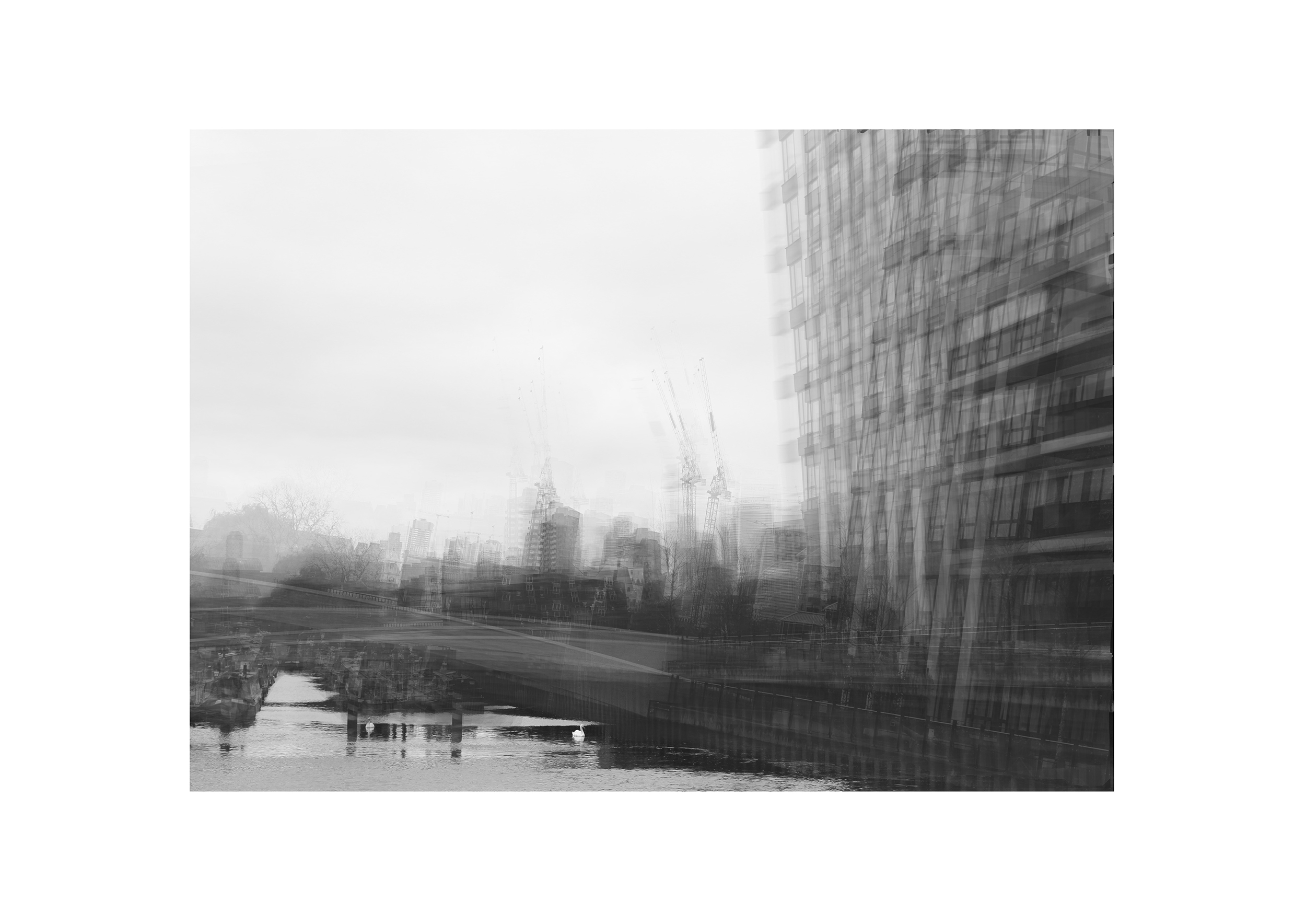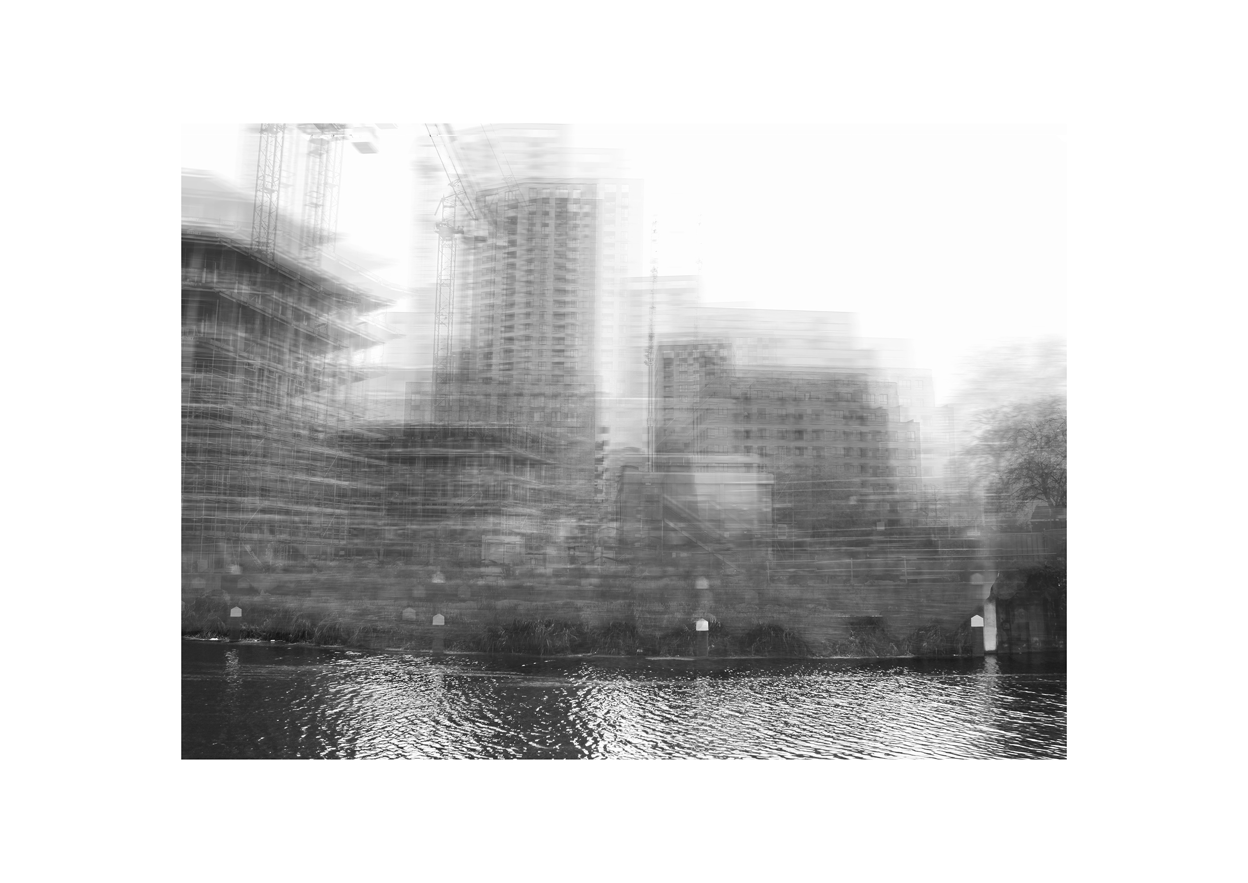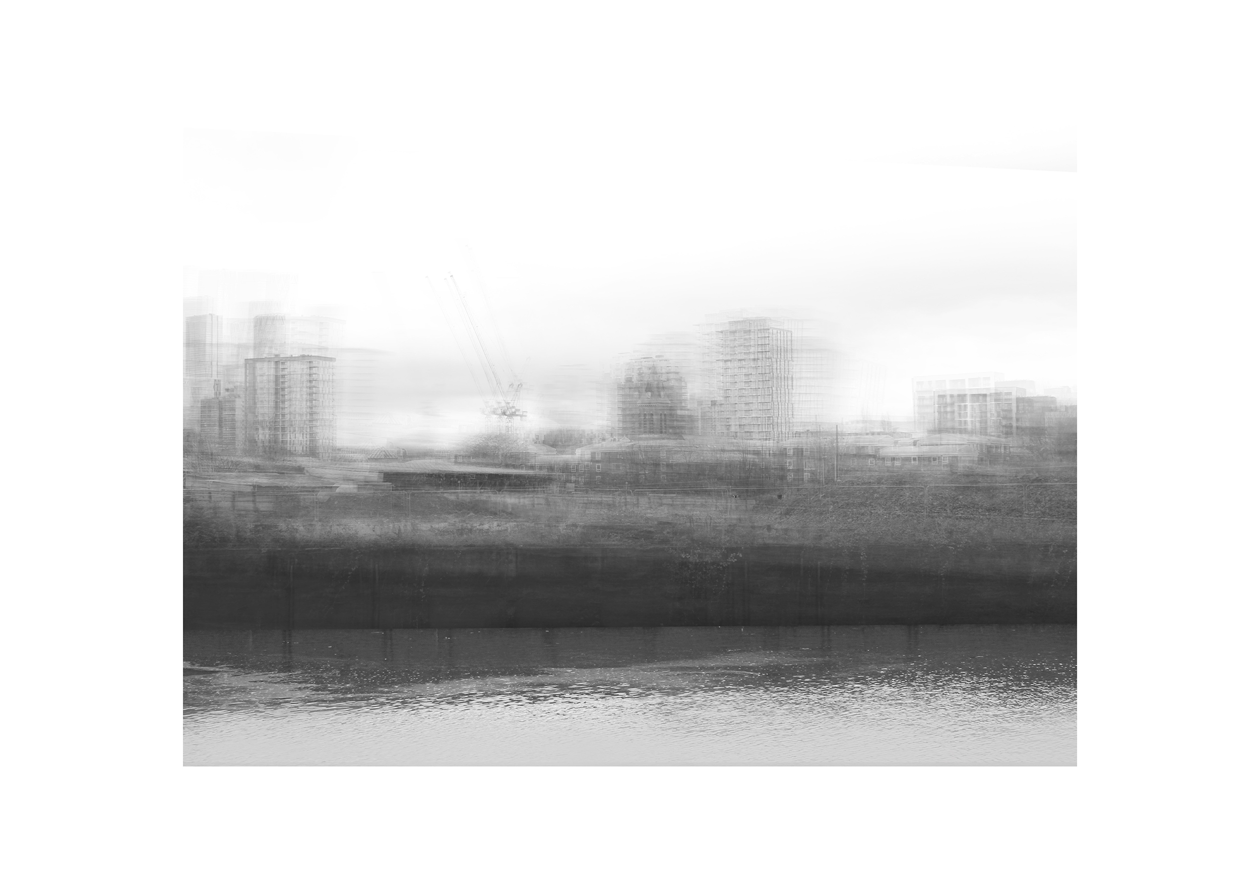 In an effort to capture the perpetual transformations surrounding the river, I crafted a series of photographs subjected to meticulous editing and layering. The intentional blurring effect employed in these images serves to accentuate the rapid transformations occurring in the developing areas. Meanwhile, the river maintains a clear and undistorted appearance, almost attempting to slow down the development process, emphasising a deliberate contrast between the two.