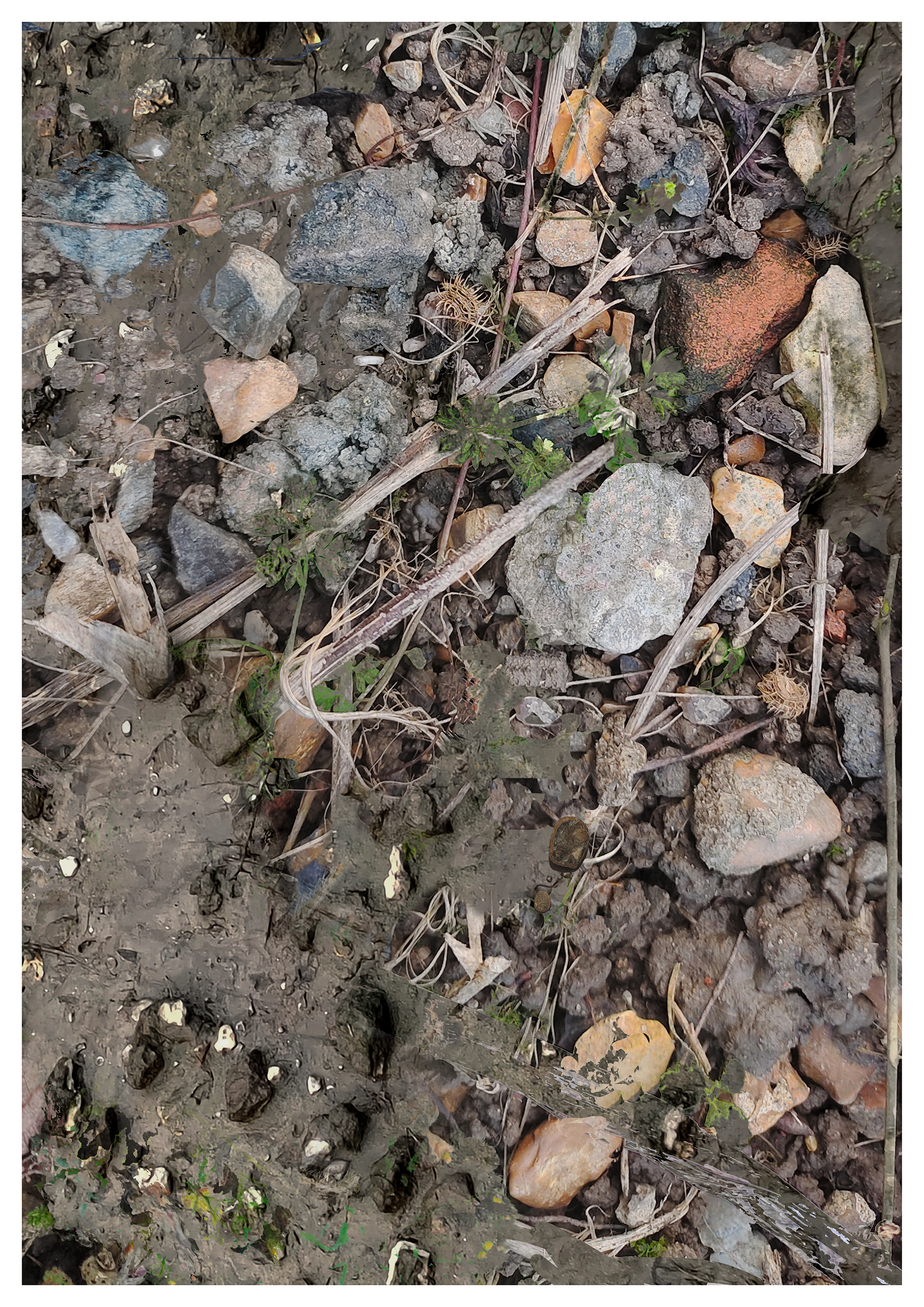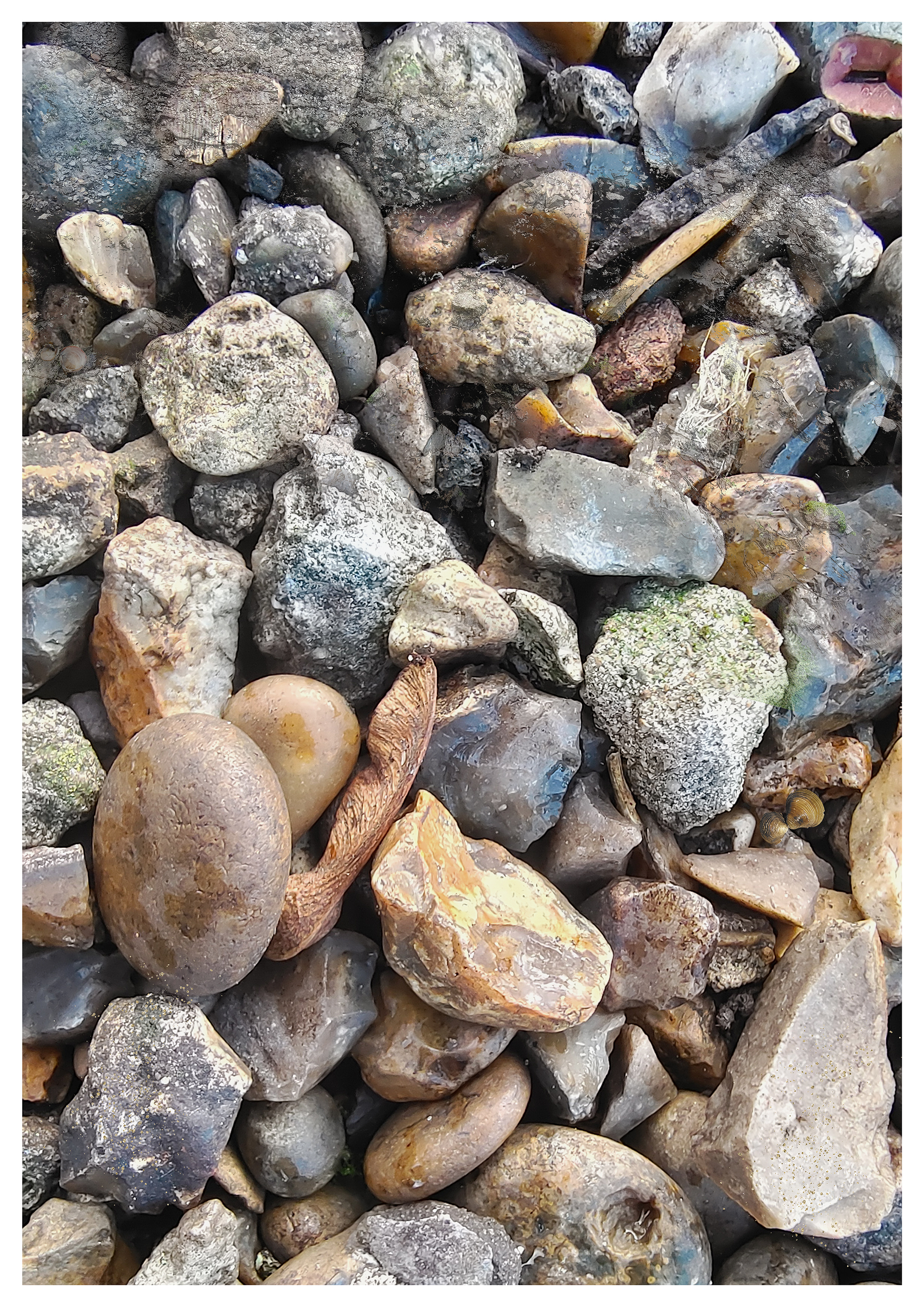 Dilip Da Cuhna's work, "The Invention of Rivers: Alexander's Eye and Ganga Descent"1, sheds light on the historical tendency to separate water from land, emphasising the impact of viewing rivers as static objects to be mastered rather than integral parts of a continuous water cycle. This perspective inspires my project, which aims to depict industrial-induced changes on the Lea River by examining gravels and sediments. Urbanisation and agriculture introduce pollutants into the water, influencing sediment deposits and disrupting river dynamics. Consequently, these human interventions shape the gravel composition in a given environment, contributing to the evolving landscape of the river.