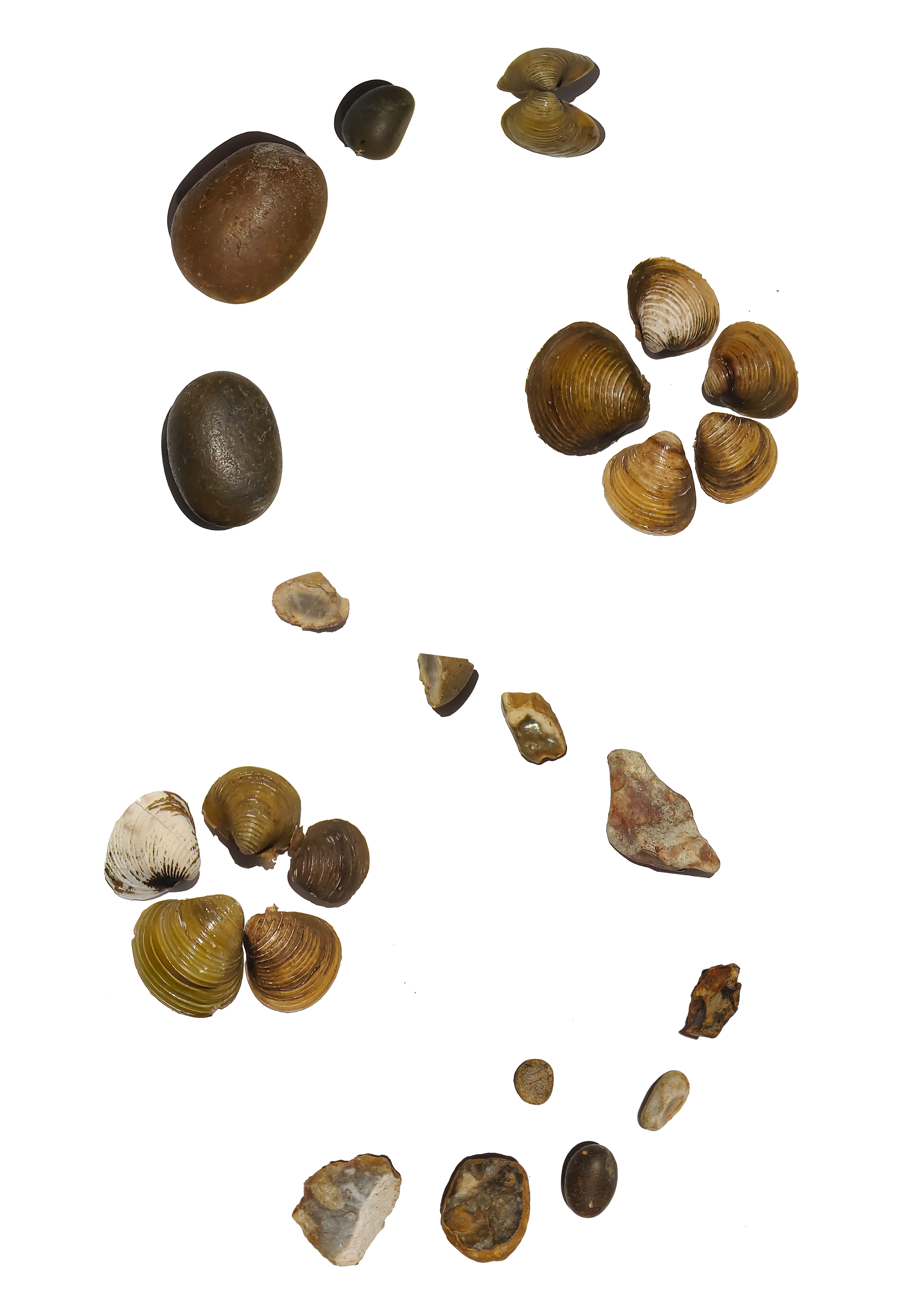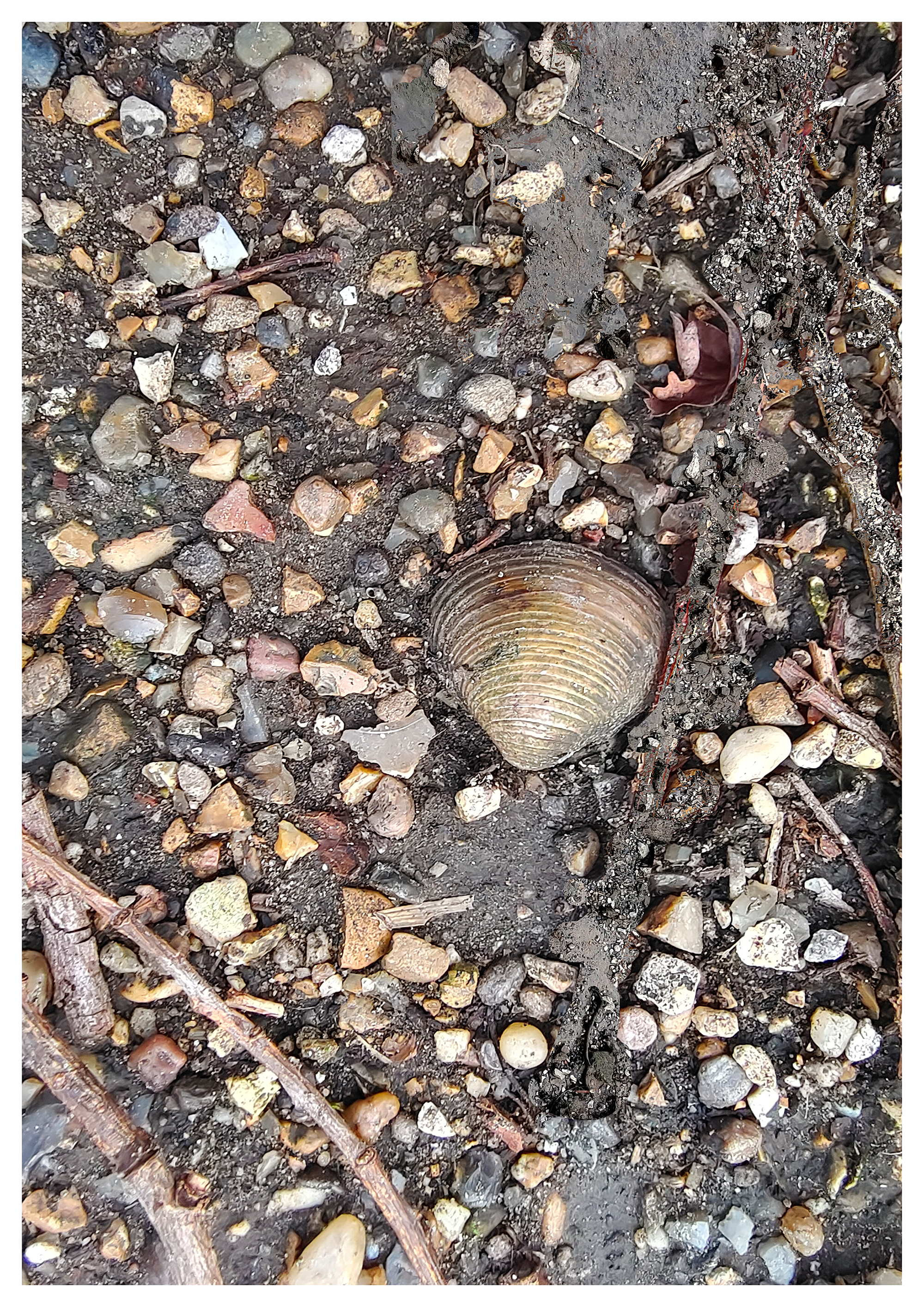 River terrace deposits consist of a diverse composition, featuring sand and gravel with occasional intermingling of silt, clay, or peat. As a historical record, these deposits offer valuable insights into the river's past and its ongoing challenges. Notably, the presence of shellfish remains, particularly Corbicula fluminea, along the river banks and shallows, signifies the integration of new ("invasive") species into the sediment, underscoring the dynamic nature of the river.