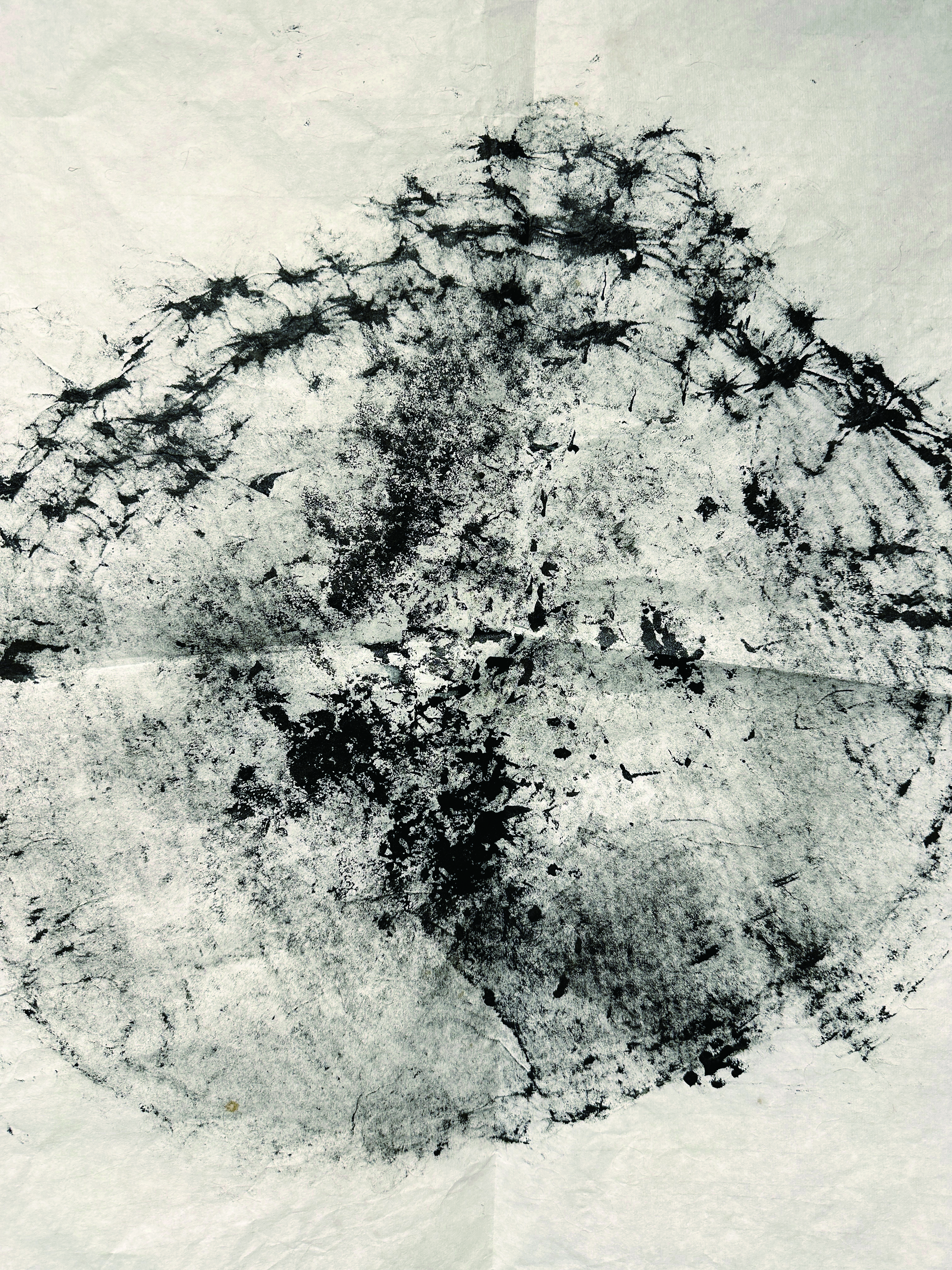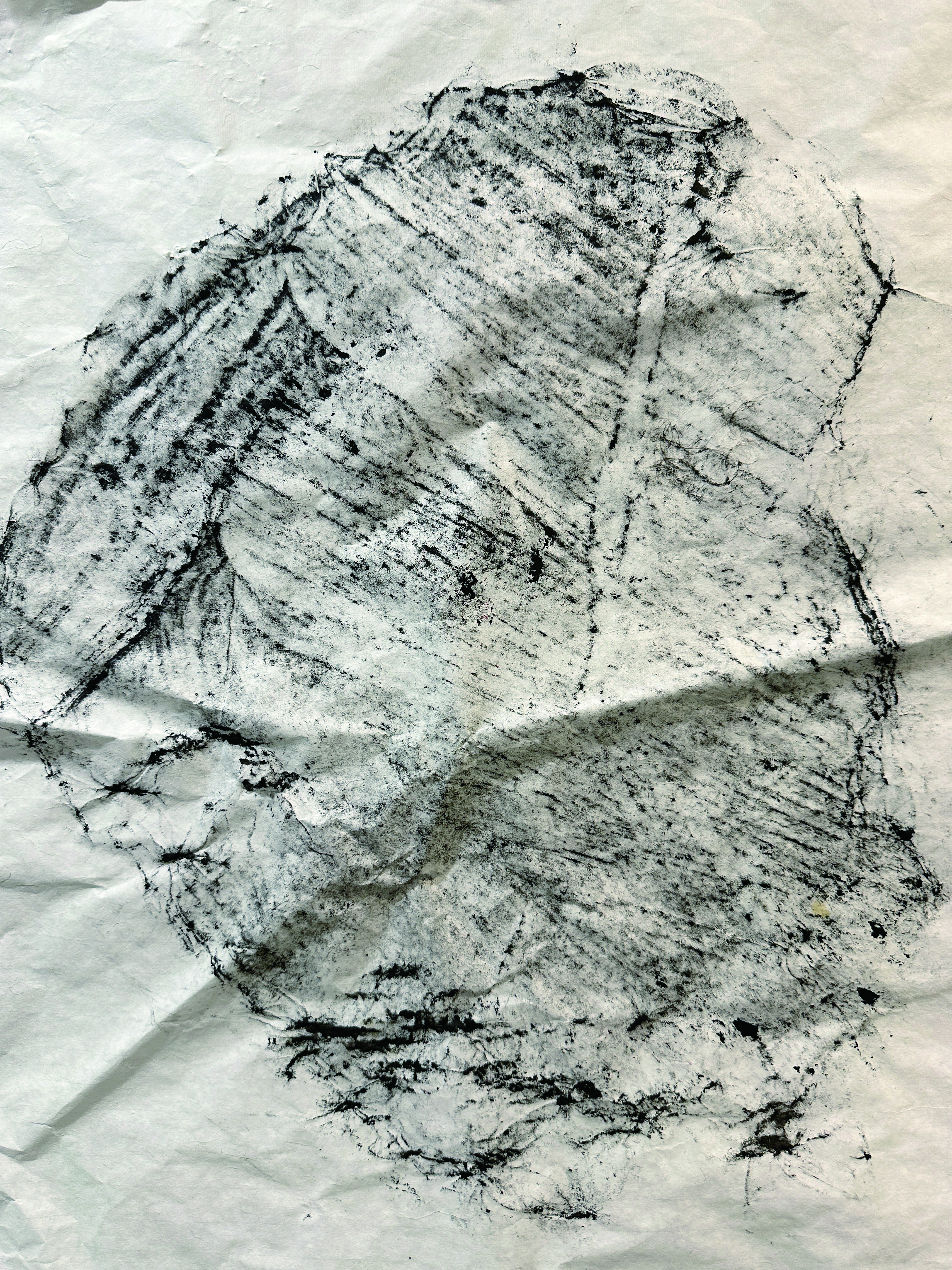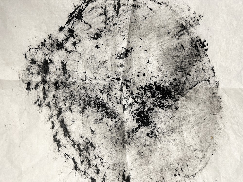 By documenting the texture and rings of the trees, the environmental information held within each tee ring was encoded within the print. Each ring, like a data track, carries the story of years past. The tree ring rubbings are also disturbed by the harsh texture of the electric saw cuts, that are traditionally used to cut trees down. This demonstrates the loss of environmental knowledge and history through the continued removal of trees from this ancient forest. The prints form a more-than-human archive of collective memory: between root, lichen, fungi, chainsaw, pollutants, bacteria and forest. In this way, Silent Trees records and responds to the silent, yet critical, dialogue between humanity and nature, highlighting the urgency of environmental stewardship. The prints, with their detailed portrayal of tree rings, are designed to draw the viewer into a deeper contemplation of time, growth, and loss.