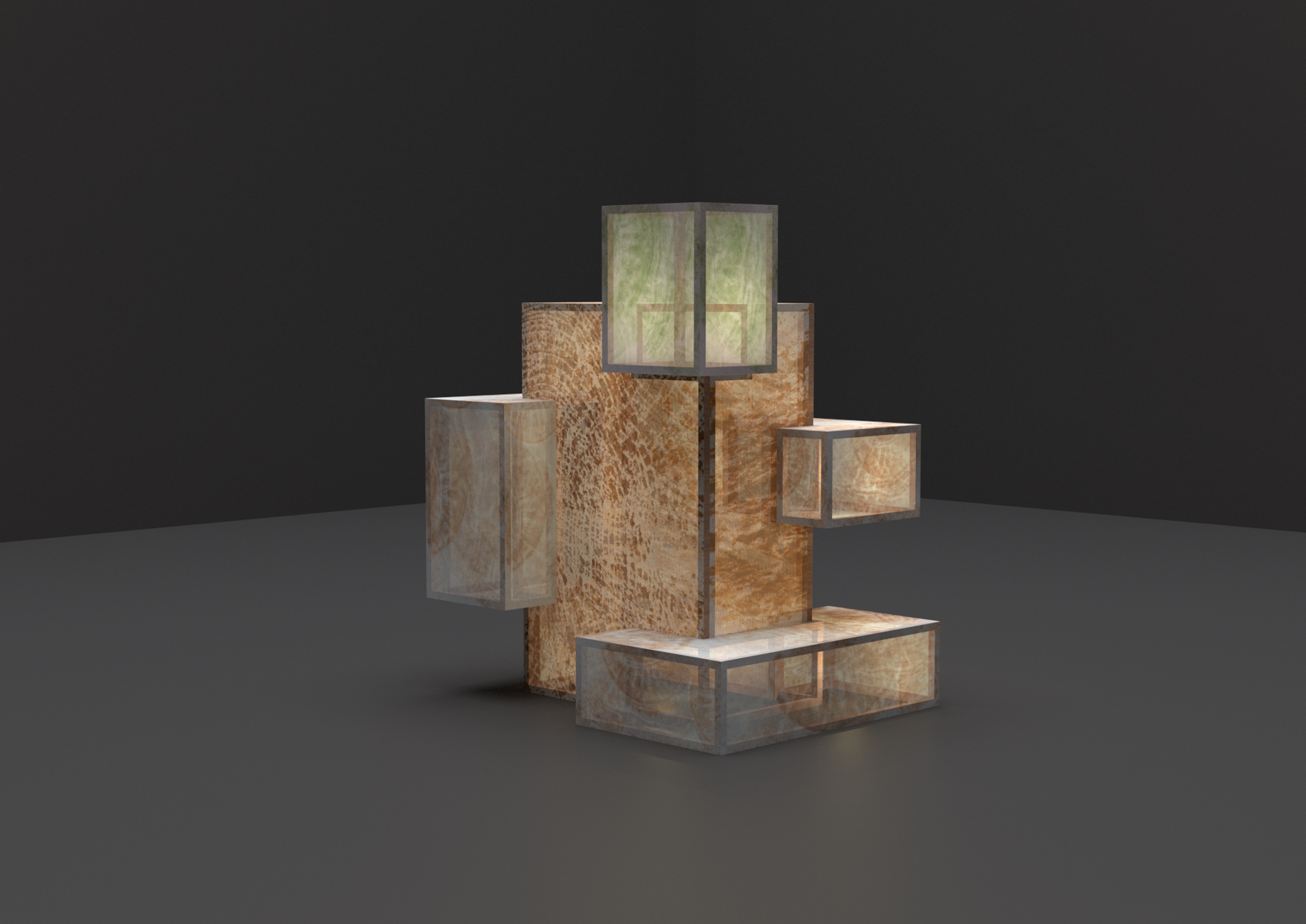 This project focus on this miniature ecosystem around the tree stumps, using tree bark and other plants to convey the relationship between ‘life’ and ‘death’. Through collaged images made from pigments of tree bark, leaves, and mushrooms, I create a simulated formation of the biosphere. These images are then reconstructed into a three dimensional ‘lantern’ to symbolize new life attaching itself to the foundation of death.
