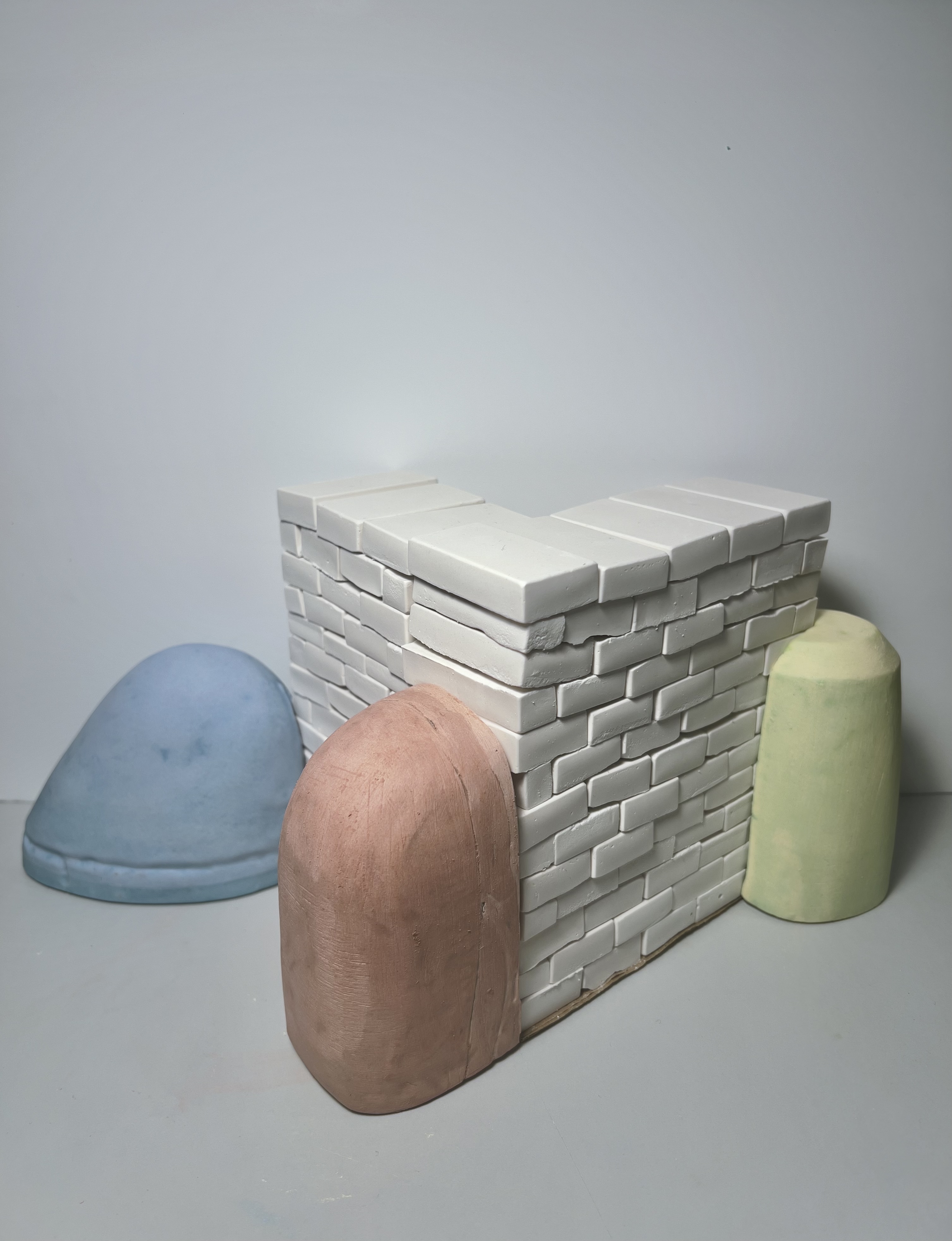 The guard stone was first built in the 18th and 19th centuries in Europe during the period of horse-drawn carriages and is the protector of the building as well as a witness to the trade and economic prosperity of the time. But as we now enter the 21st century, what role have they evolved into? This project takes three typical guard stones and through the process of casting, highlights them with bright colours in attempt to explore the different historical meanings that the guard stone has assumed at different times in history, altering and rebuilding a new perspective.