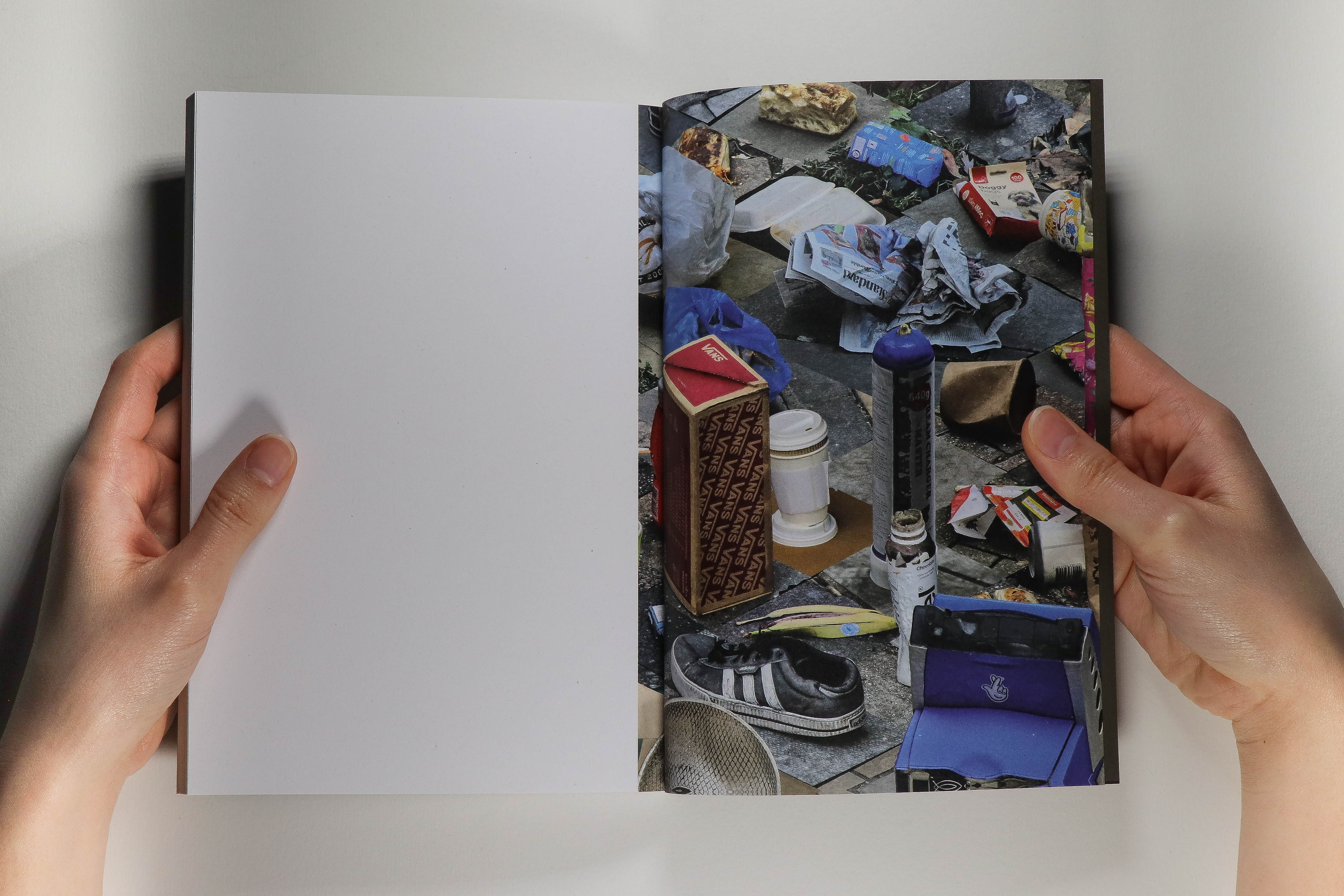 We often walk past disturbing rubbish that is left by someone - lunch packing, beer bottles or cigarette butt in inappropriate places. This kind of behaviour should not be happening, it is important for environmental sustainability and morality, and the waste should be treated in landfills or recycling processes. In comparison, in Tokyo, for instance, the street is always clean and ordered, no one is allowed to smoke in public space. Bins are very rare in the street, people usually bring their own rubbish back home or bin it in convenience stores. Focusing on Shoreditch, an area close to where i live, in this project i had the idea of a travel book documenting the rubbish and the found location. A tourguide that tourists can use to return to the location or where an item of rubbish was sited. I used photogrammetry to record and extract the item of rubish from its location, along with a section of the street around it. Each rubbish is showcased through a non-perspectival, isometric viewpoint with back and front on each page.