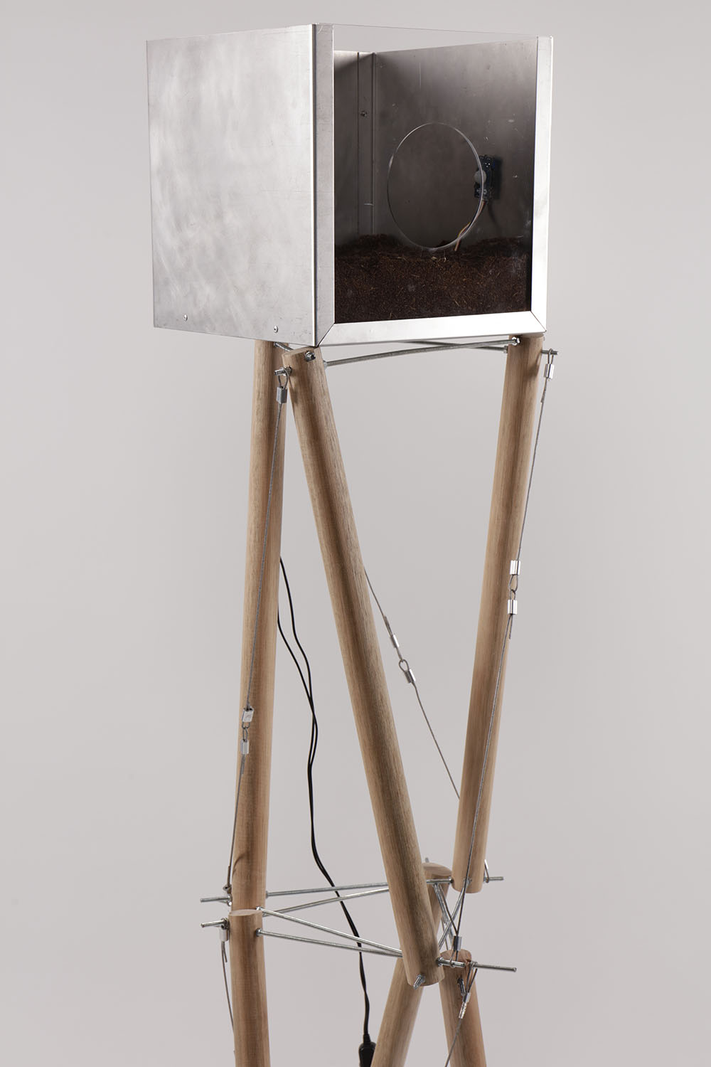 Enclosed soil is mounted on a beacon, inspired by architectural structures for protests (Newman, 2024), amplifying the soil's voice, giving a more-than-human entity a platform to demand care and respect. Accompanied by a site-specific performance at Eden Dock (Canary Wharf Group, 2024), where the soil is enclosed on-site, the work critiques the commodification of land and connects to broader histories of displacement and control.