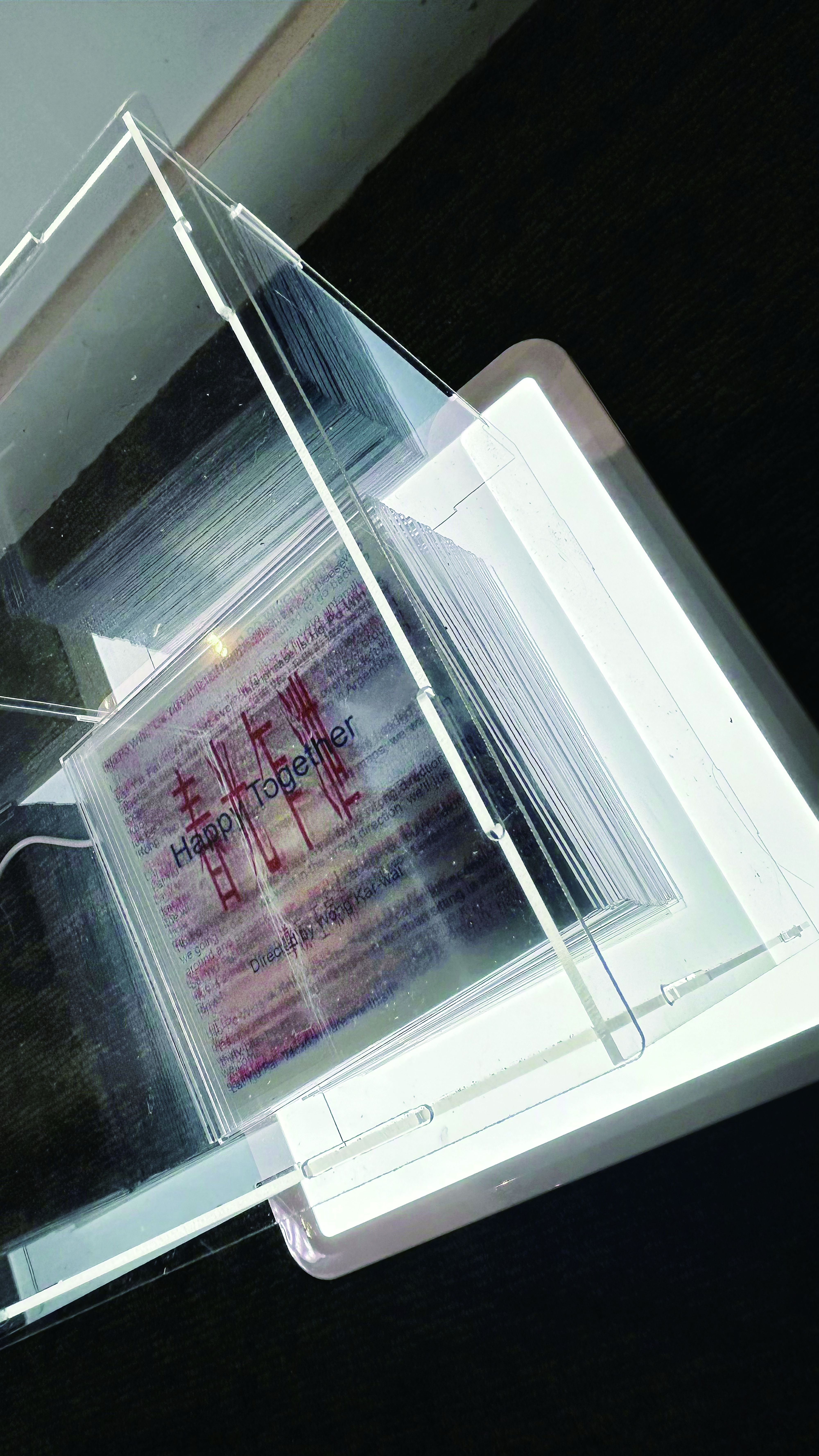 This project examines the Hong Kong film Happy Together, directed by Wong Kar-wai, as a research subject, using the film as a historical archive. By translating the dynamic visuals of the film into textual language, the project explores the interplay between traditional Chinese culture and British colonial influence within Hong Kong's cultural framework. It aims to capture the sense of loss and confusion surrounding self-identity experienced by people during the historical period from the 1970s to the 1990s, represented through the overlap of two cultural languages.