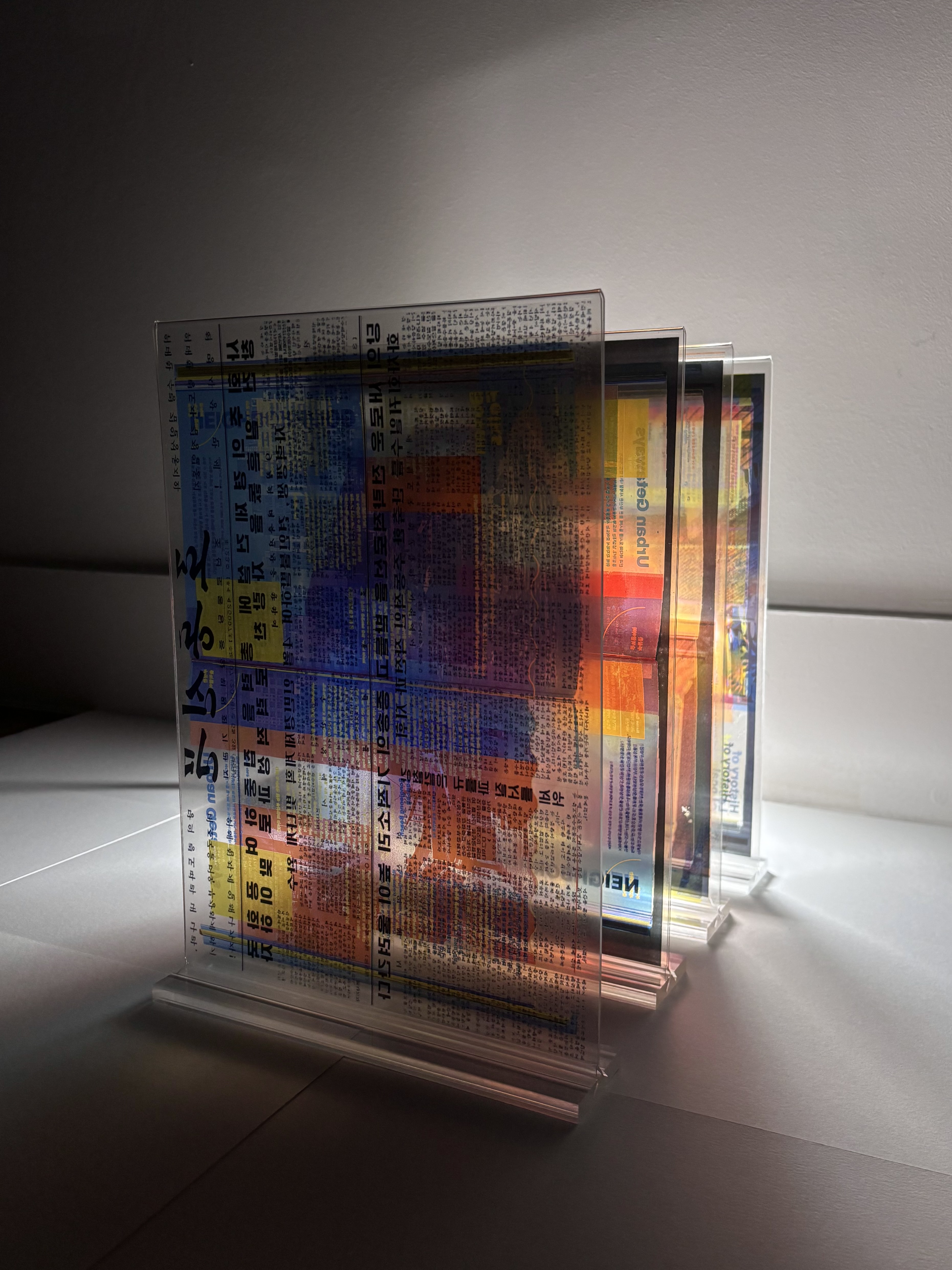 This project is a visual exploration that merges South Korean magazines with North Korean newspapers to highlight the stark contrast between the media environments of the two countries. By printing images from South Korean magazines over the text of North Korean newspapers, the project sheds light on the politically and socially distinct aspects of media in each nation. It explores the difference between the commercially driven, diverse content of South Korean magazines and the politically controlled, limited content found in North Korean newspapers. The project delves into the visual disparities between the two forms of media. By comparing South Korean magazines with North Korean newspapers, it examines how the content in each reflects the unique social and political landscapes of their respective countries.