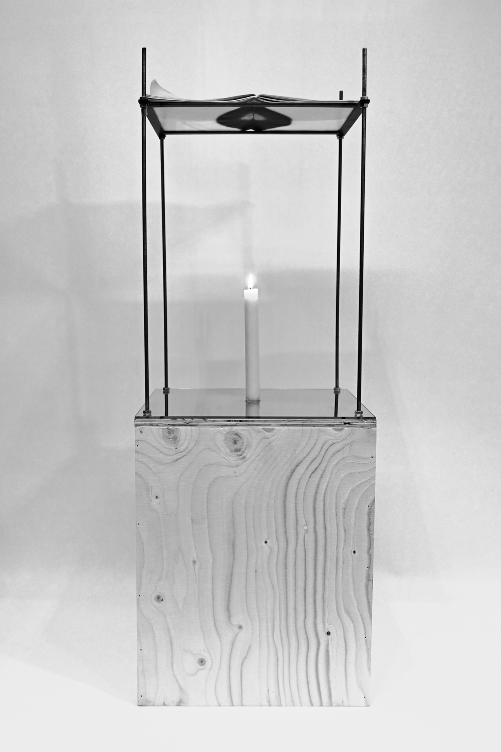 The project suspends the form of a book through a heating device. Speed = Distance/Time slows down the process of thermal inscription through the heating of a candle. Before the heating begins the book is almost blank. It’s only when time passes and the temperature gradually rises that content is transferred to the pages.