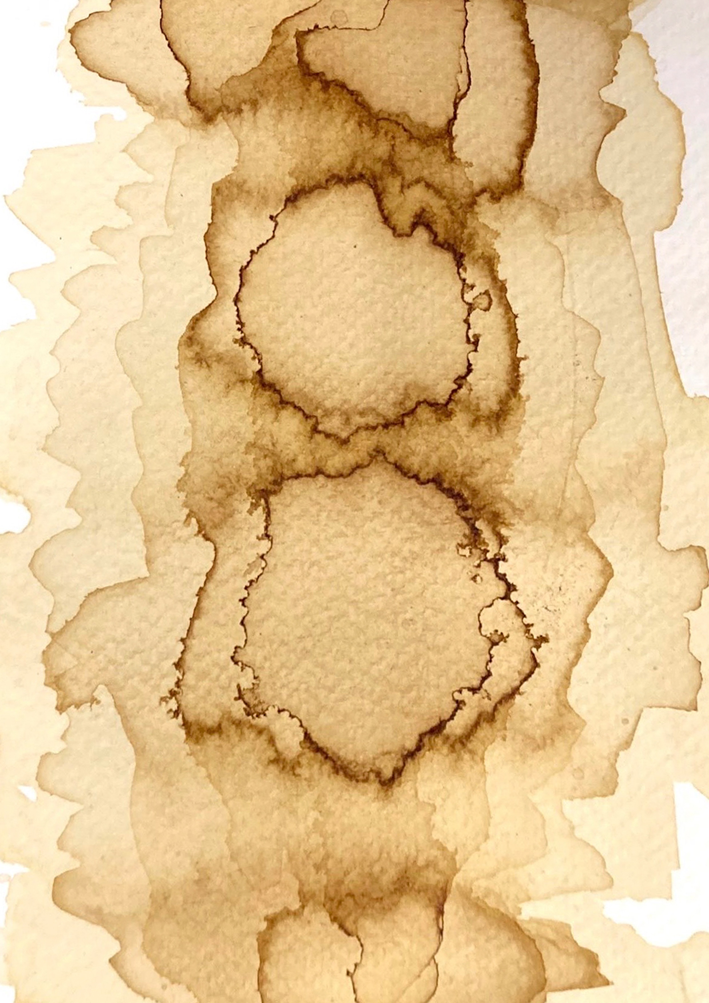 A project statement/thesis statement This project examines the tea cake through its interaction with time, using tea stains as a medium to critique modern consumer culture. Over six intervals, tea stains were documented on absorbent paper, capturing the transformation of pigments and the passage of time. These patterns were presented in a suspended installation of layered transparent sheets, allowing viewers to perceive the gradual evolution of the stains. The overlapping layers symbolize the accumulation of time and highlight the erosion of rituals in contemporary life. By contrasting the deliberate, slow ritual of tea preparation with the hurried pace of modern living, the project invites reflection on the value of intentional, sensory-rich traditions.