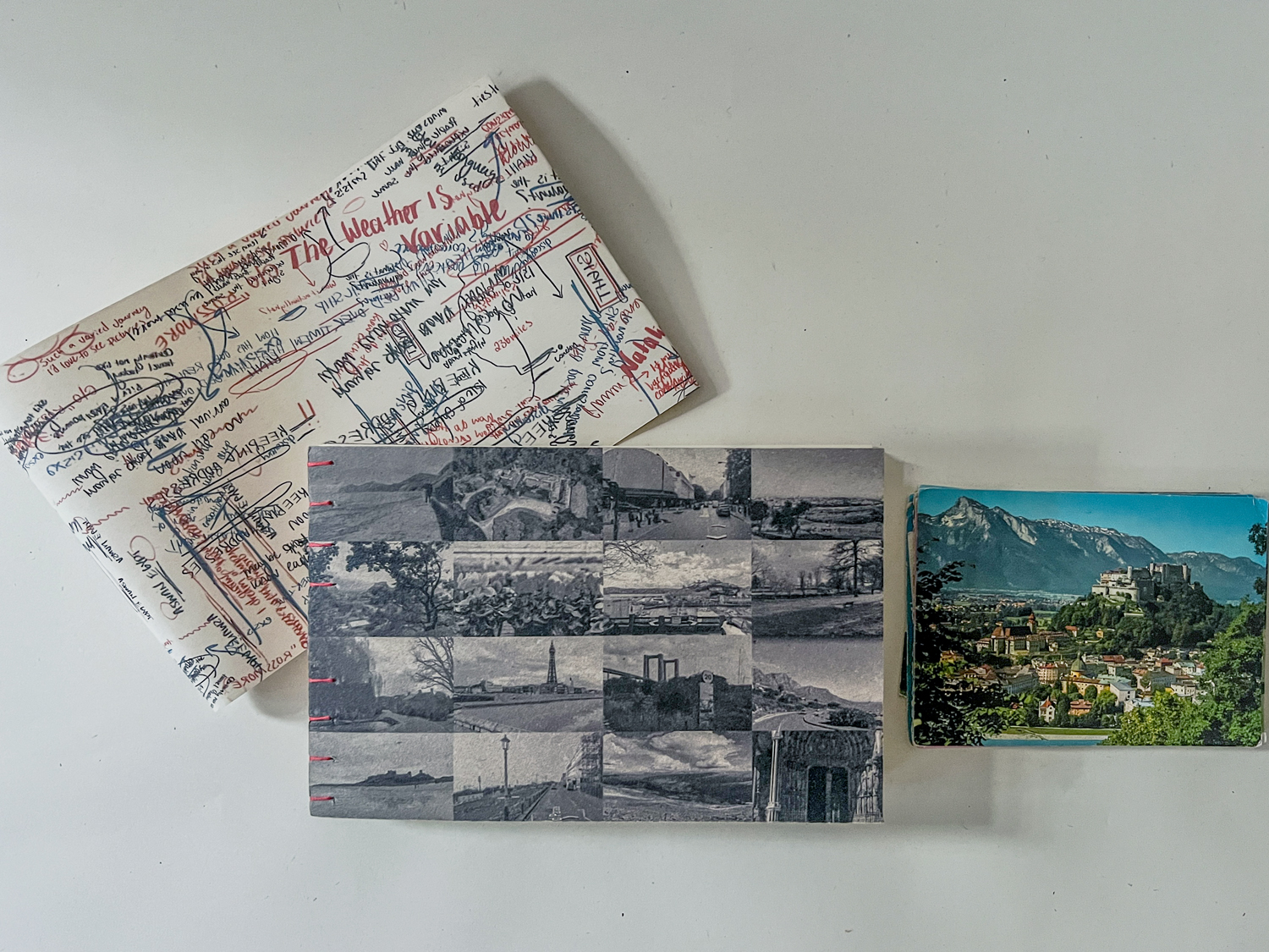 Each postcardās content has been carefully transcribed, reformatted, and transformed into a streamlined book, detaching its message from its original medium. The book, entitled The Weather is Variable, reflects a deliberate separation of form and content, encouraging the reader to consider the postcards not merely as communicative tools but as objects of layered cultural and historical significance.