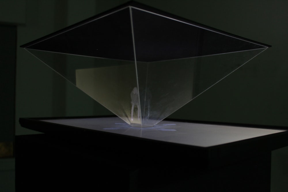 This project exposes these Wi-Fi services as surveillance technologies by tracking a mundane, day-to-day action - showing my own seated body while scrolling on a mobile phone - through the eyes of the building's open Wi-Fi. In this case, a hacked version of a Microsoft Kinect uses specific Infrared and near-Wi-Fi ranges of light to detect when a body has entered a space. This data is then displayed in a holographic 3D plinth that projects the body tracking output as a ghostly figure, using the Victorian technology Pepperās Ghost - originally used to create theatrical appearances of ghosts. In this project, this technology is now being used to create the theatrical appearance of my own body as a data ghost.